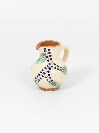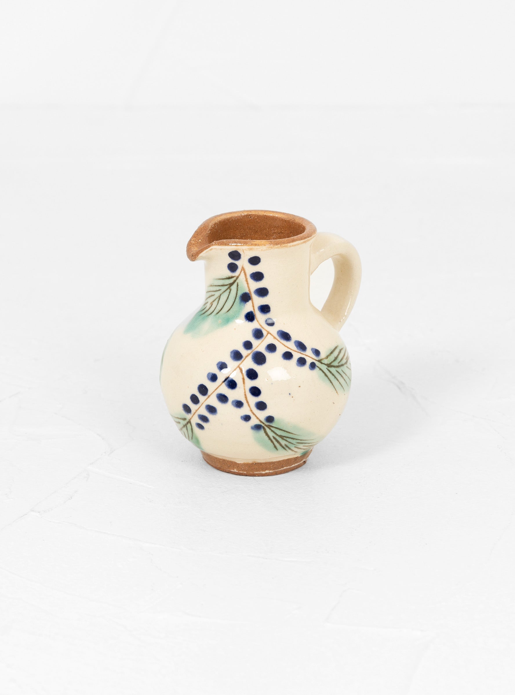 The Dotty Vine Jug from Anut Cairo is hand-crafted and hand-painted by Fayoumy potters in Egypt. The jug features a green and blue nature-inspired motif.