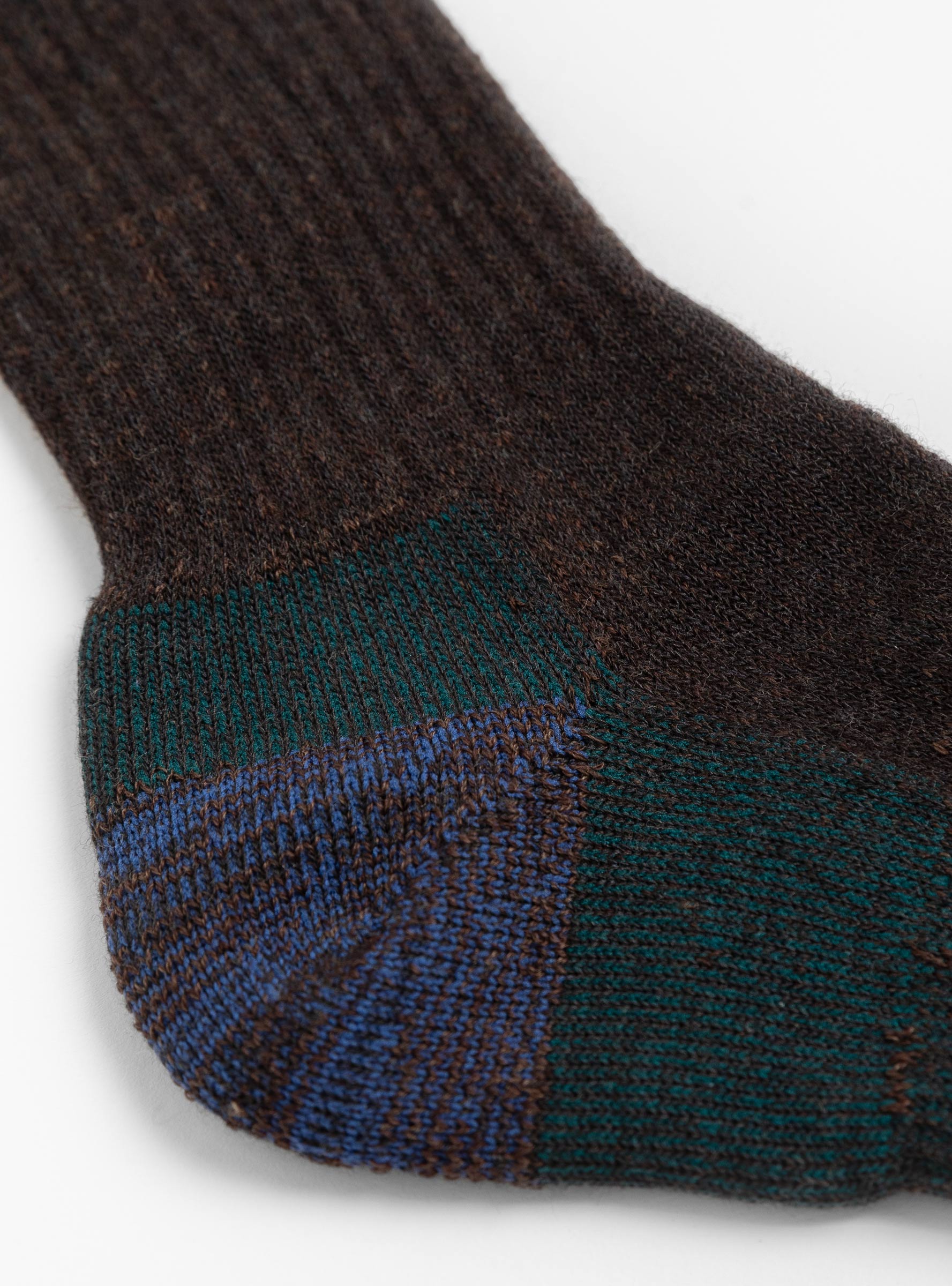 The Double Face Socks Dark Brown from ROTOTO are crafted in Japan using a double-layer construction for added comfort and insulation. Designed in brown with green and blue heel accents, they offer warmth and a secure fit for everyday wear.