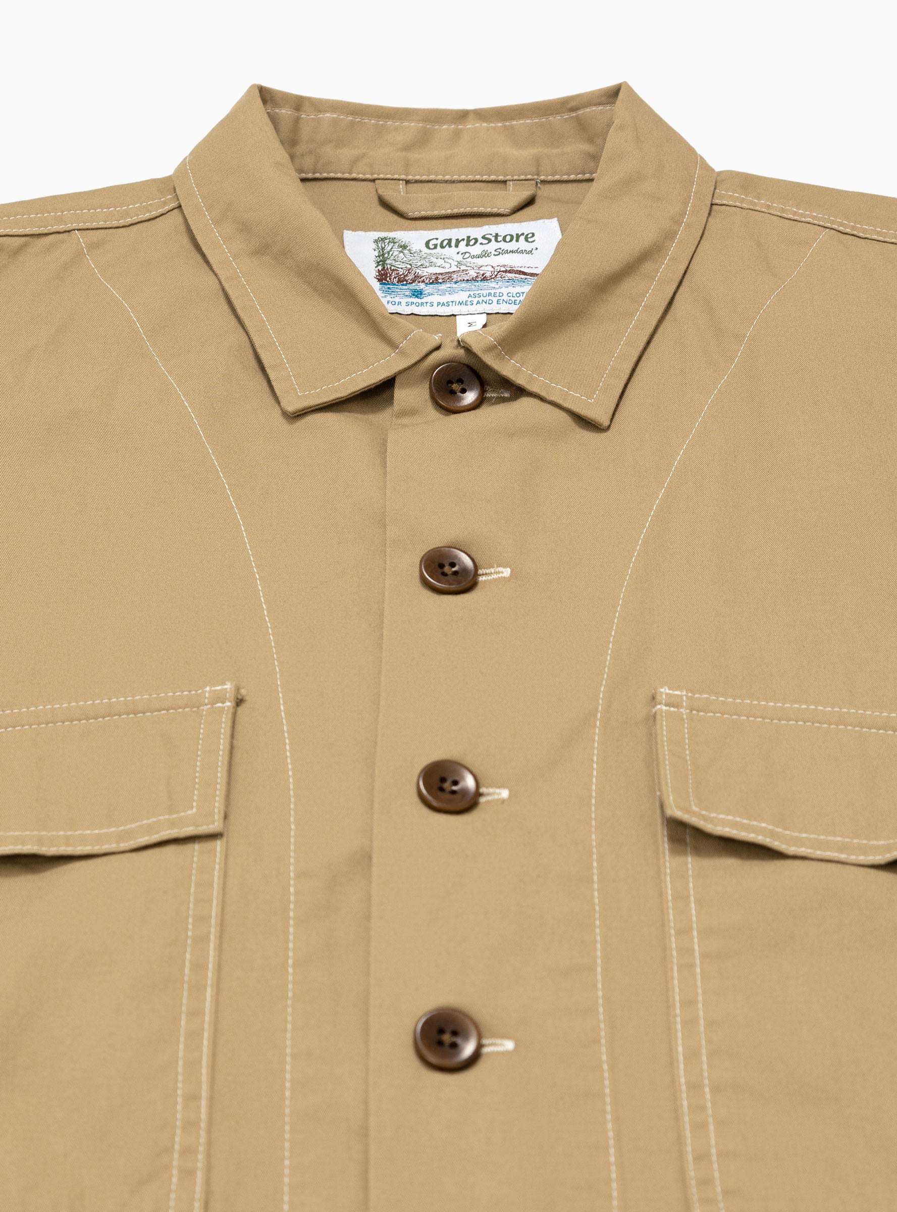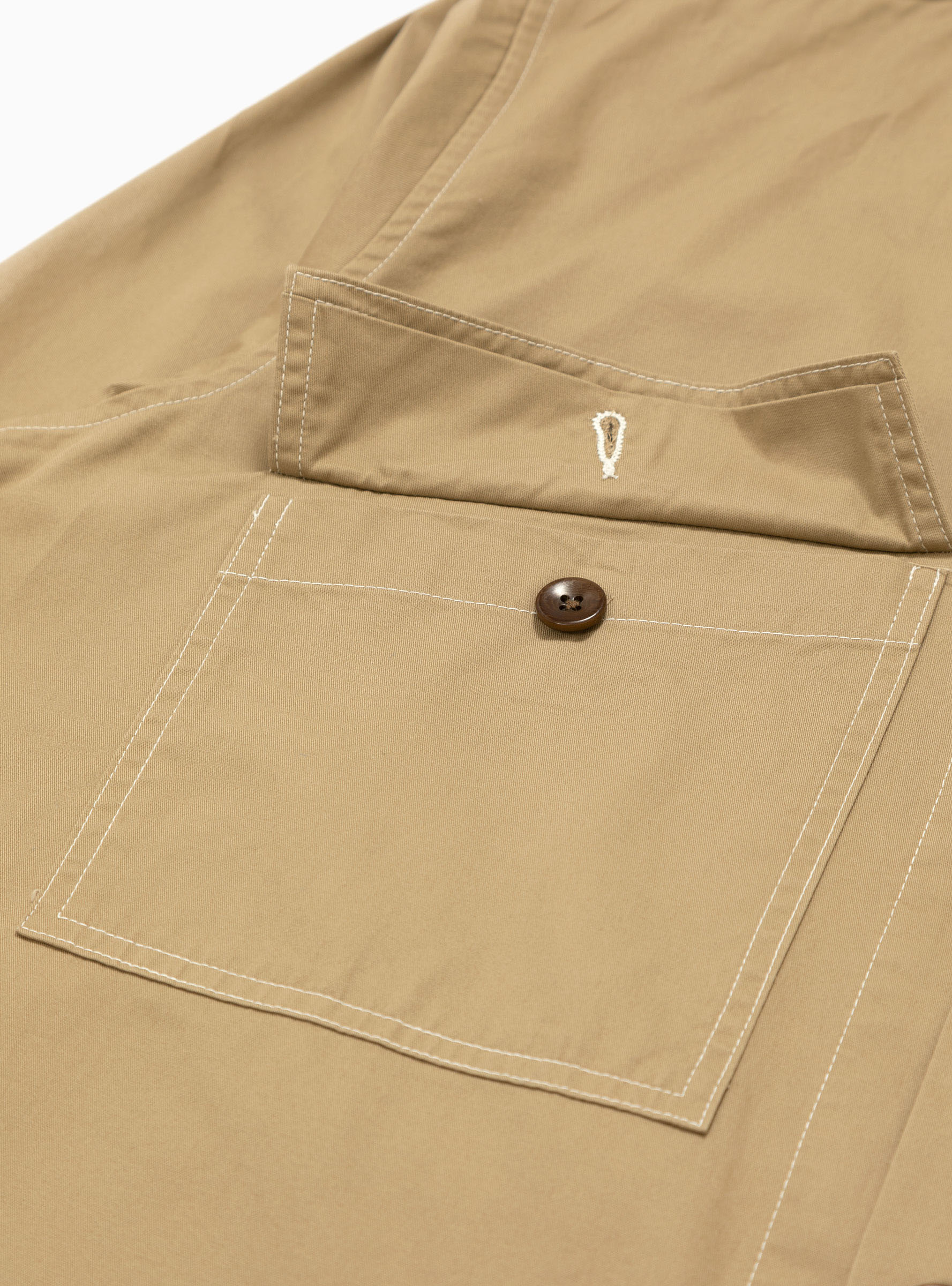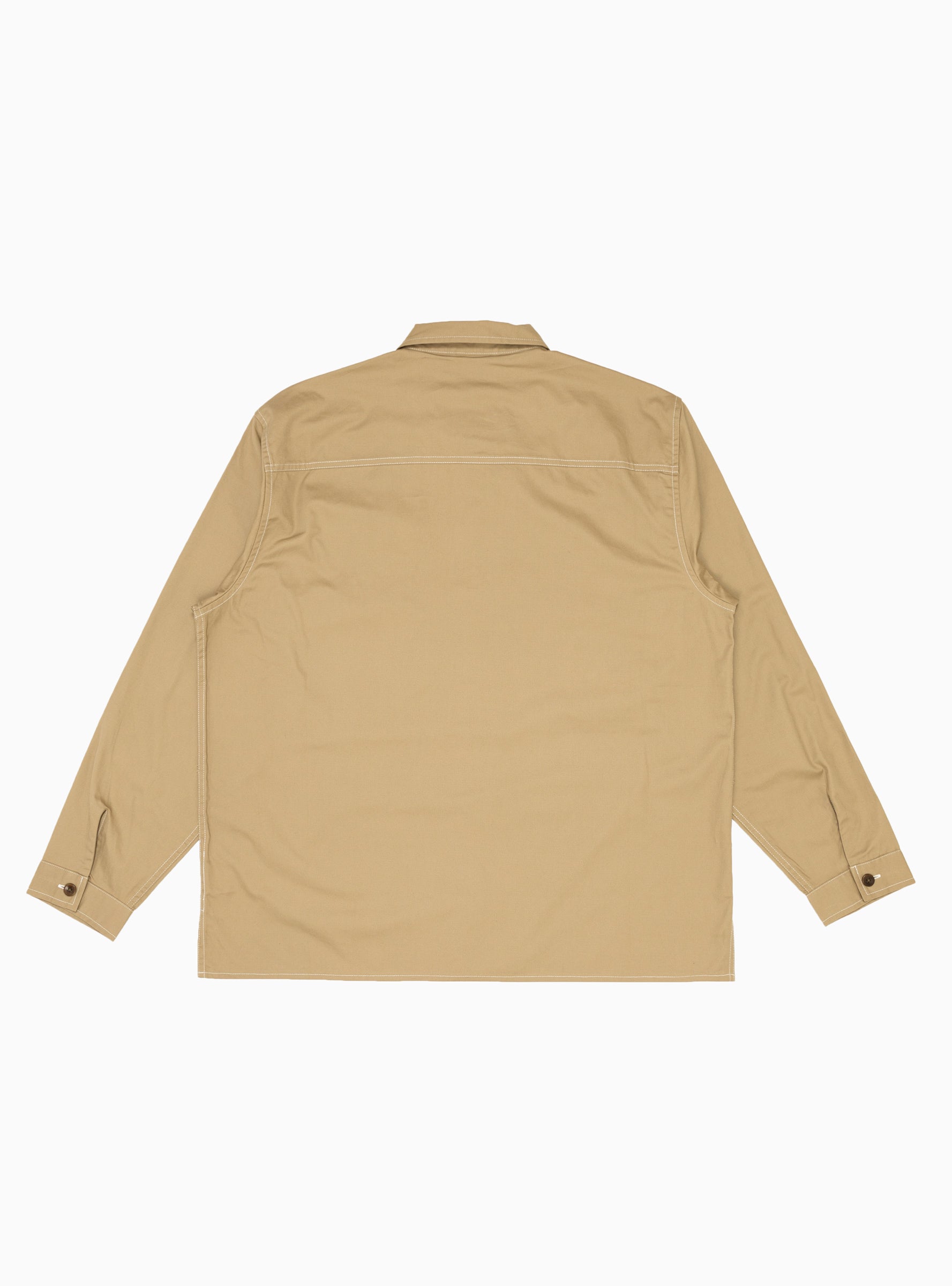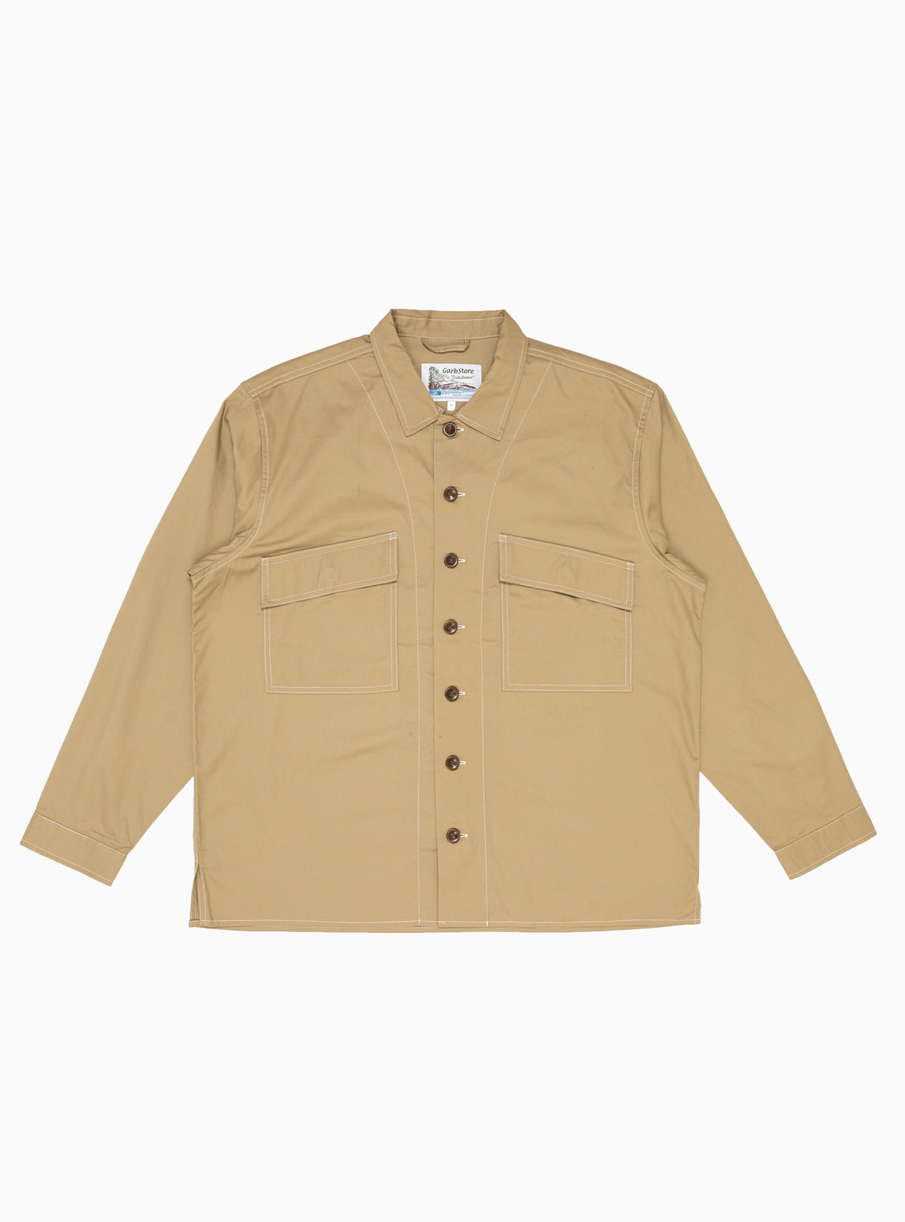 This camel DP Manager shirt from Garbstore’s SS23 collection is a versatile transitional piece that can also be layered as a jacket. Made from Japanese cotton twill, it’s cut to a relaxed silhouette with large flap chest pockets and a curved hem. Corozo nut buttons fasten the front and cuffs.