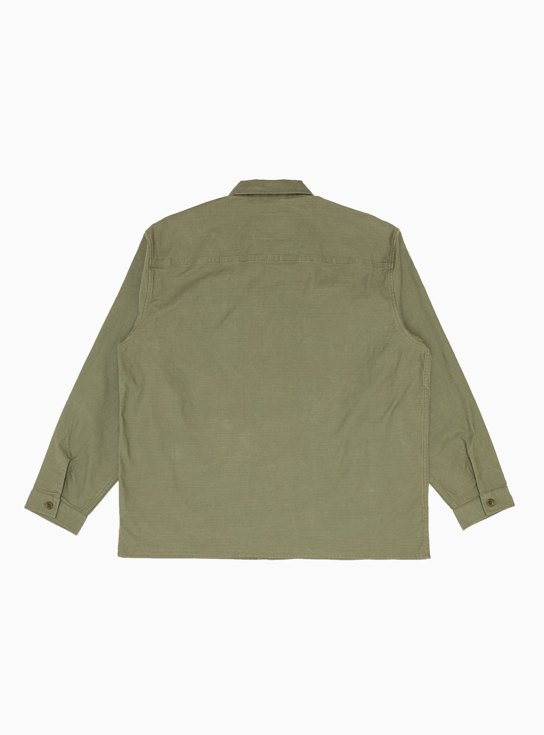 This sage-green DP Manager shirt from Garbstore’s SS23 collection is a versatile transitional piece that can also be layered as a jacket. Made from Japanese cotton slub, it’s cut to a relaxed silhouette with large flap chest pockets and a curved hem. Corozo nut buttons fasten the front and cuffs.