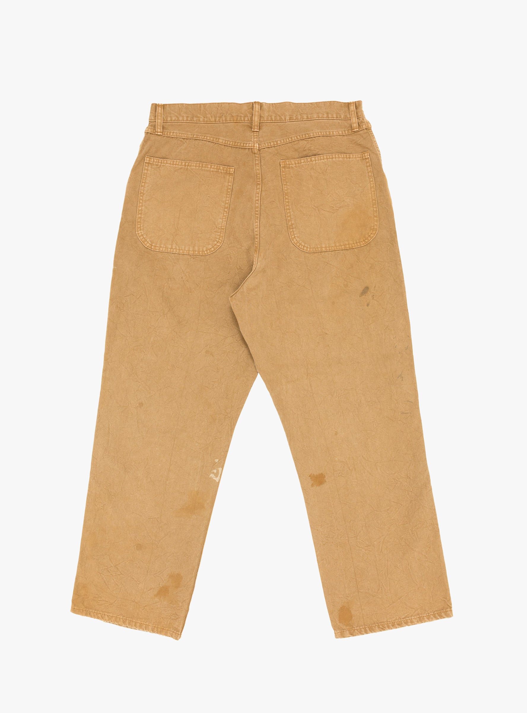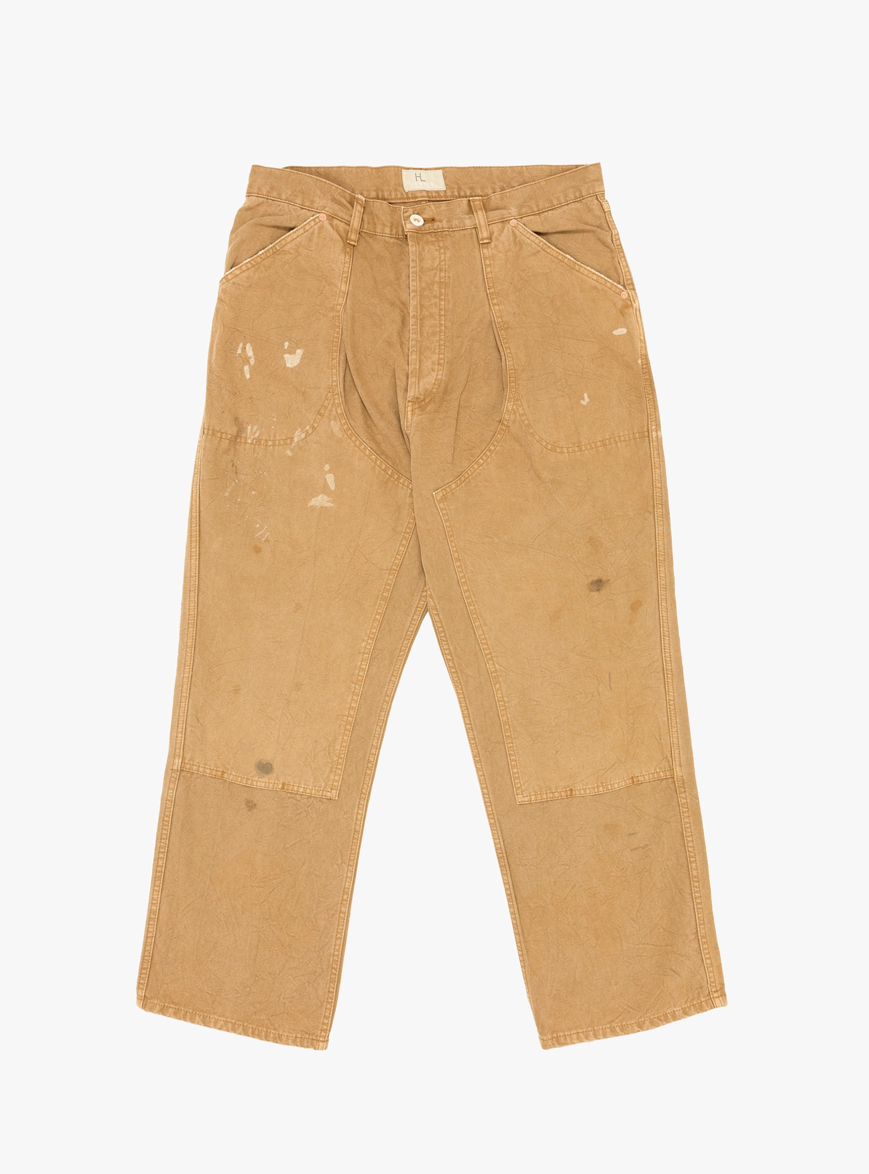 The Duck Painter Pants in Brown from Herill are inspired by late 19th- and 20th-century military and workwear. Made from heavily washed duck canvas cotton with triple stitching and classic detailing, they are given a vintage finish and treated with paint and oil for a worn-in look. The loose fit provides comfort and durability while retaining the character of traditional workwear.