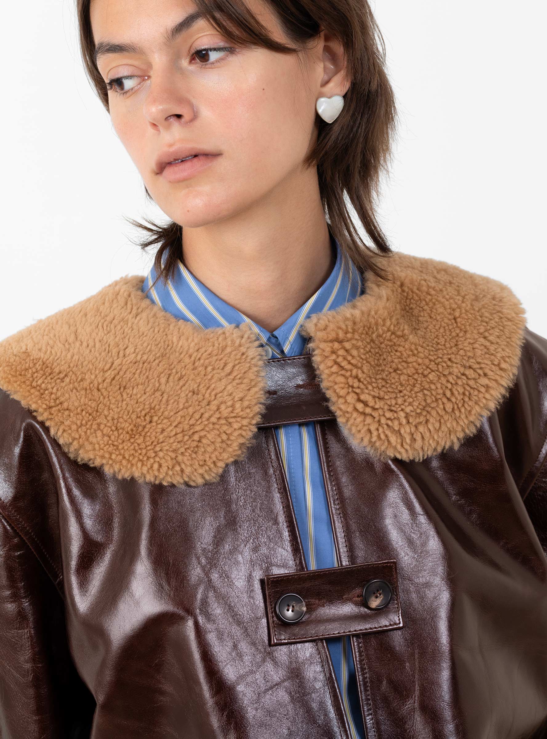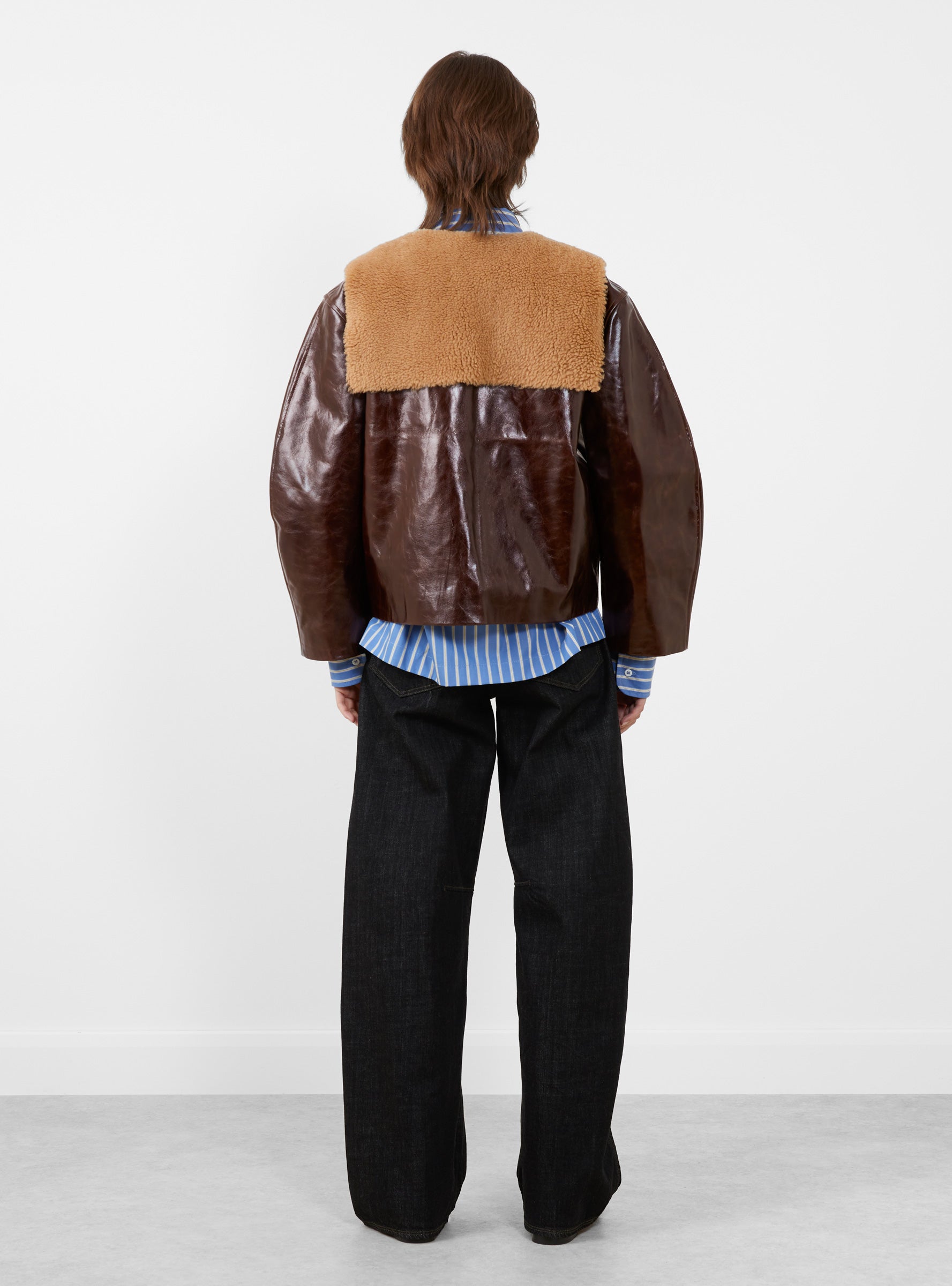 The Ellie Leather Jacket from Cawley arrives in Canada Brown. A new-season style, this slightly cropped jacket is crafted in London from 100% sheepskin leather. Designed with a sailor-style collar featuring silver eyelets and hand-tied leather tassels, it fastens with detachable horn button tabs and includes neat front jet pockets.