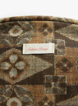 The Emilie Toiletry Bag from Autumn Sonata comes in a refined walnut, rust, and slate palette, inspired by early 20th-century Tsumugi textiles. Florals and greenery are abstracted into a Pointillist pattern, creating a calm, graphic composition. Crafted in Portugal from recycled cotton with a coated cotton interior, it balances visual interest with everyday utility.