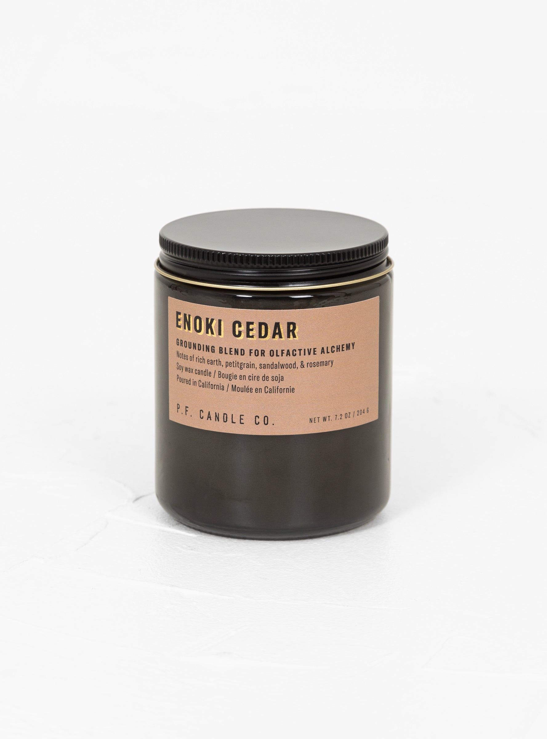A grounding blend to activate deep relaxation, this Enoki Cedar candle from P.F. Candle Co. is made from domestically grown soy wax and gives off notes of rich earth, petitgrain, sandalwood, and rosemary.