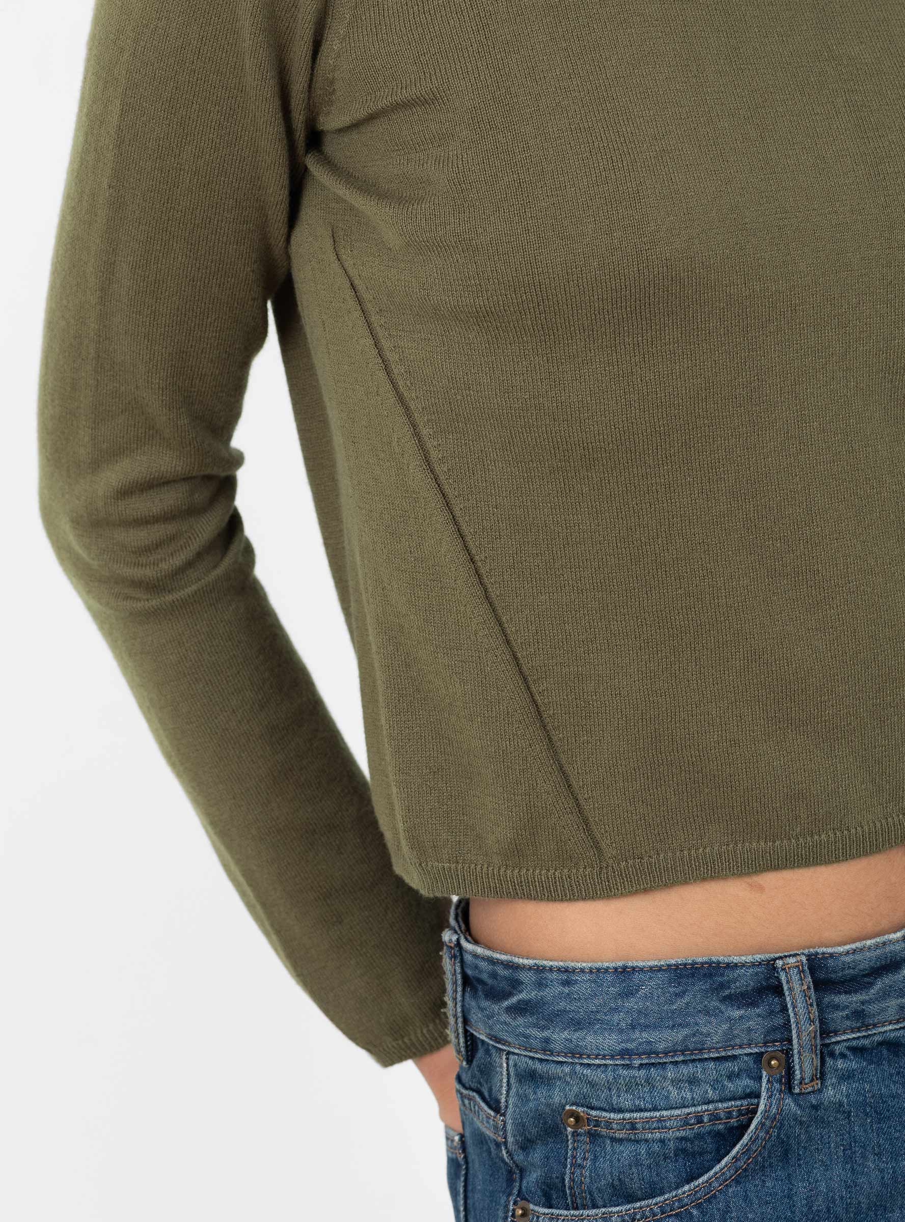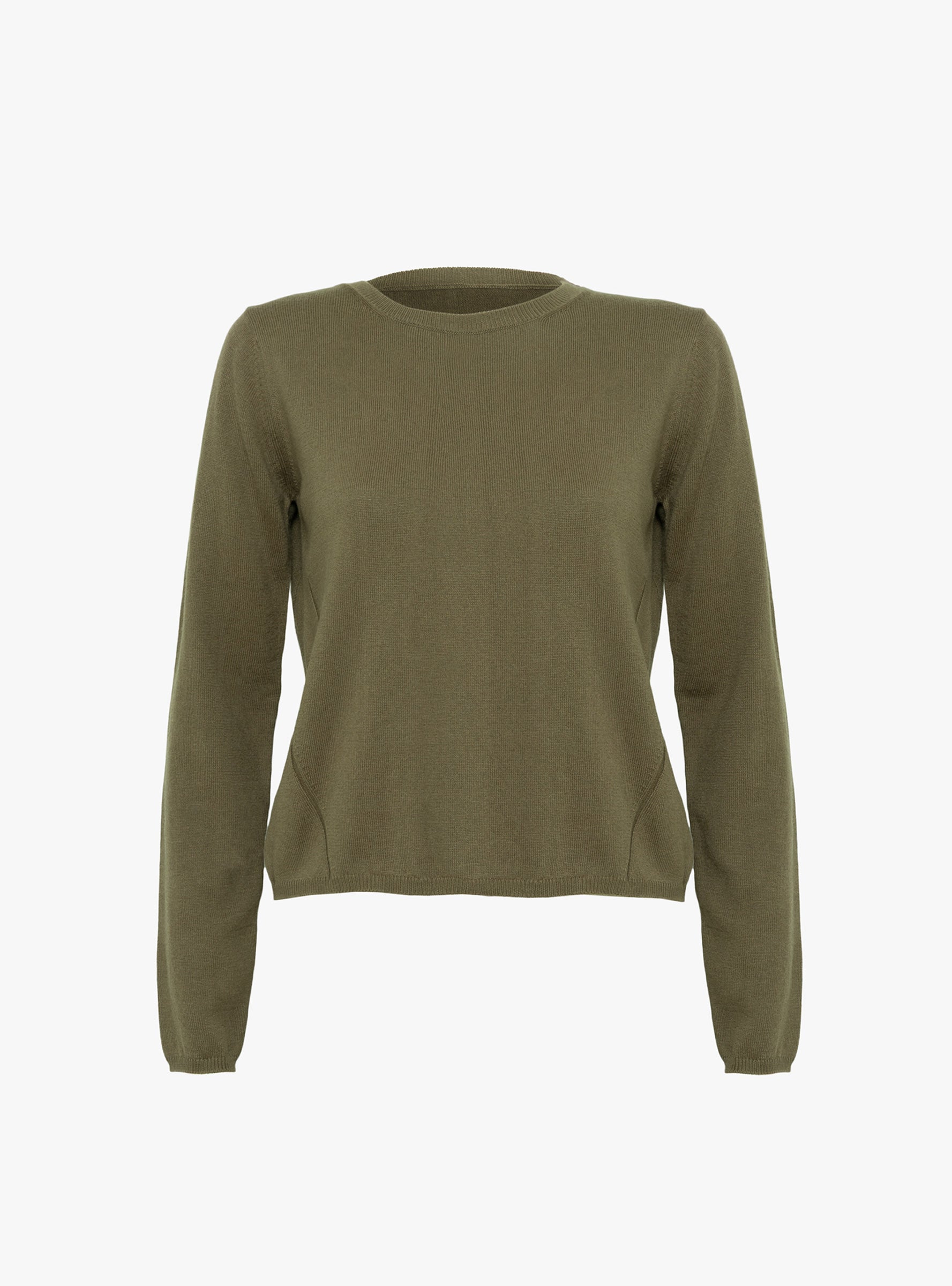 The Fitted Crop Crew Jumper from Himalayan Cashmere comes in Cypress and is made from a cotton and cashmere blend. Cut to a classic fit with a cropped length, it features a clean crew neckline and softly curved side seams, giving the knit a subtle shape through the body. Ribbed trims at the neck, cuffs and hem provide structure and a neat finish.