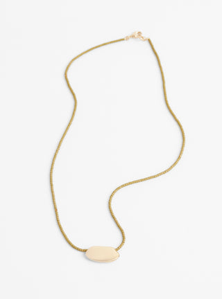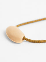 The Flat Oval Gold-Plated Pendant and Miyuki Chain from Helena Rohner feature a gold-plated pendant, made from brass, which is paired with the Miyuki Chain in Olive.