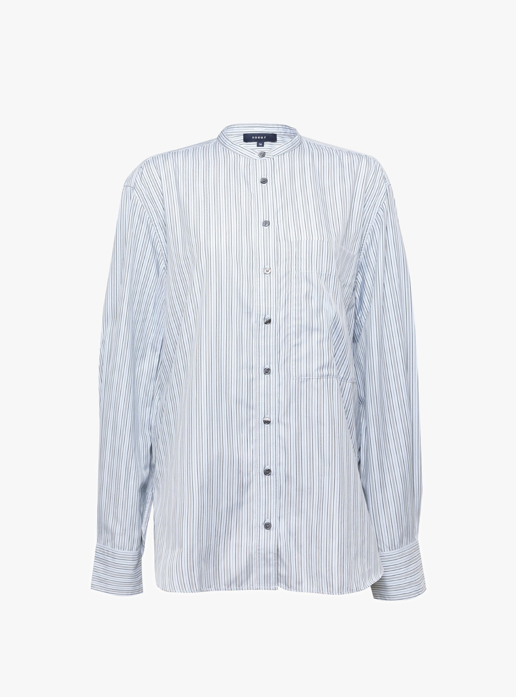 The Formentera Shirt from Soeur arrives in Sky Blue and Black. Cut from striped cotton poplin, this straight-fit shirt features a button-down front and a shirttail hem. A single patch pocket at the chest and buttoned cuffs complete the design.
