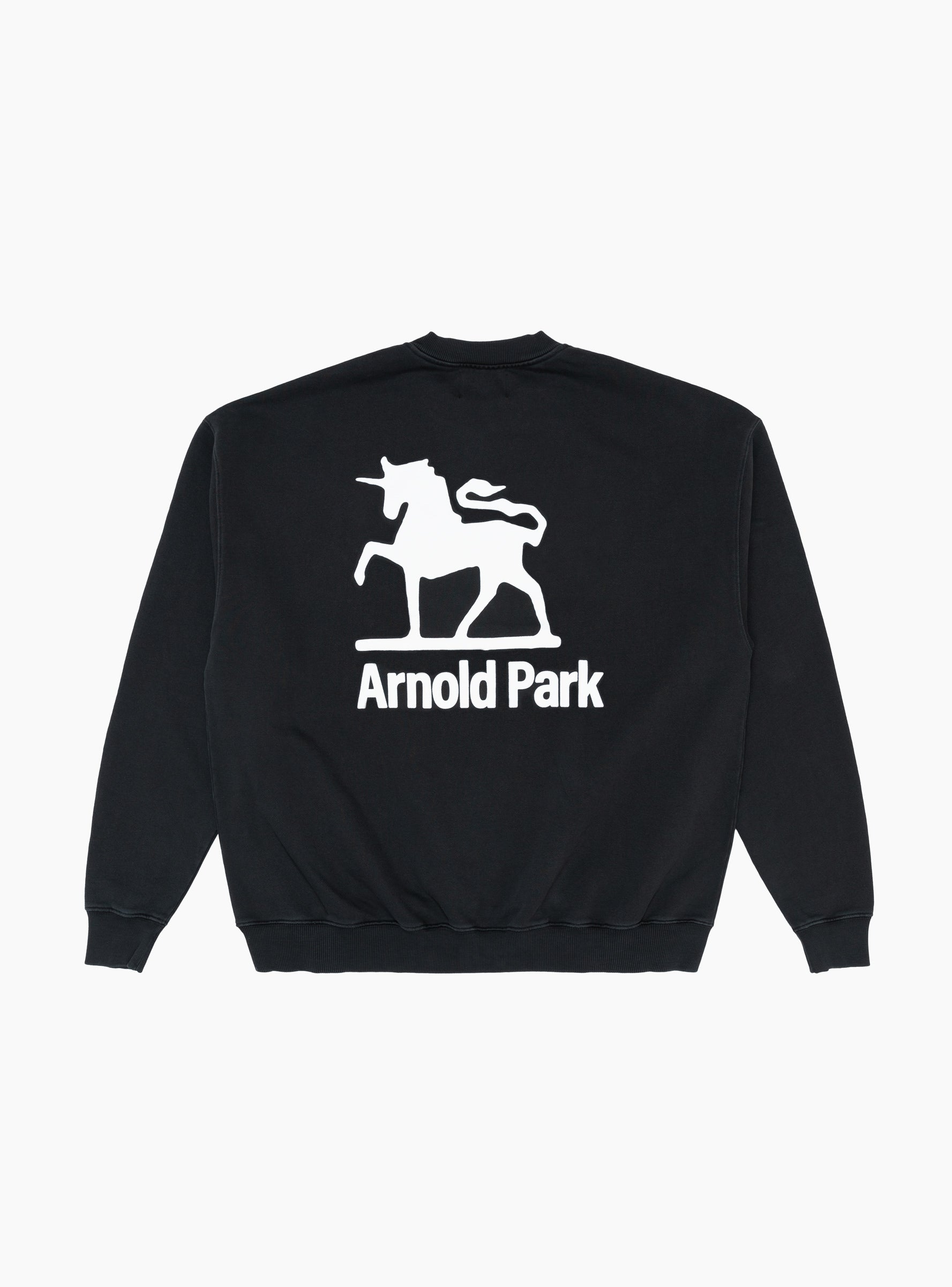 The Foundation Logo Sweatshirt by Arnold Park Studios arrives in a Faded Black. Made in Portugal from heavyweight cotton jersey, it falls to a relaxed fit with dropped shoulders. A selection of graphics that riff off the global financial sector are embroidered across the front and printed at the back.