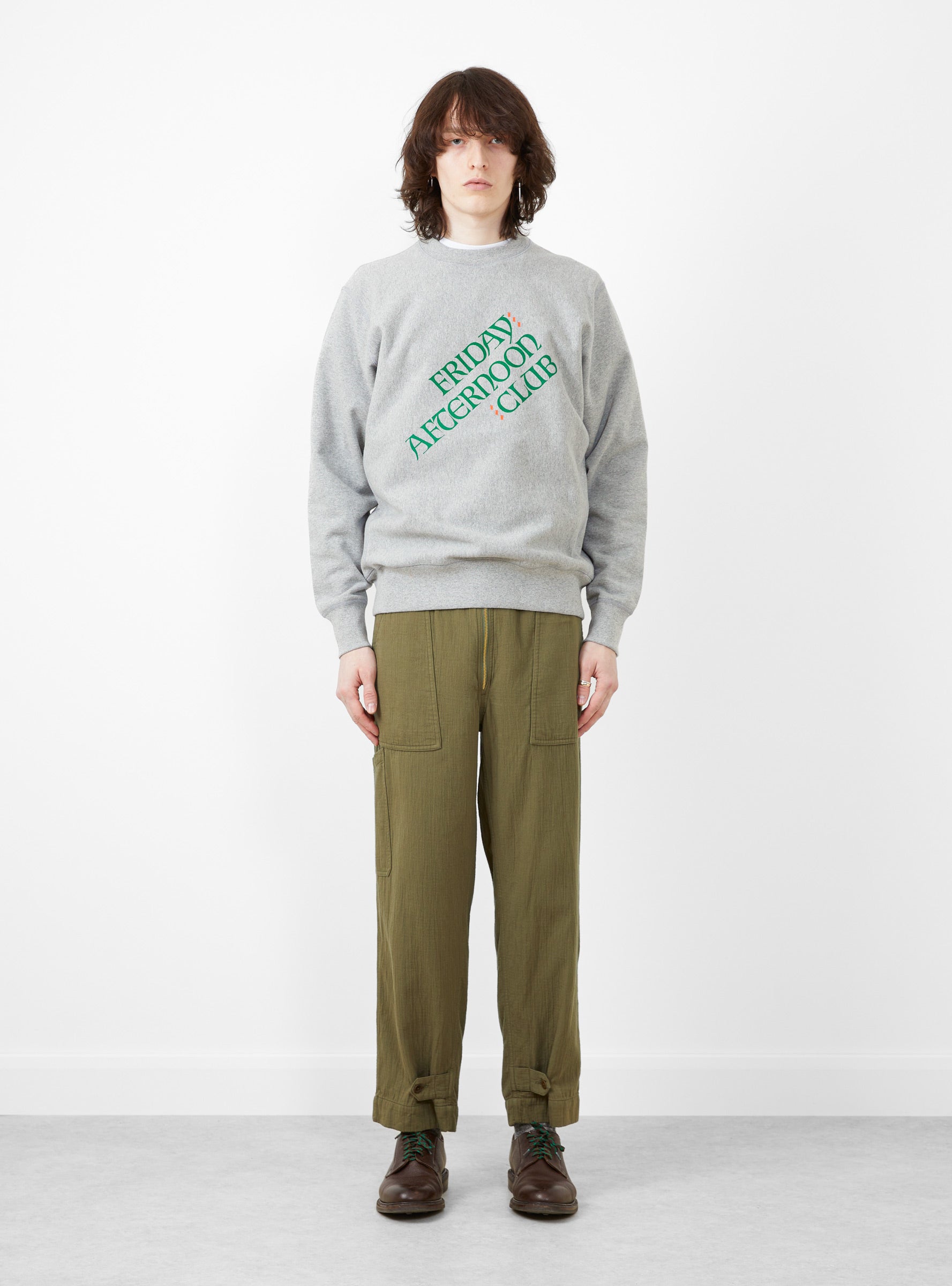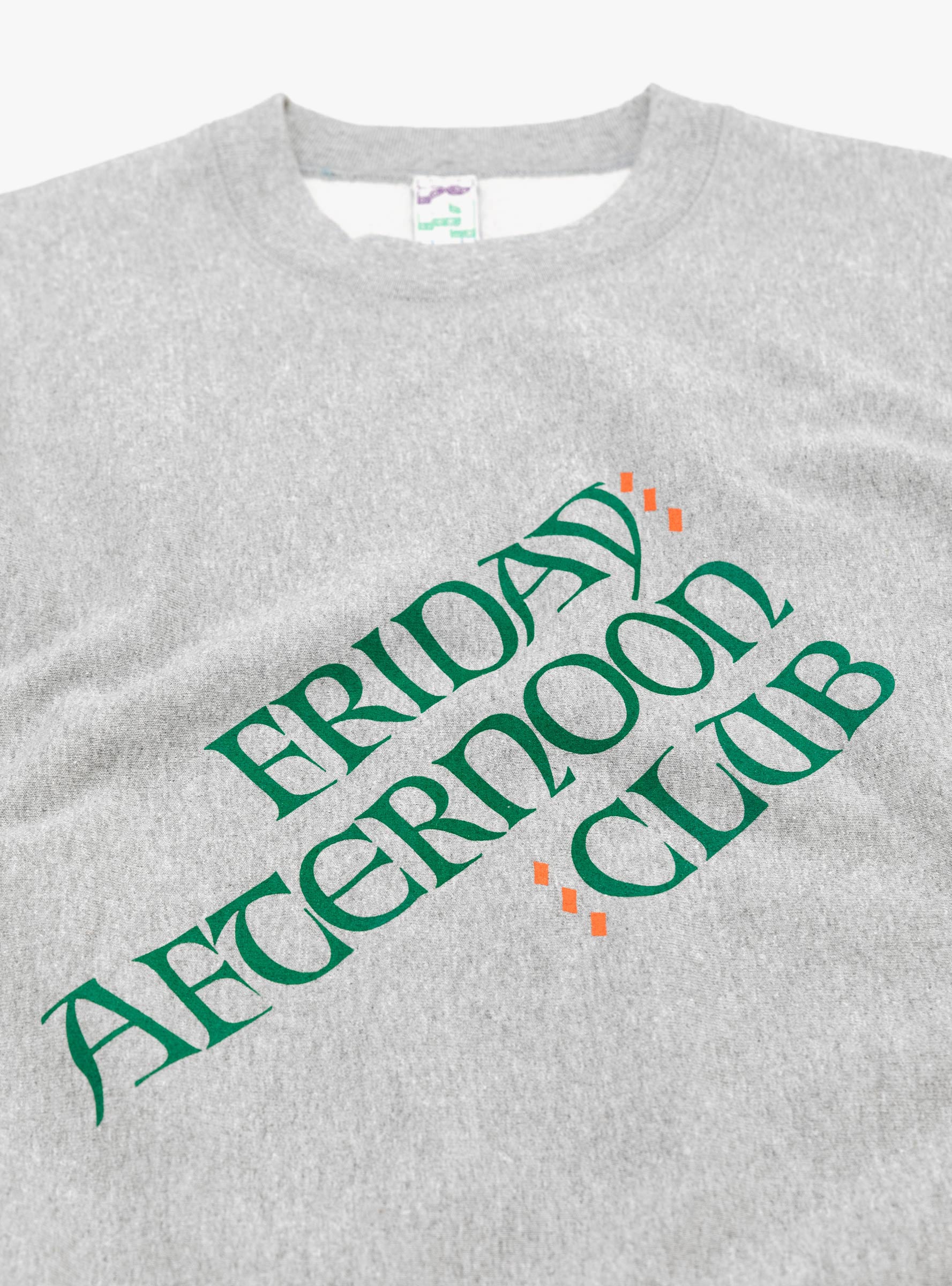 The Friday Sweatshirt from TDR arrives in a heather grey. Made in Canada from a breathable 12.7 oz. loopback cotton sweat-shirting, the mid weight crew neck falls to a regular fit. An in-house designed 'Friday Afternoon Club' graphic sits at the centre of the sweatshirt, whilst a textured TDR logo sits at the back. Ribbed side panels and trims finish the sweatshirt.