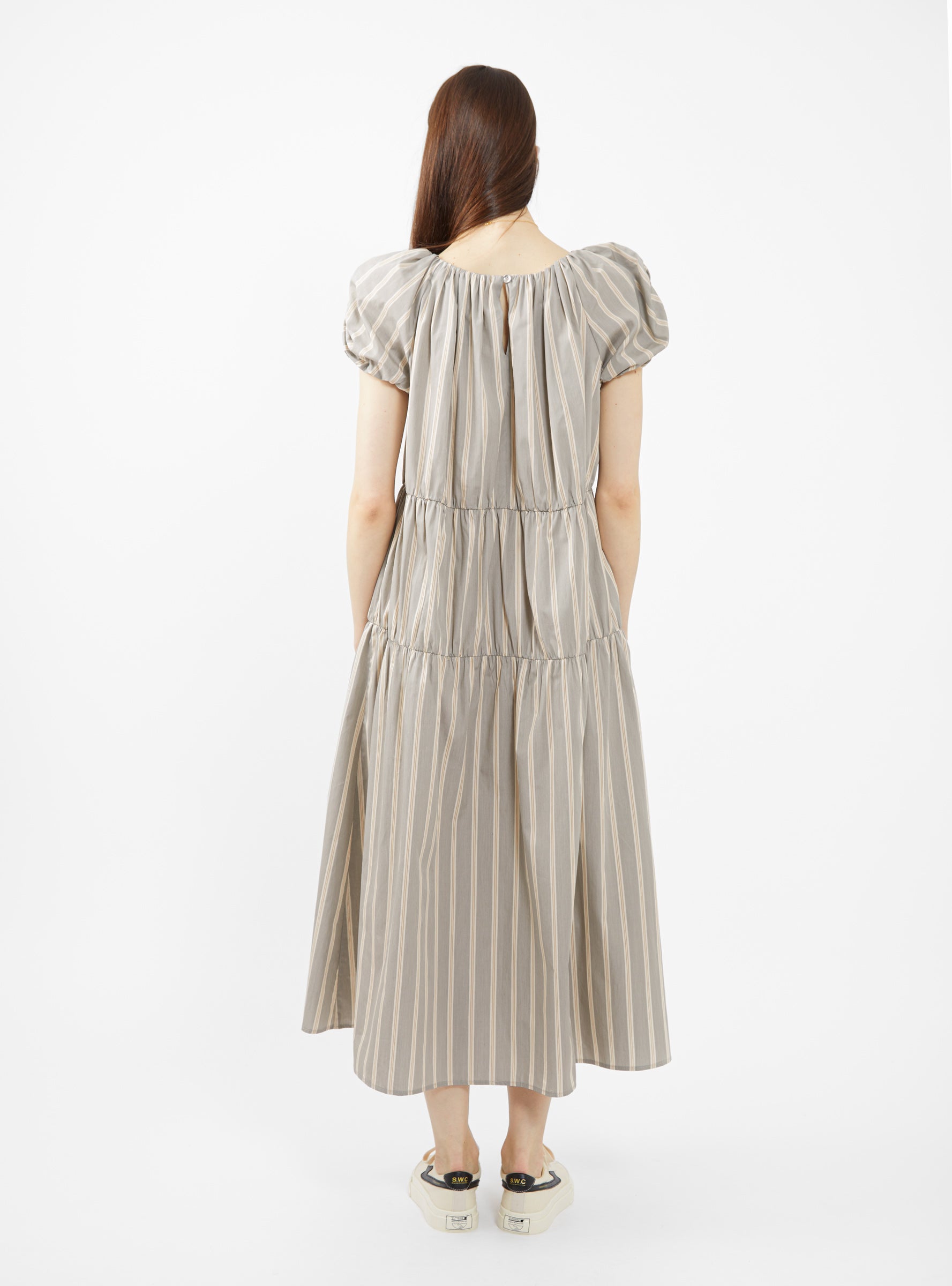 The Gaelle dress by Atelier Delphine features shirring balloon half sleeves for a relaxed, summer fit. The tiered gathering on the body gives it an elevated feel, along with two deep pockets for convenience.