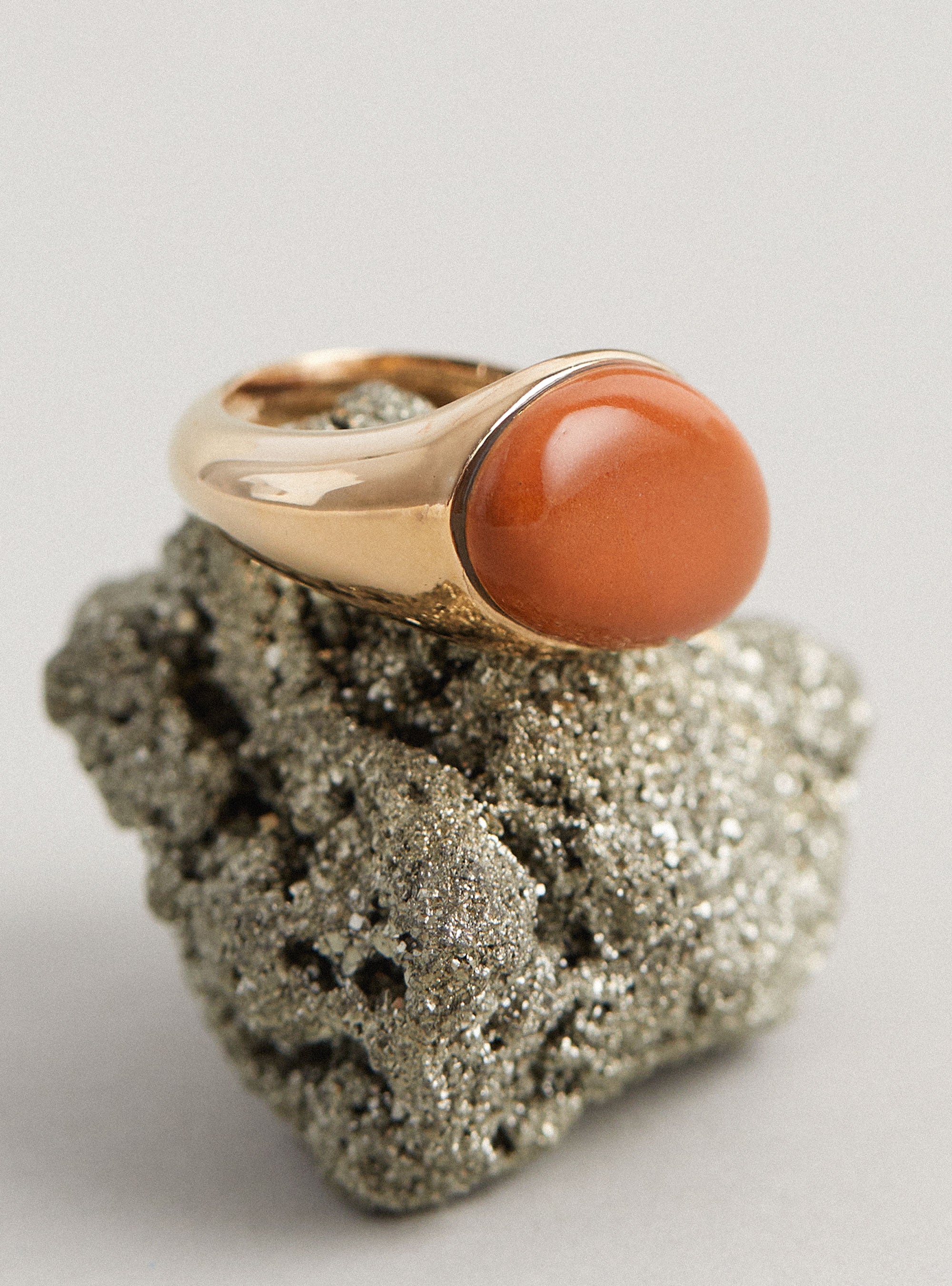 The Gold Plated Brass Ring by Helena Rohner arrives in a gold with a clay-coloured stone at the centre. Made in Spain, the stone gives the ring a slightly oversized profile.