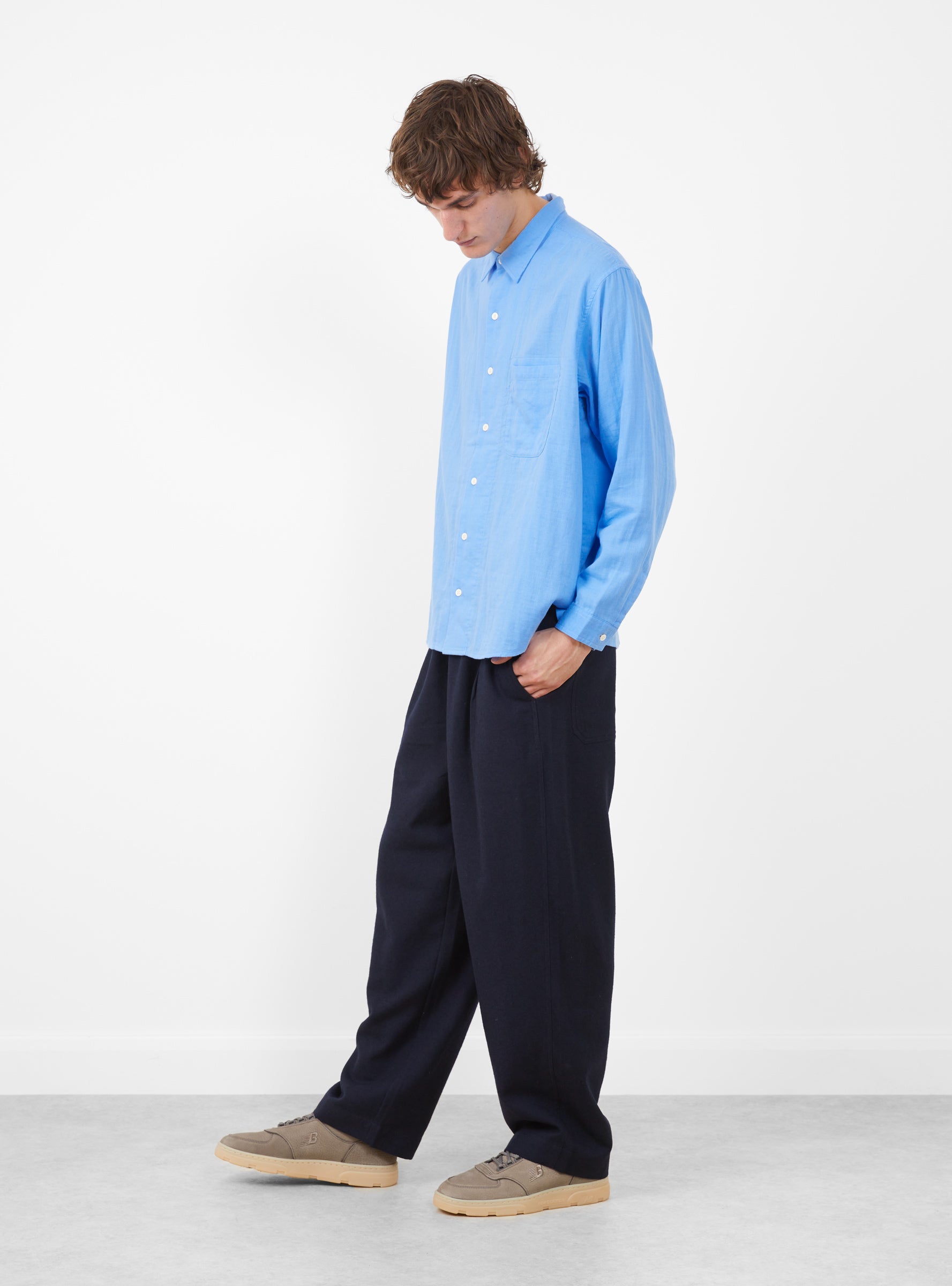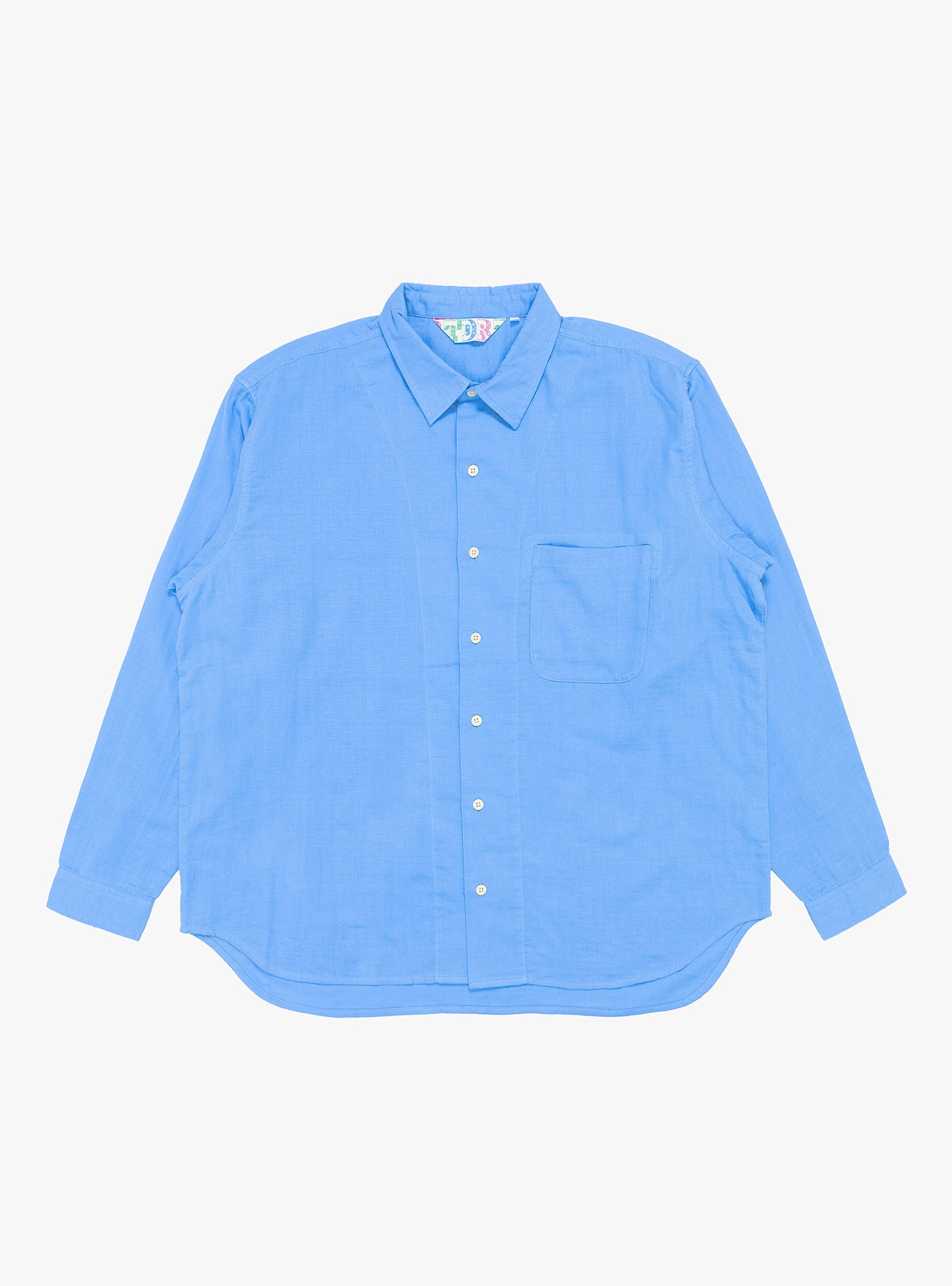 The Grande Shirt from TDR arrives in a sky. Constructed from a lightweight Japanese cotton, the shirt falls to a classic, relaxed silhouette with a Y-shaped placket. A patch pocket sits at the chest, whilst codelite milk casein buttons closure rounds off the shirt.