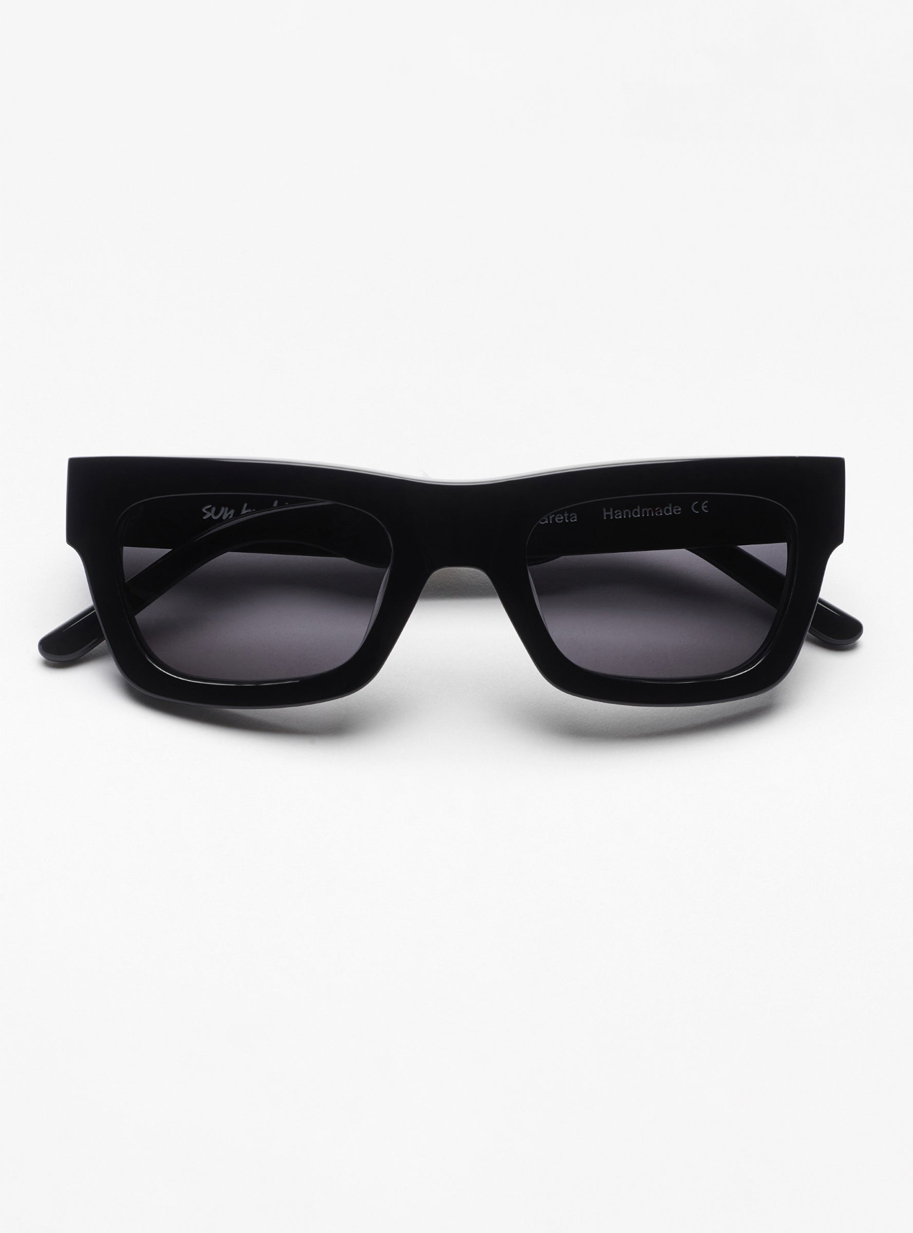 Timeless in black, the Greta sunglasses from Sun Buddies will go with just about anything. Handmade from thick Italian acetate, they have a classic D-frame silhouette and tonal Carl Zeiss lenses, providing 100% UV protection.