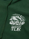 The Hare Hoodie from TDR arrives in a Forest Green. Made in Canada from a 400GSM fleece, the hoodie falls to a relaxed fit. Ribbed side panels give the hoodie shape, whilst a graphic printed across the front and a TDR logo at the sleeve the back round off the hoodie. The hood can be adjusted using flat drawcords.