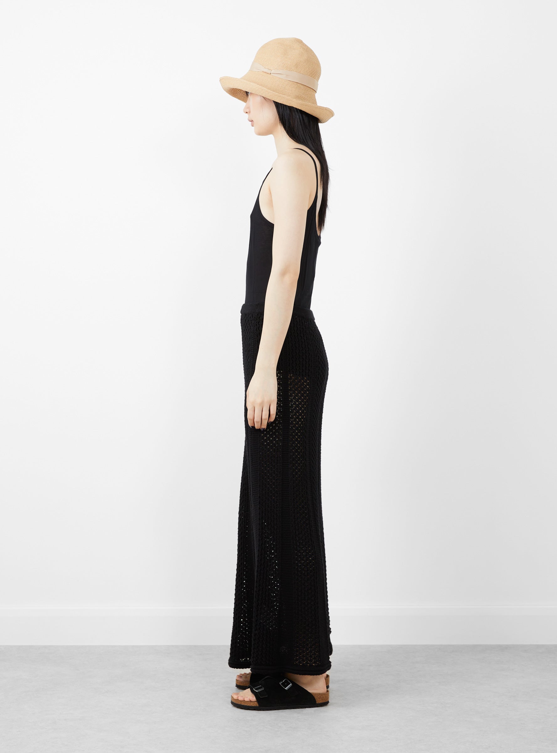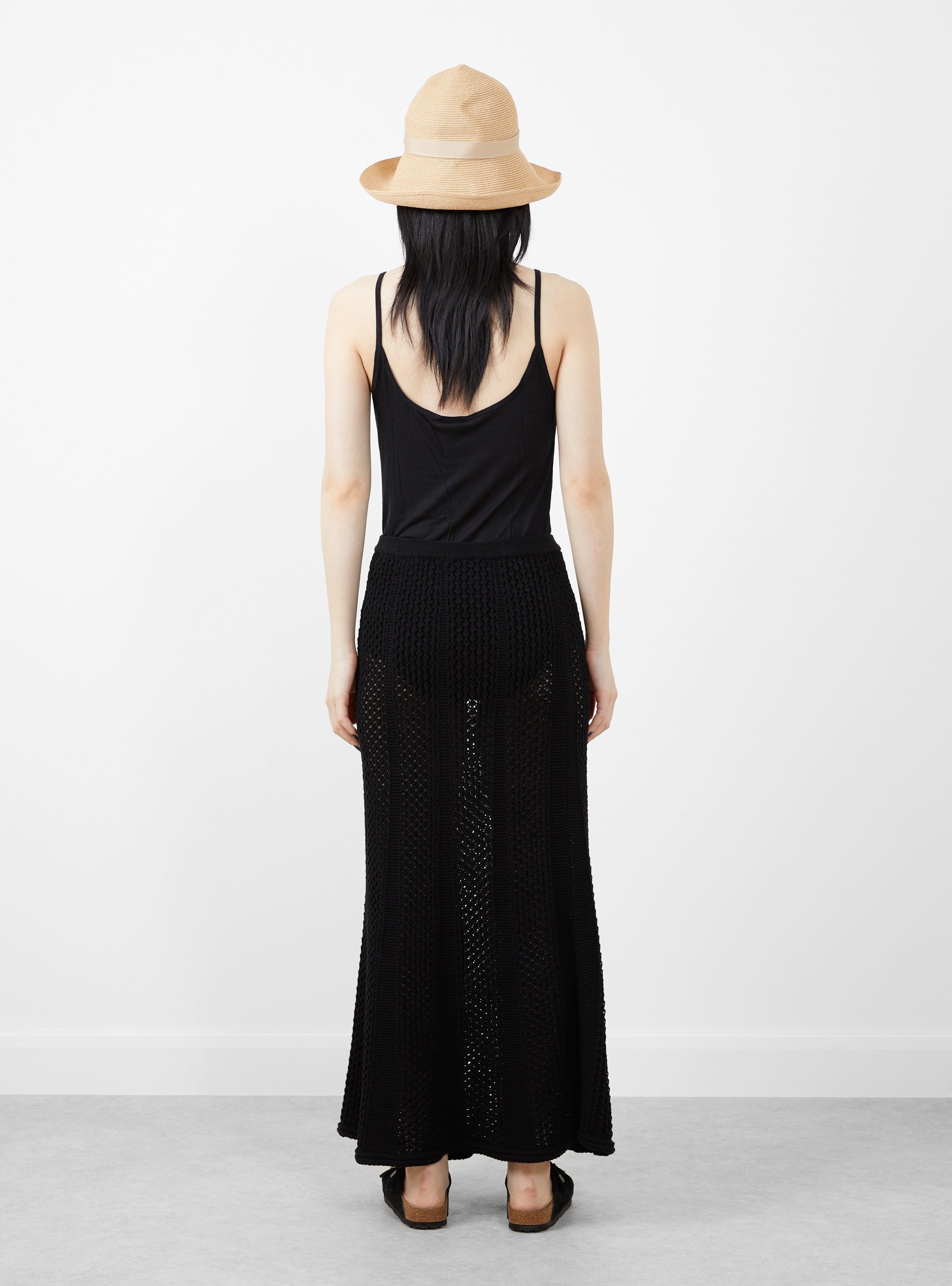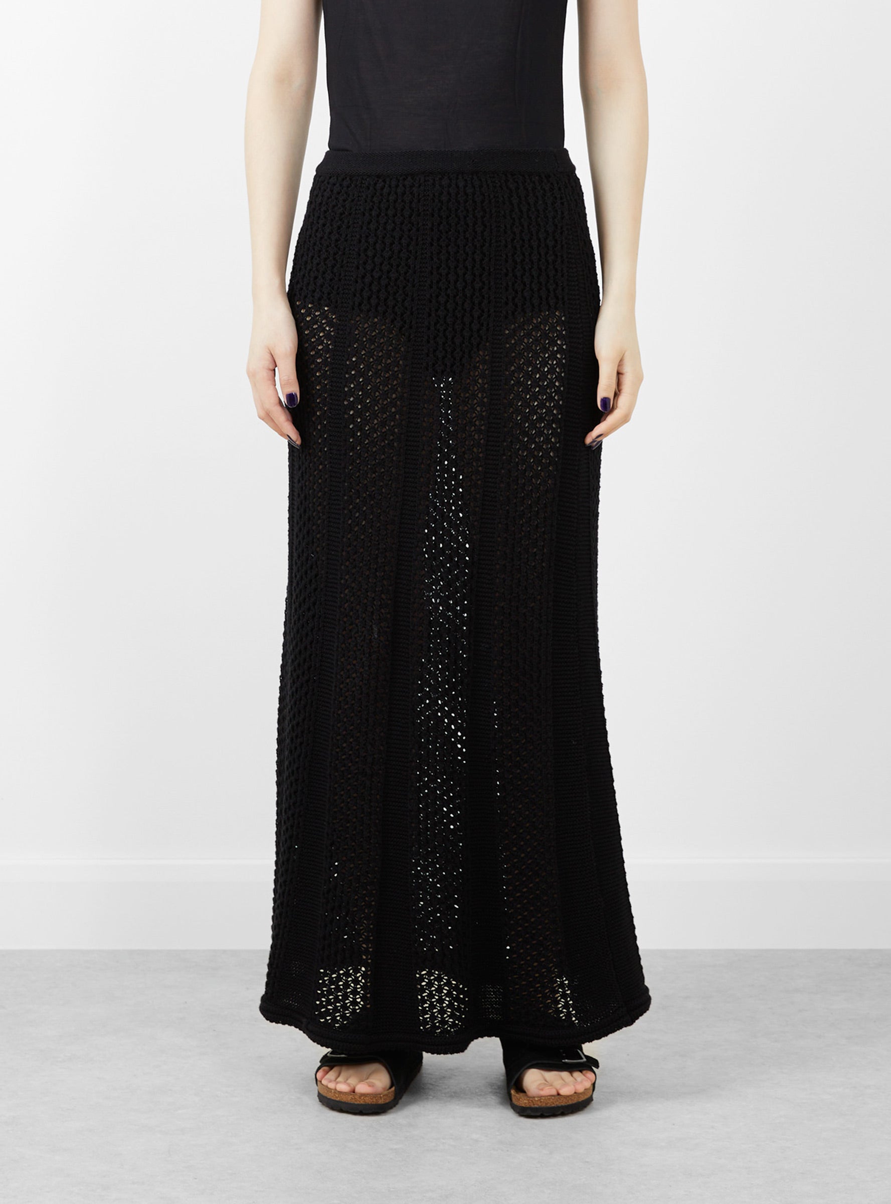 The Haven Skirt from Skall Studio comes in a black crochet. Made in Italy from organic cotton, the skirt falls to a relaxed fit with an elasticated waistband and voluminous panels. An eyelet crochet finish defines the ultimate summer skirt.