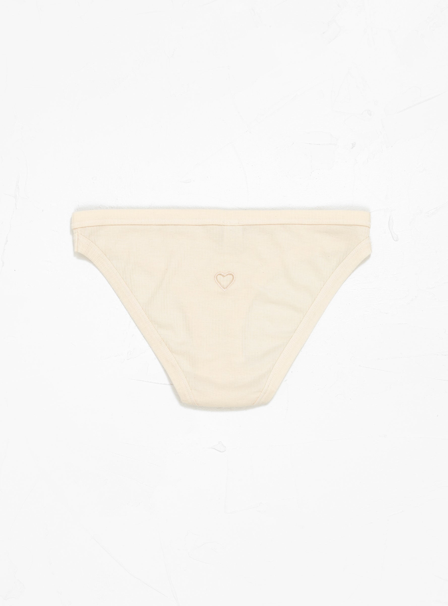 Made in Portugal from stretch-organic cotton jersey with a ribbed construction, these undyed Heart Bell pants from Baserange feature elasticated edges and are finished with a heart-shaped cut out at the back.