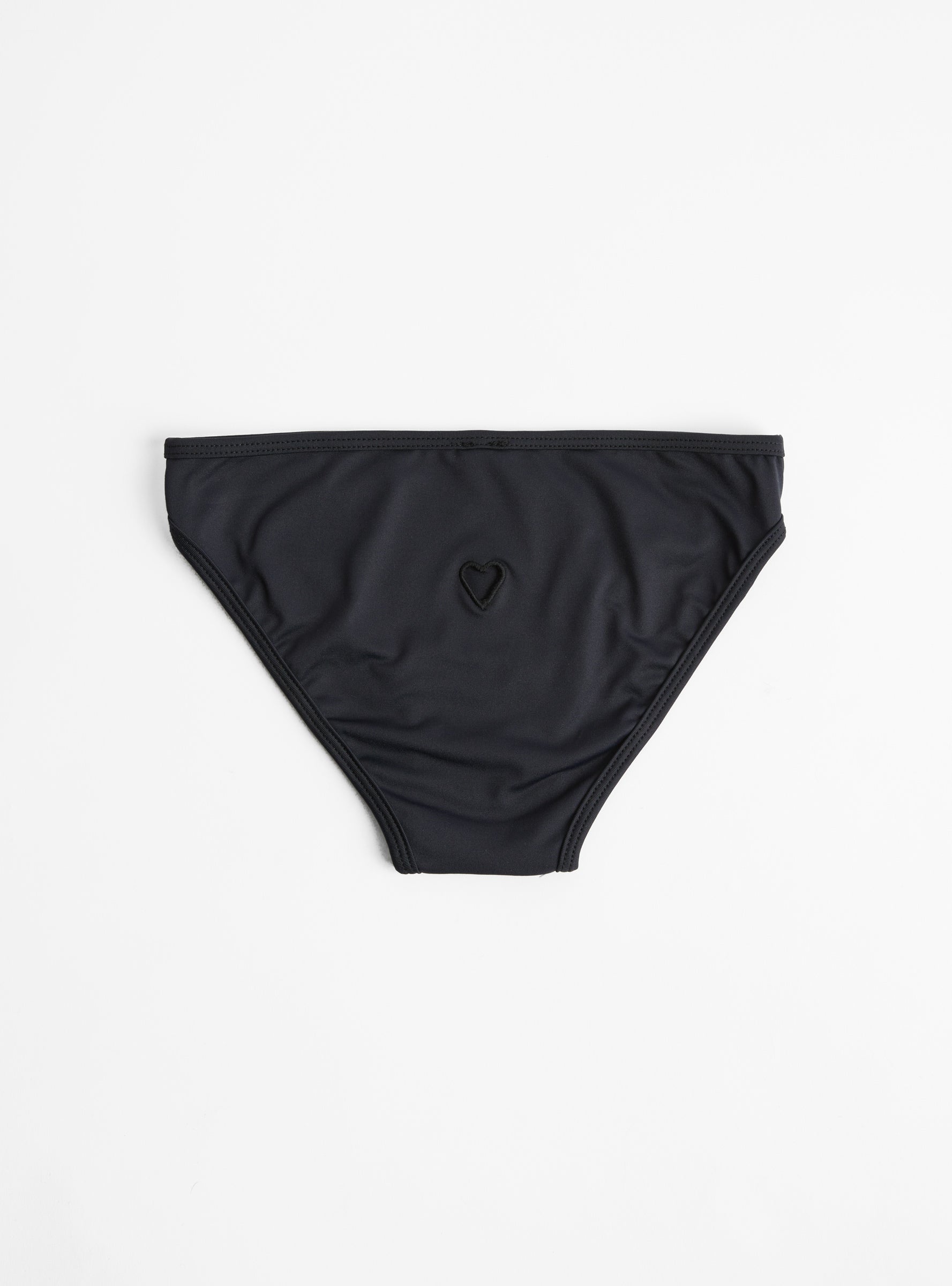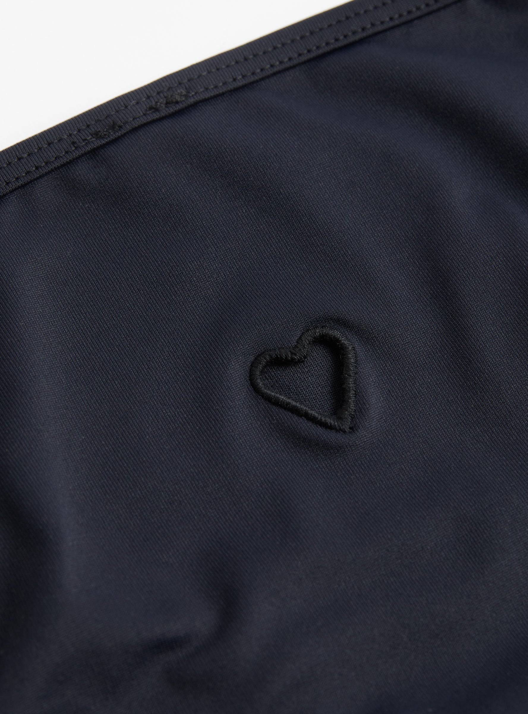The Heart Swim Pants in Black from Baserange features a heart shape embroidery with a cut out at the back. Made using deadstock material in Portugal, the nylon swim pants have elastic trim at the the waist and the leg for comfort and support.