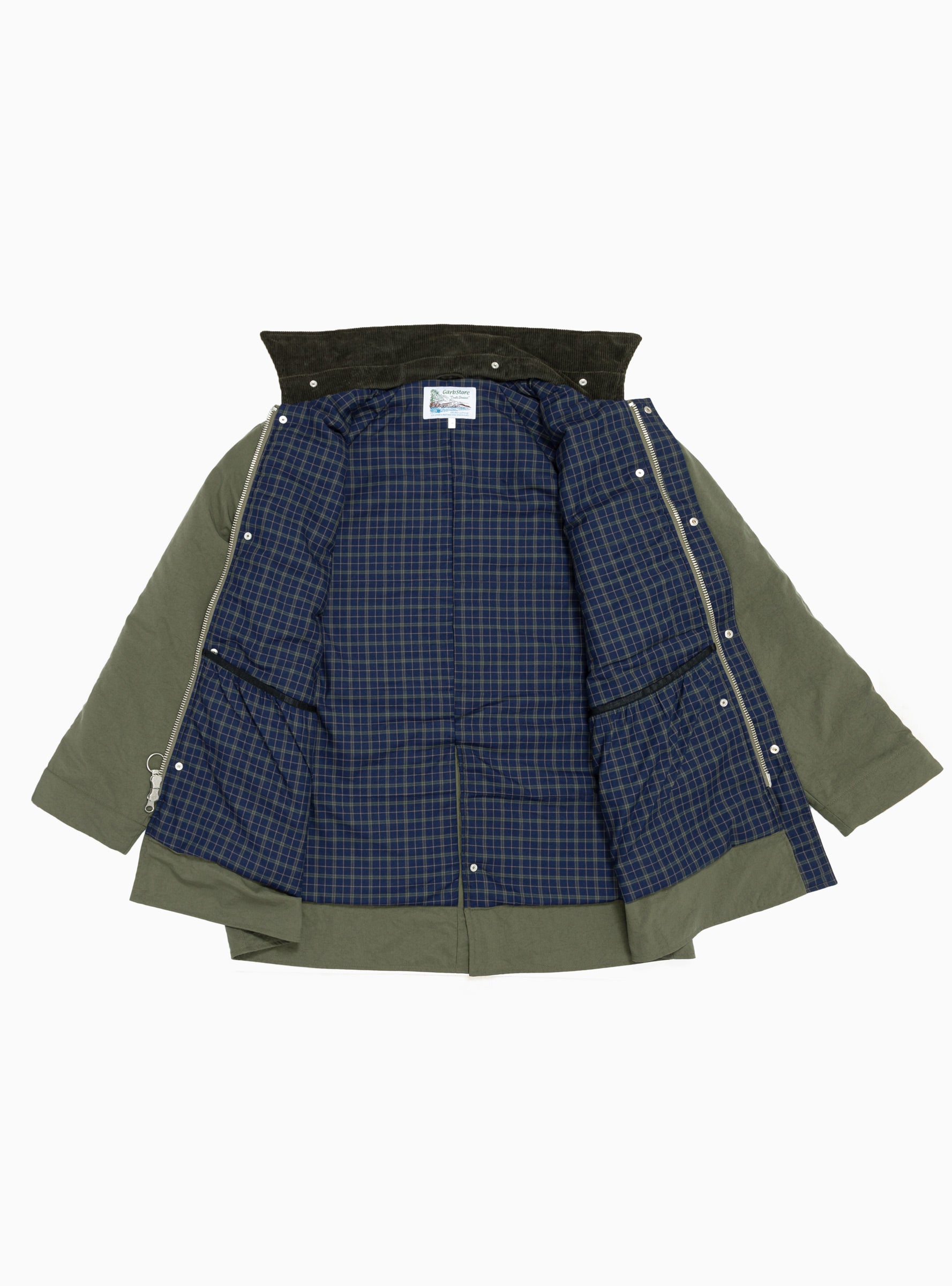 A new take on the classic wax jacket, this olive Highway style from Garbstore’s SS23 collection is lightly padded, making it ideal for spring. Made from nylon with a checked cotton lining, it’s cut to a relaxed silhouette with corduroy trims and features an assortment of pockets, including two large internal compartments.