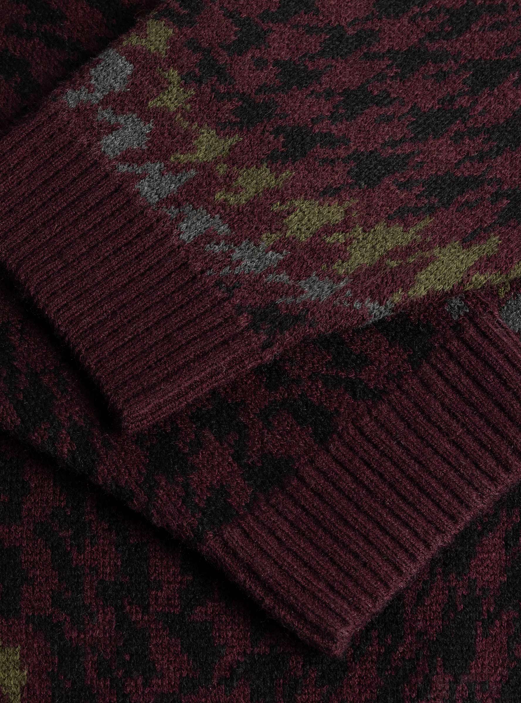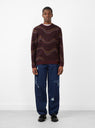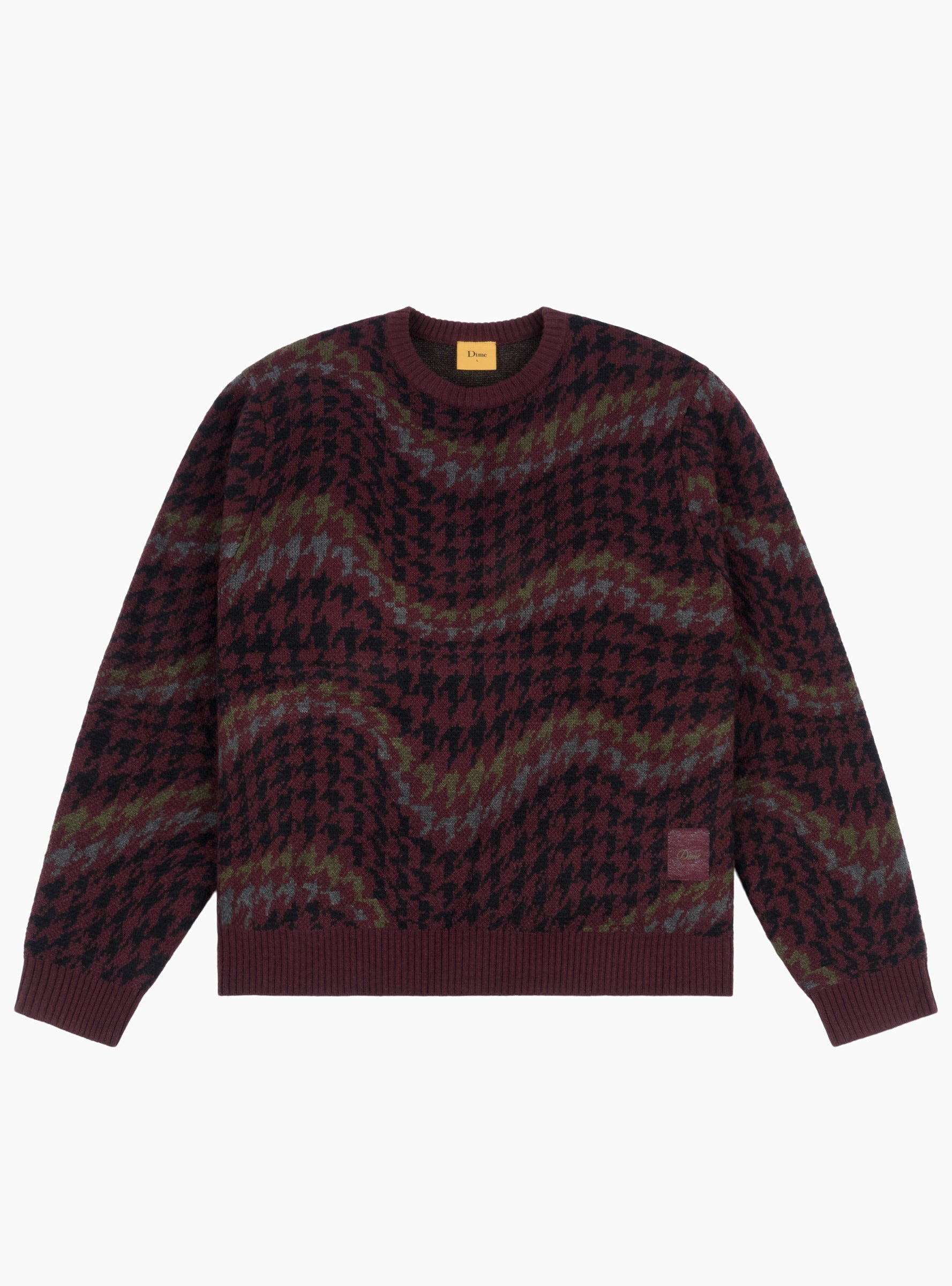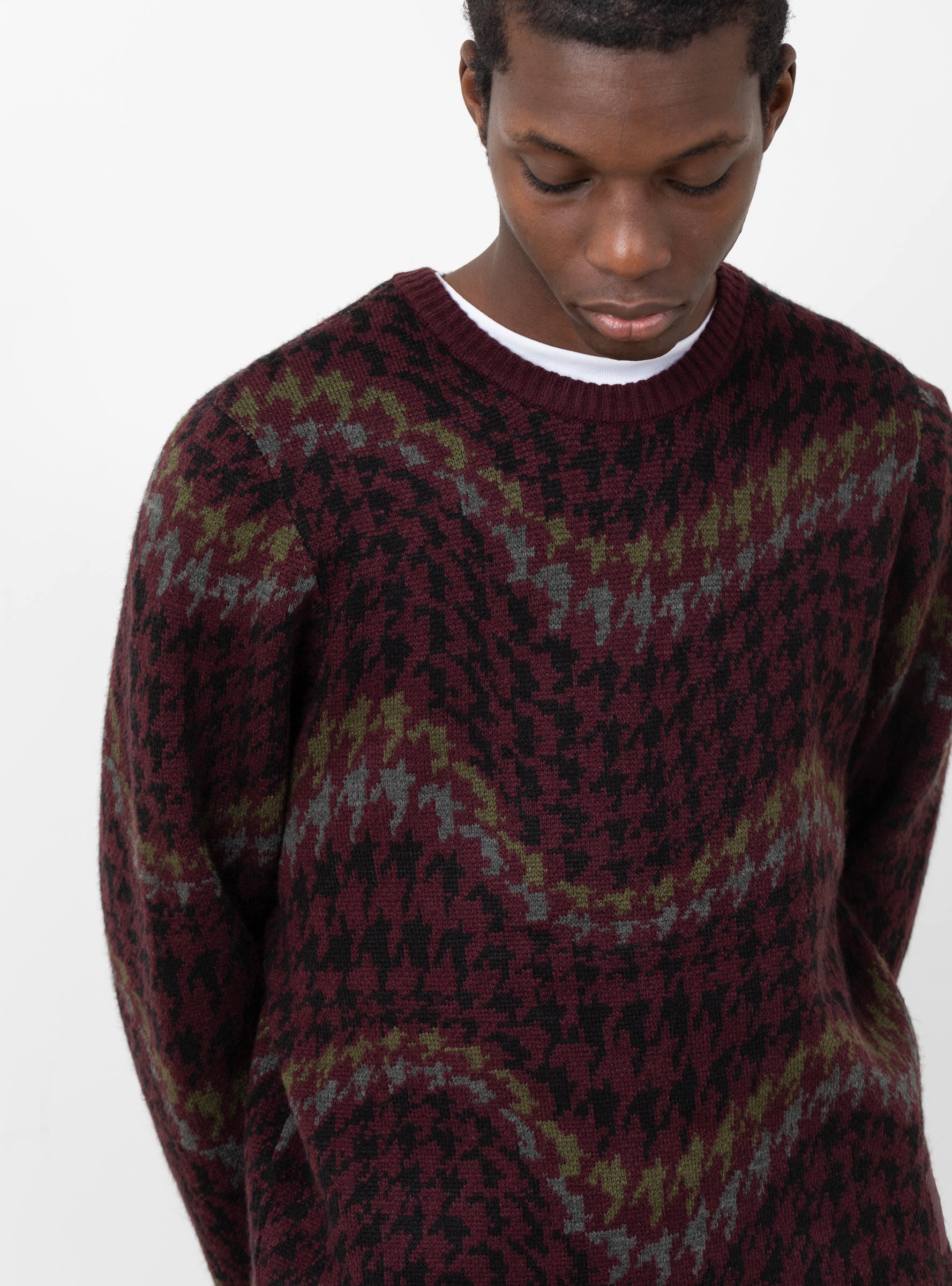 The Houndstooth Knit Jumper from Dime arrives in a burgundy. Made from a woollen blend, the jumper falls to a regular fit. It features a signature design of Dime's, a classic pattern reinterpreted through a wave construction - in this case, houndstooth. The knitted jumper is finished with ribbed trims.