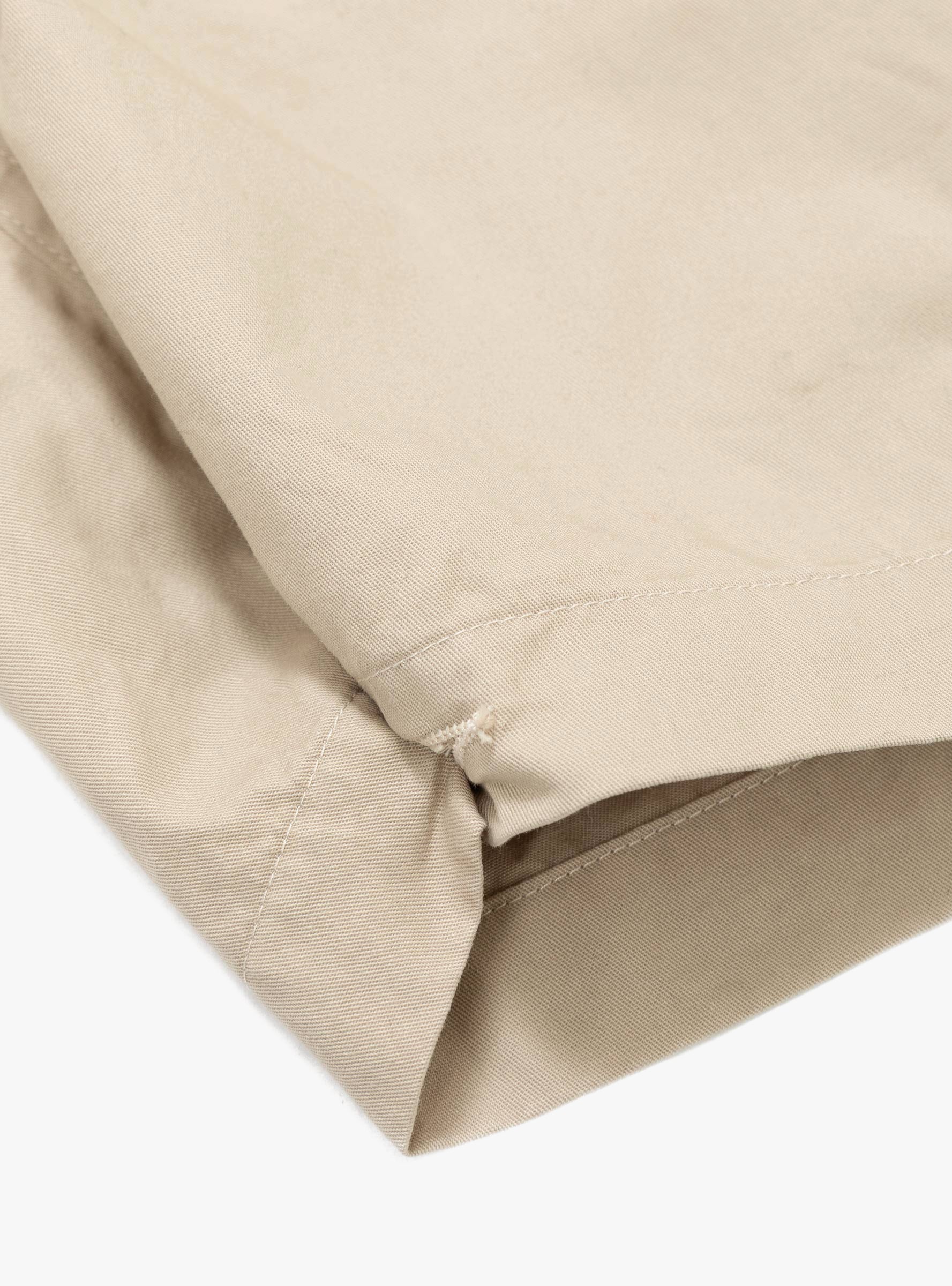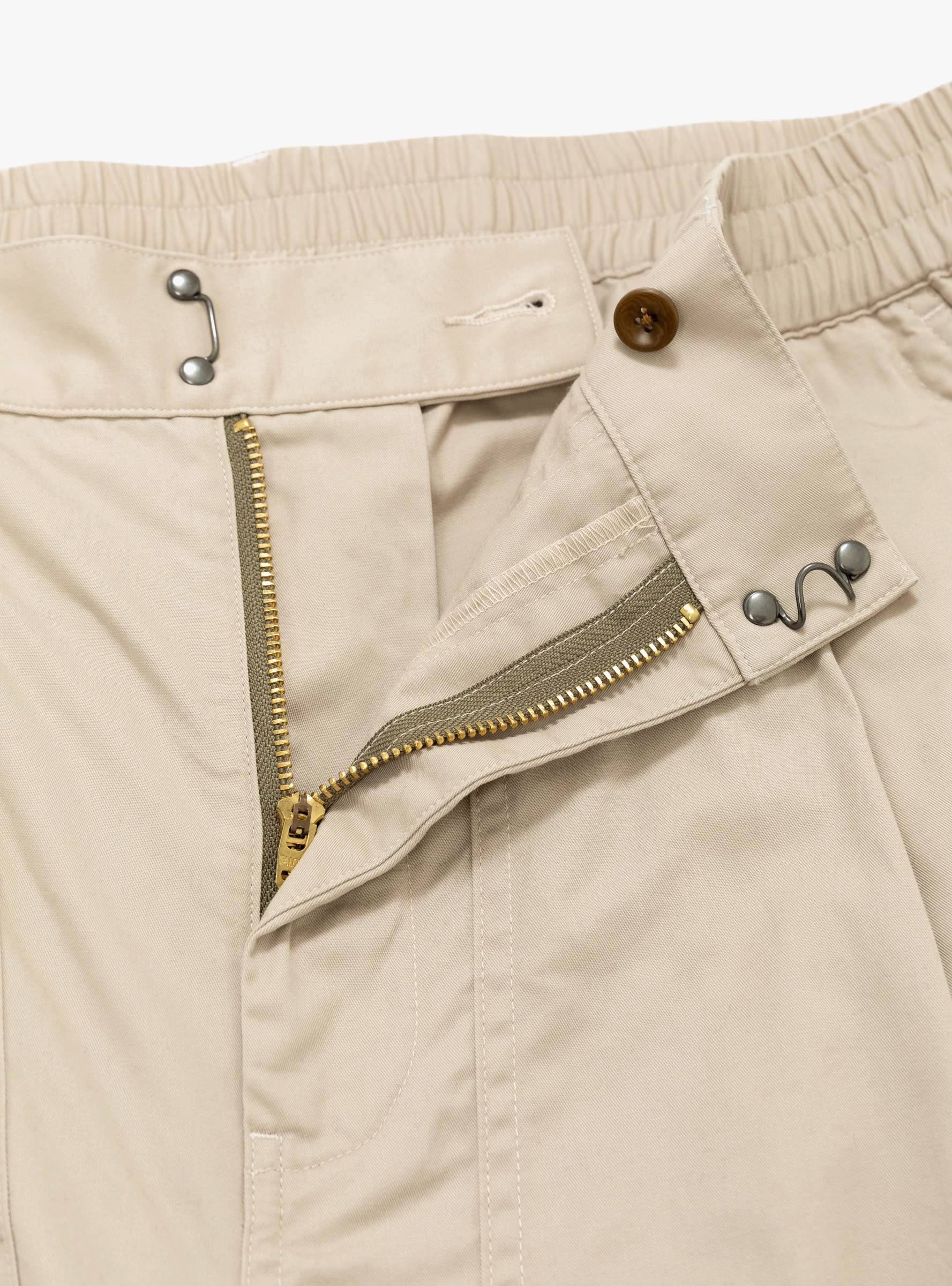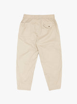 The Joiner Pant from TDR arrives in a tan. Constructed from cotton, the trousers fall to a relaxed loose fit with a single pleat front. Circular topstitching on the knee creates a panel construction, whilst adjustable buttons at the hem allow for the creation of a more tapered fit. A Talon zip front fly and hook and bar closure seal the trousers, whilst front slash pockets and a rear patch pocket offer storage capabilities.