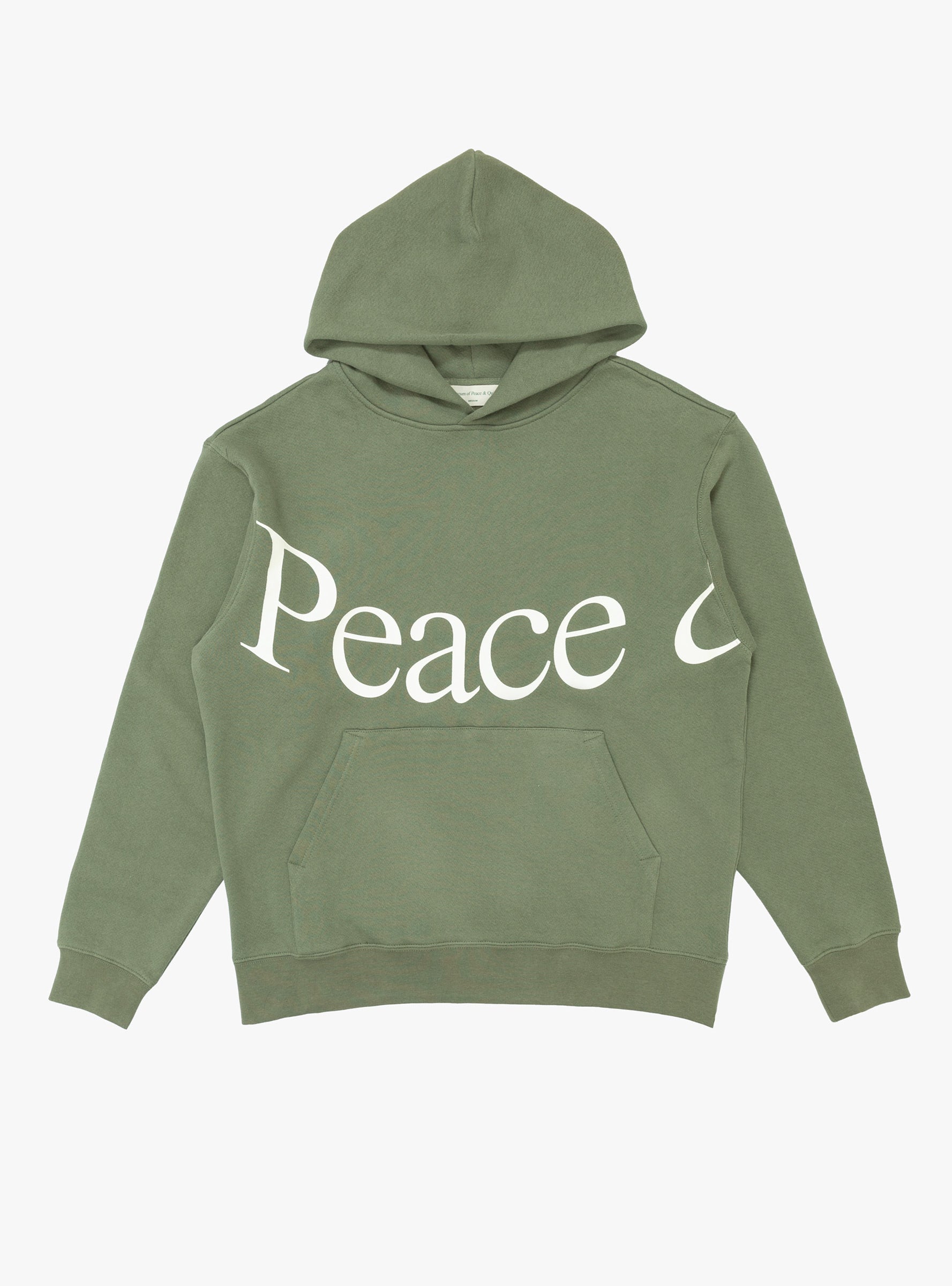Made from cotton, the Jumbo Wordmark Hoodie by Museum of Peace and Quiet comes in Olive. Featuring a chest print and long sleeves, this hooded style also includes a convenient kangaroo pocket.