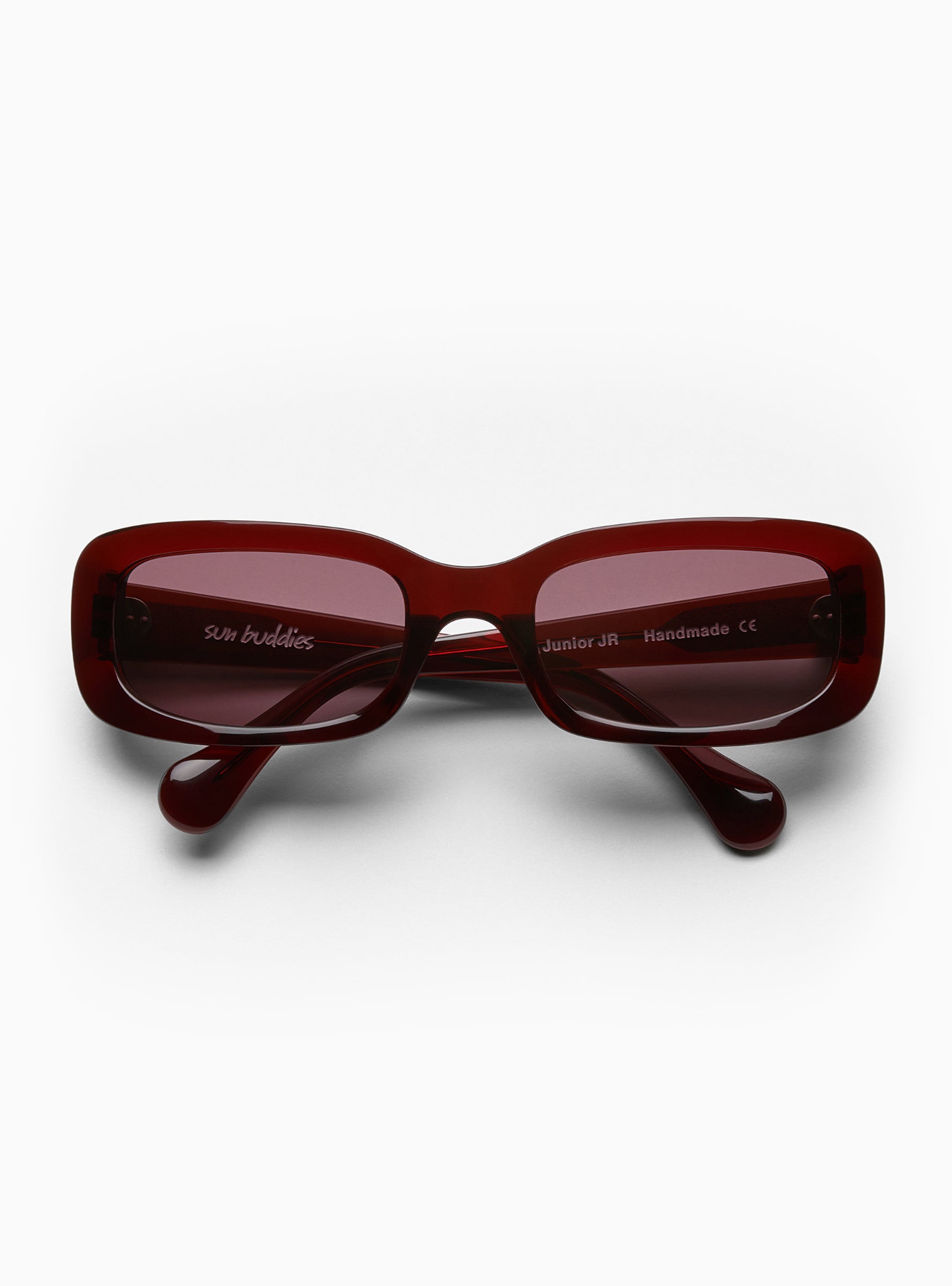 Handmade from sturdy Italian acetate, these bourgogne-red Junior Jr sunglasses from Sun Buddies feature red Carl Zeiss lenses to provide 100% UV protection.