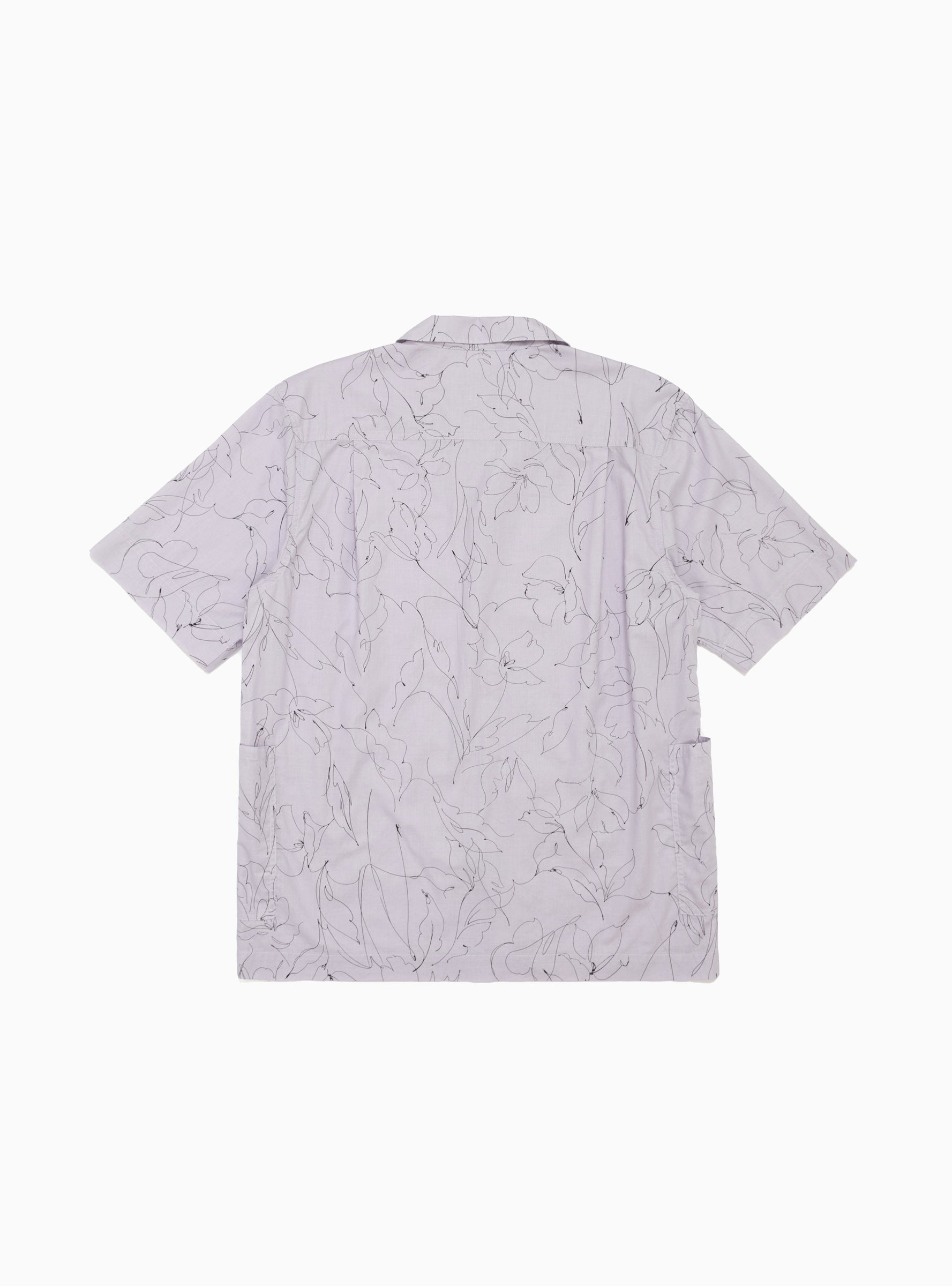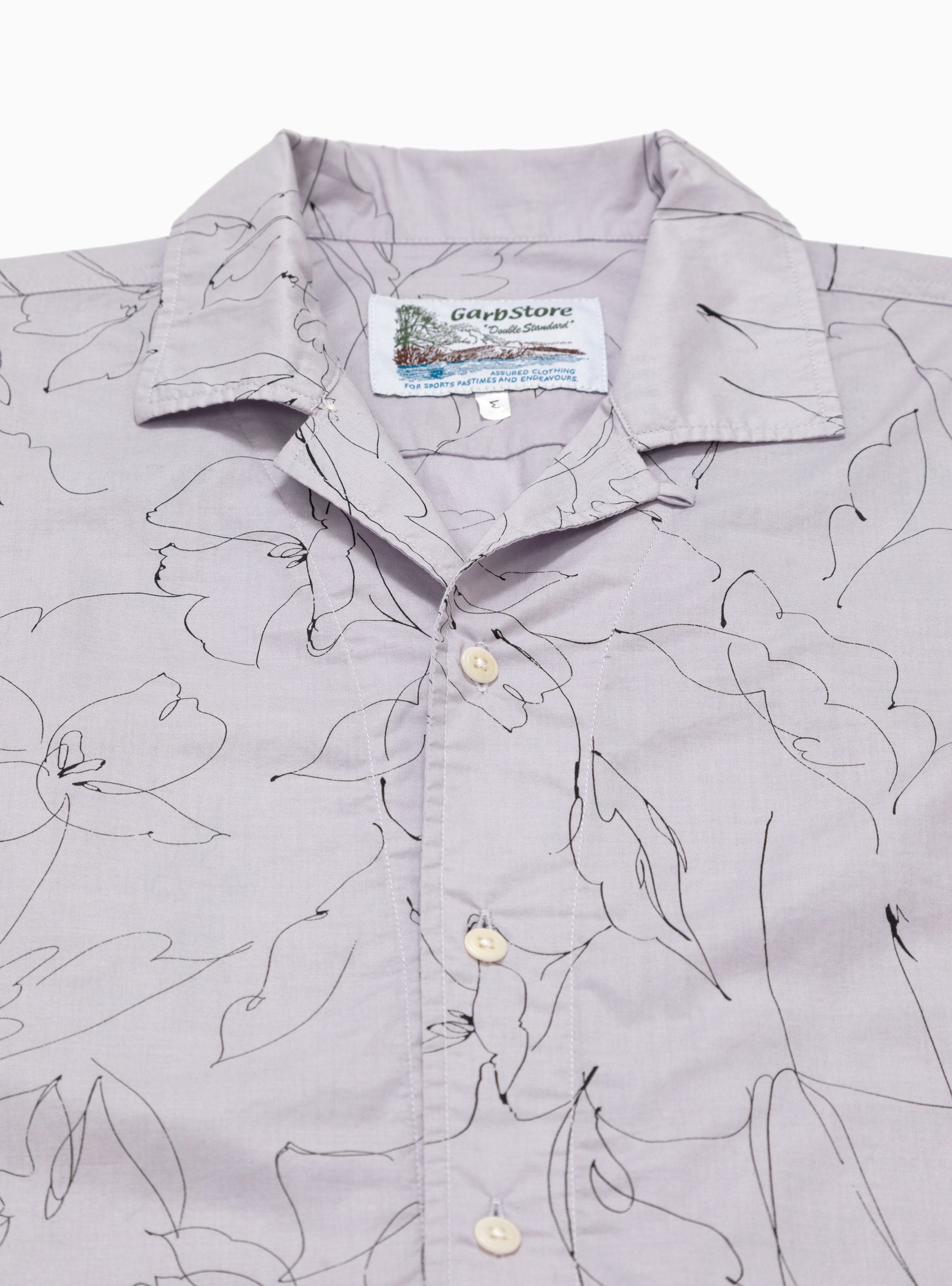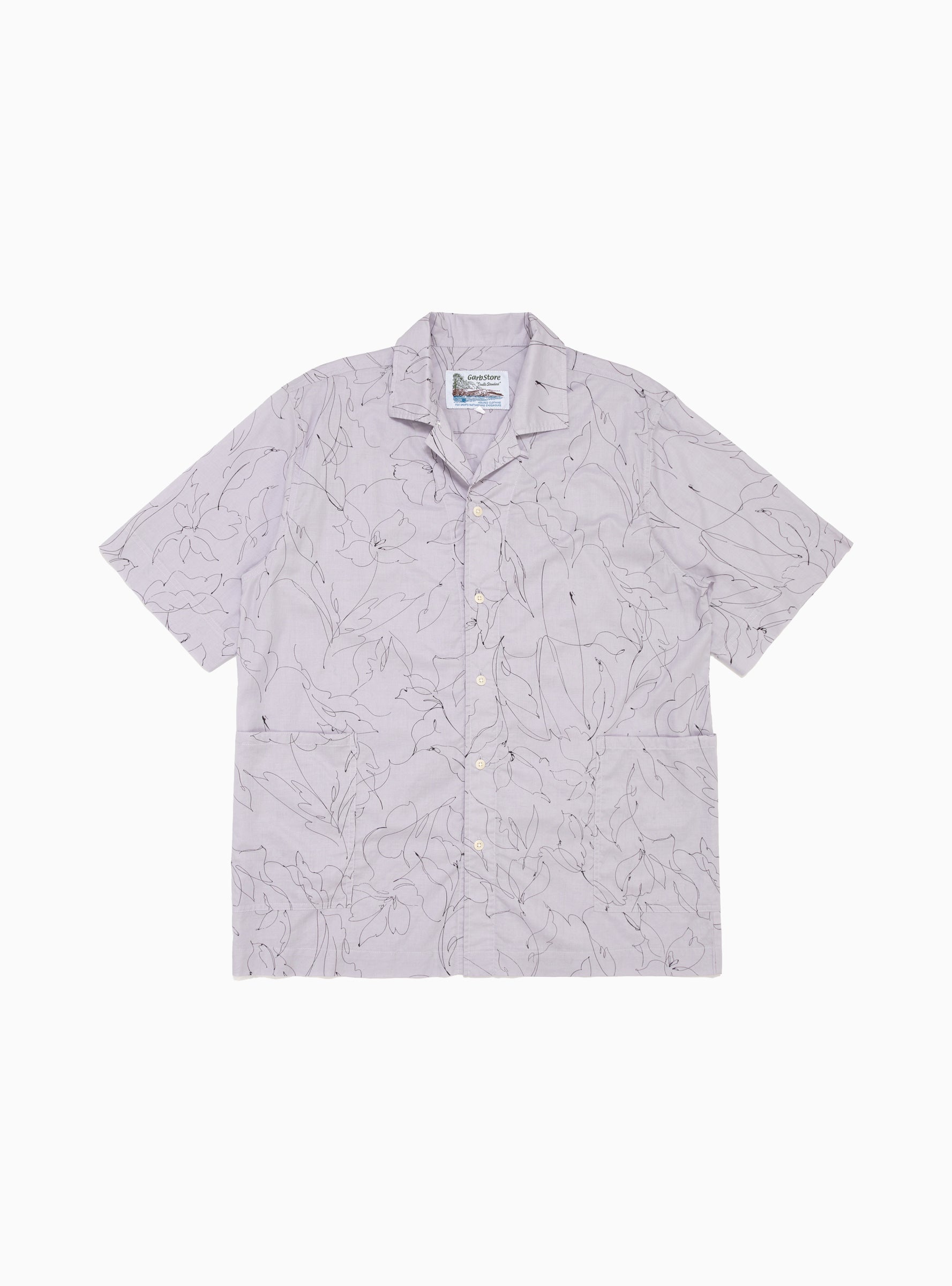 Made from Japanese cotton, this lilac floral Kabana shirt from Garbstore’s SS23 collection is cut to a relaxed silhouette with a two-way spread collar and features a patch pocket at the chest. Corozo nut buttons fasten the front.