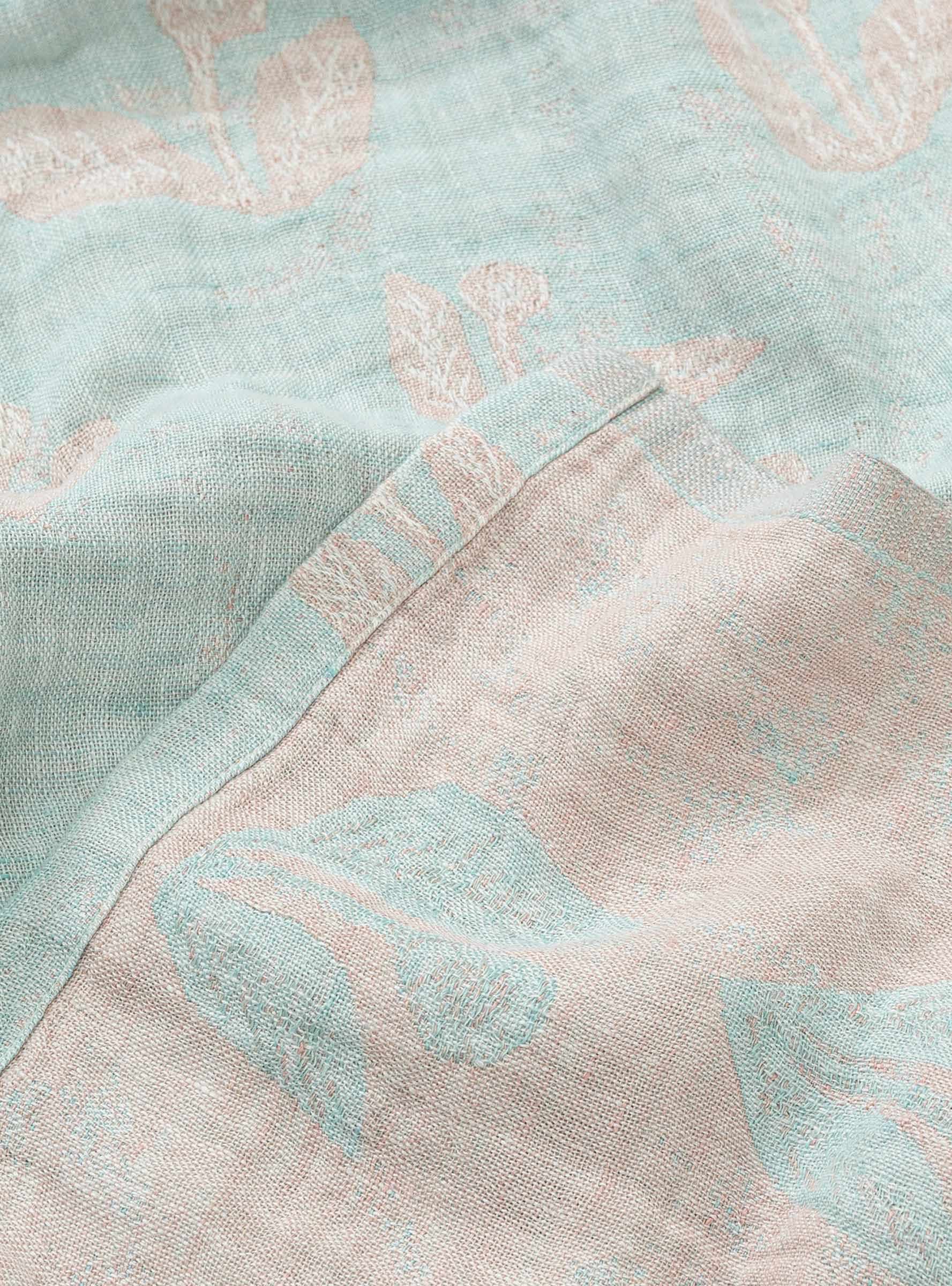 The Kesakukka Tablecloth is the result of a collaboration between two of our favourite brands at Couverture, Lapuan Kankurit and Minä Perhonen. Woven in Finland from a washed linen cloth, the tablecloth comes in a soft turquoise with delicate floral detailing throughout.