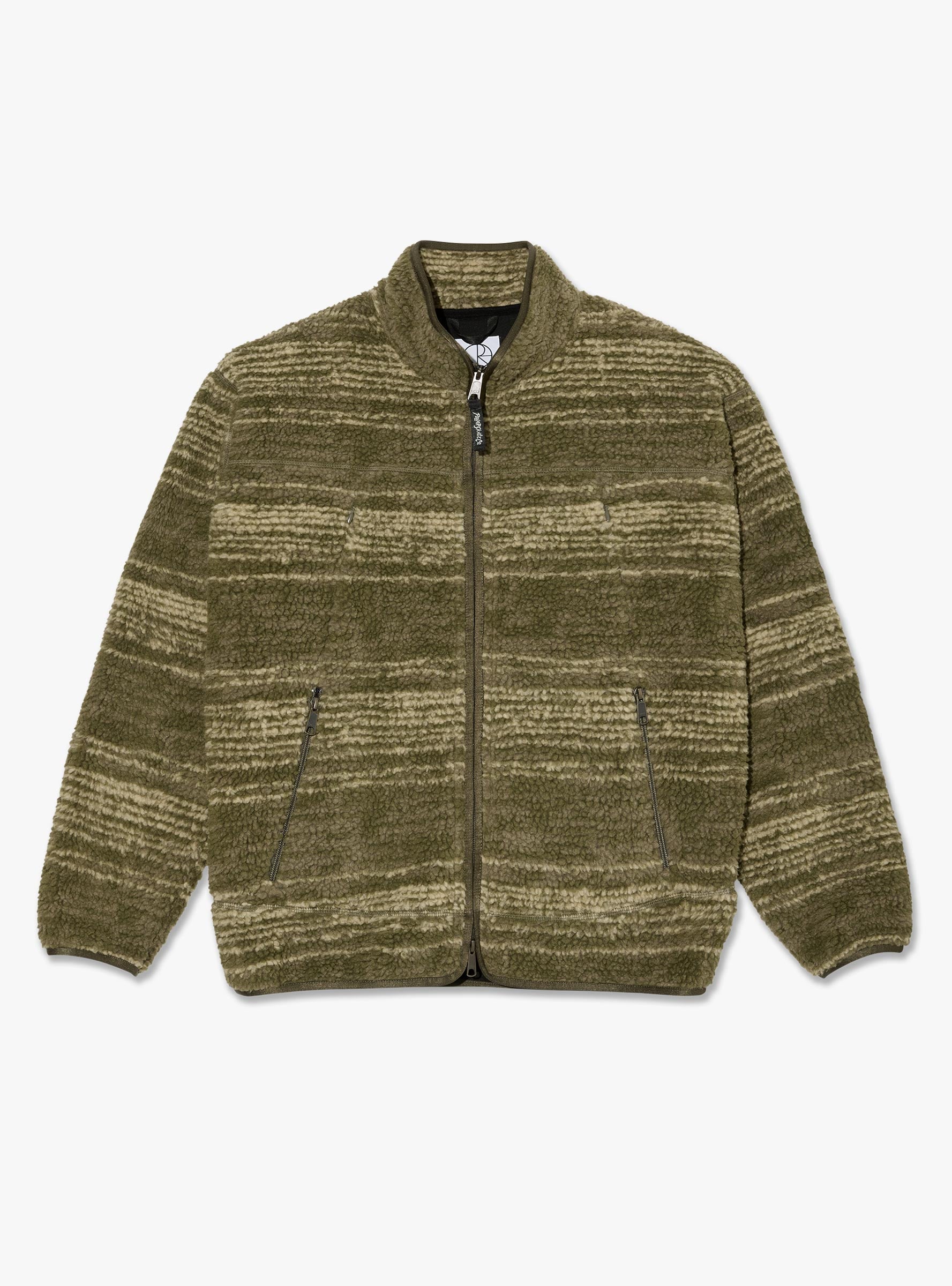 The Kiko Jacket from Polar Skate Co. arrives in an army green colourway. Cut from a nylon fleece, the jacket falls to a regular fit. A two-way zip closure offers styling options on the winter warmer, which also features taped trims to keep the warmth in. An abstract stripe pattern provides interest through the front, which also features zip pockets.
