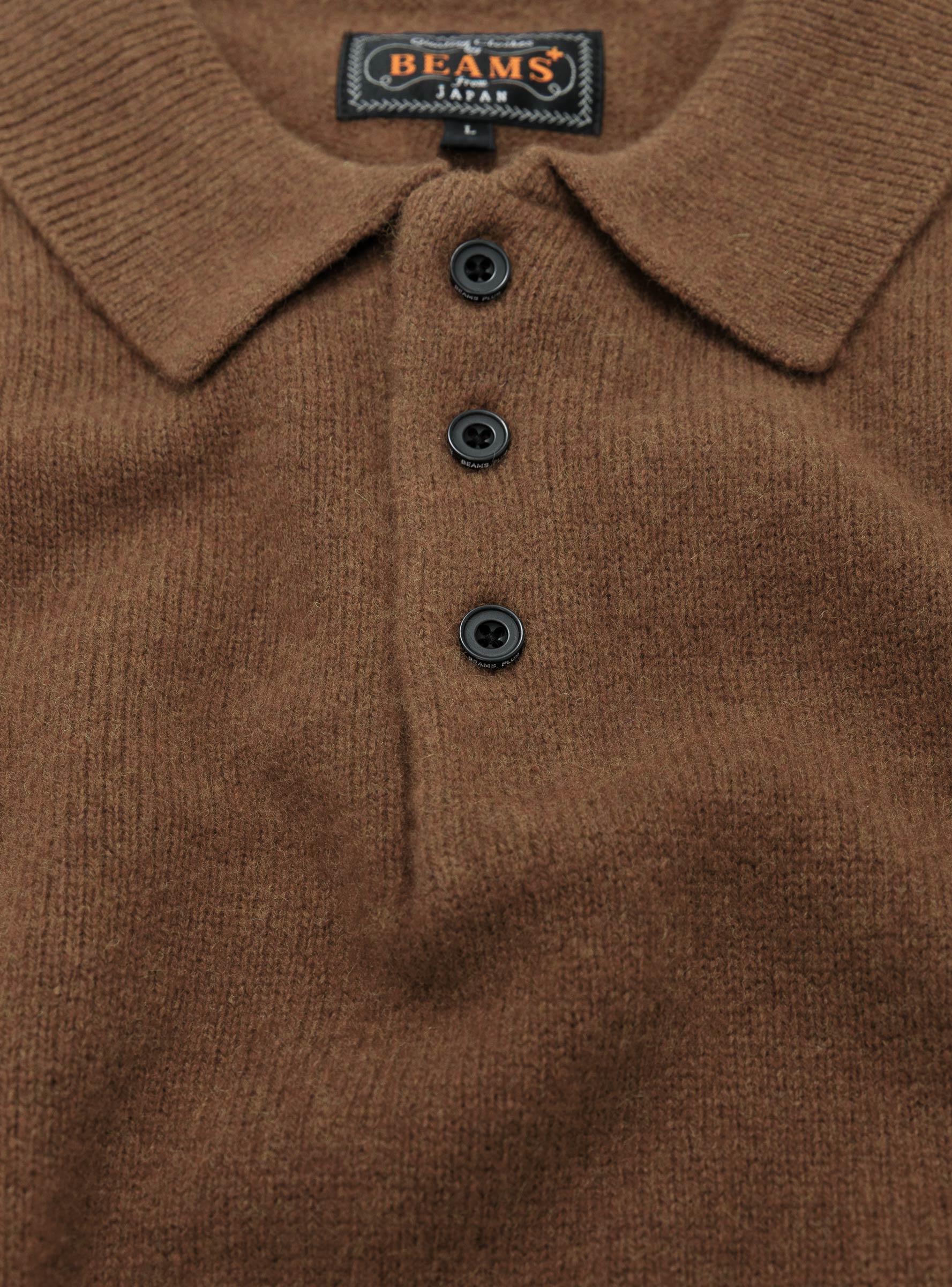 The Knit Polo from Beams Plus arrives in a Brown. The knitted, 9-gauge polo falls to a regular fit. A classic wardrobe staple, the polo sweater is crafted from a premium wool and is finished with a tri-button placket, a collar and ribbed trims.