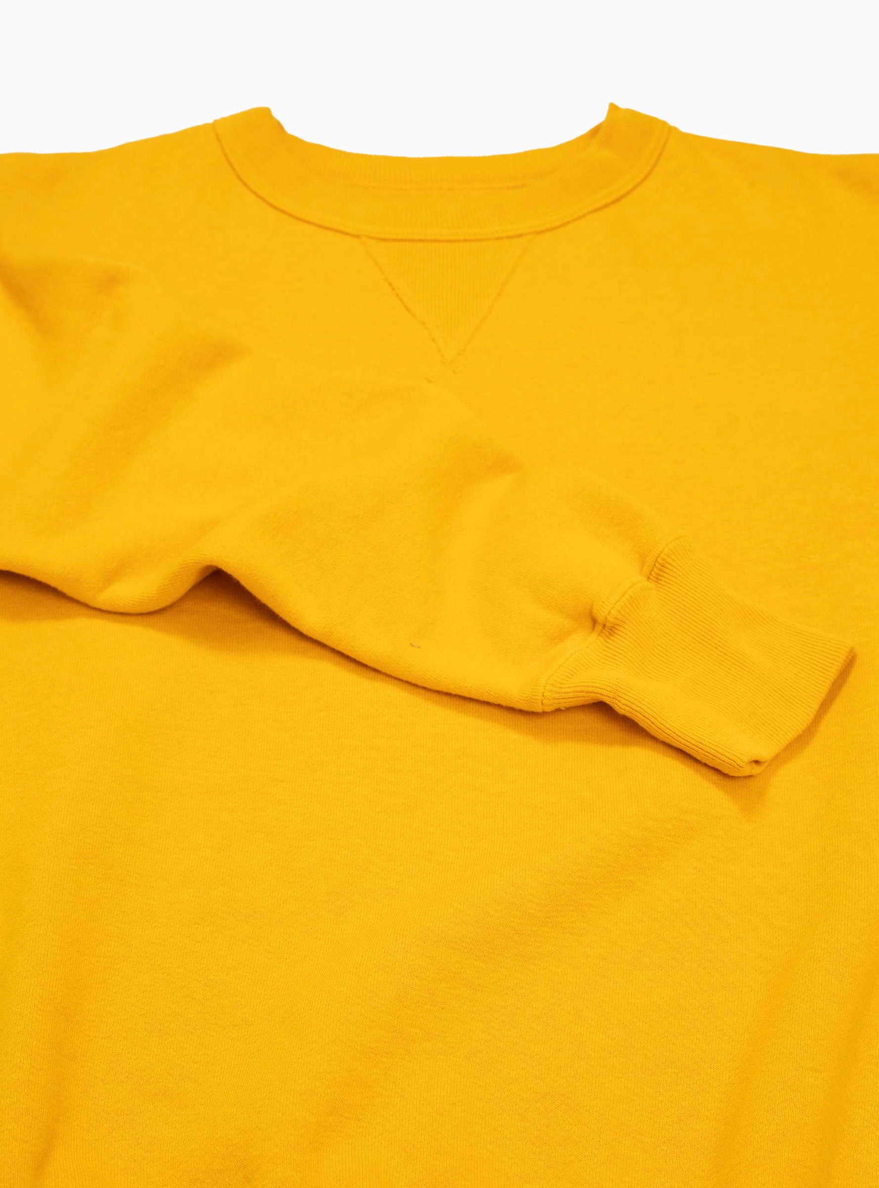 Made in Japan using one of the last two antique loopwheel knitting machines, which avoids the need for side seams and creates less tension on the fabric, this mango mojito-yellow Laniakea sweatshirt from Sunray Sportwear is cut to a classic, yet slightly boxy, silhouette with a crewneck and ribbed edges.