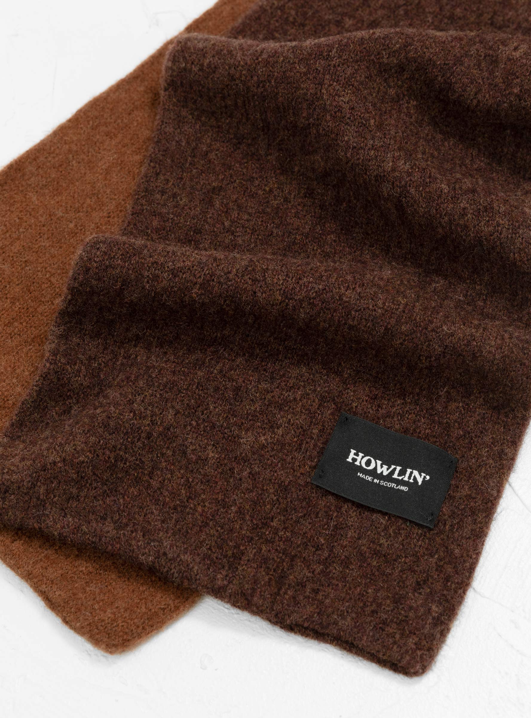 The Laser Attack Scarf from Howlin' arrives in a Wood colourway, a block brown design. It is knitted in Scotland from Pure Lambswool.