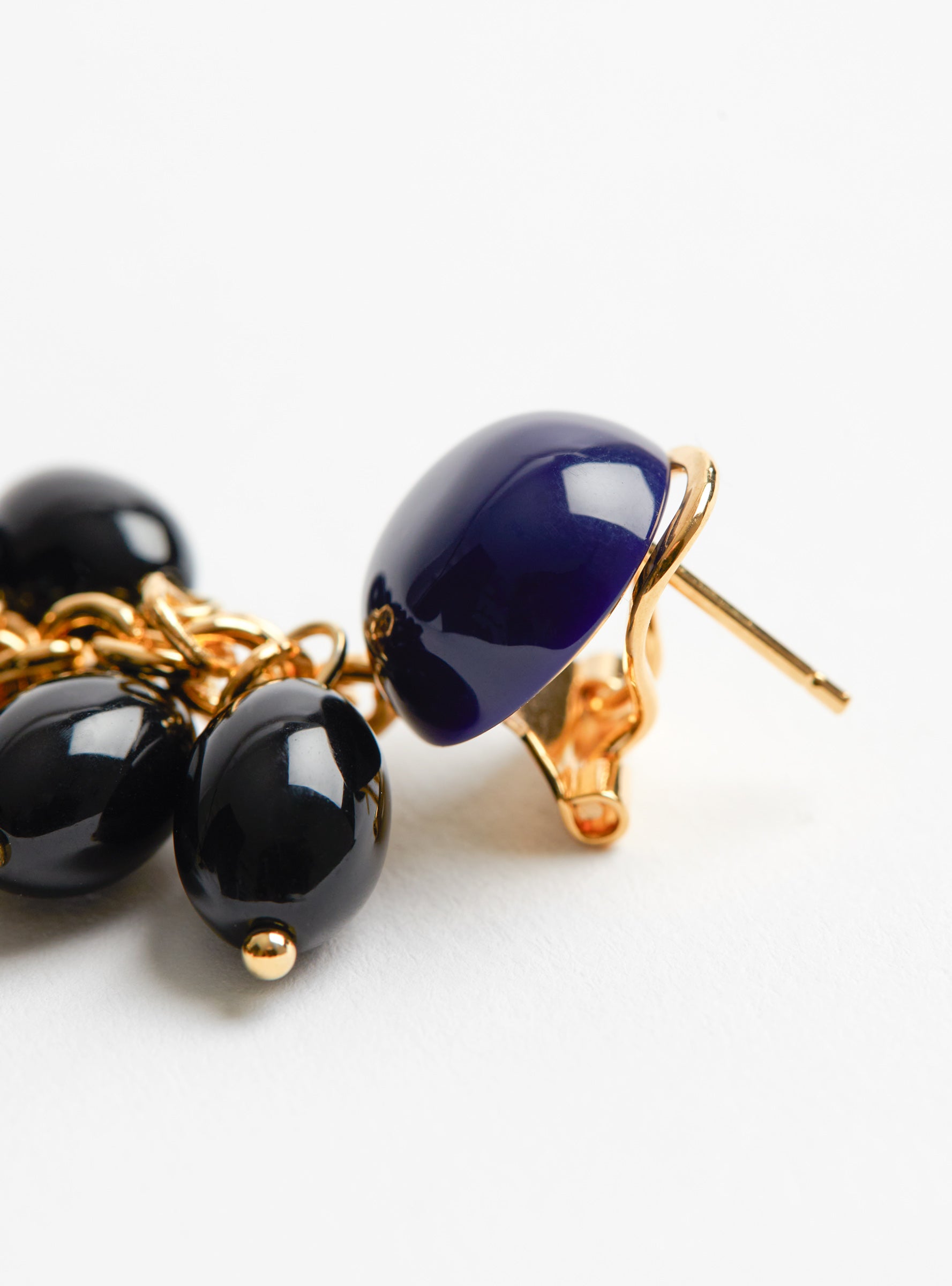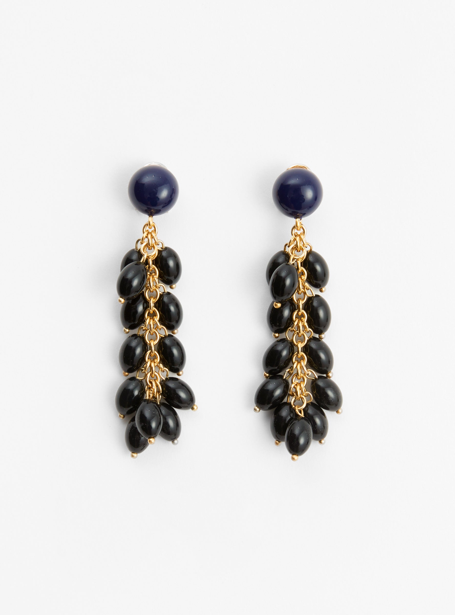 The Laurel Earrings in Black from Rachel Comey feature layered acrylic beads suspended from gold-tone chains, designed to move subtly with wear. Crafted in Italy, they fasten with omega backs for a secure and comfortable fit.