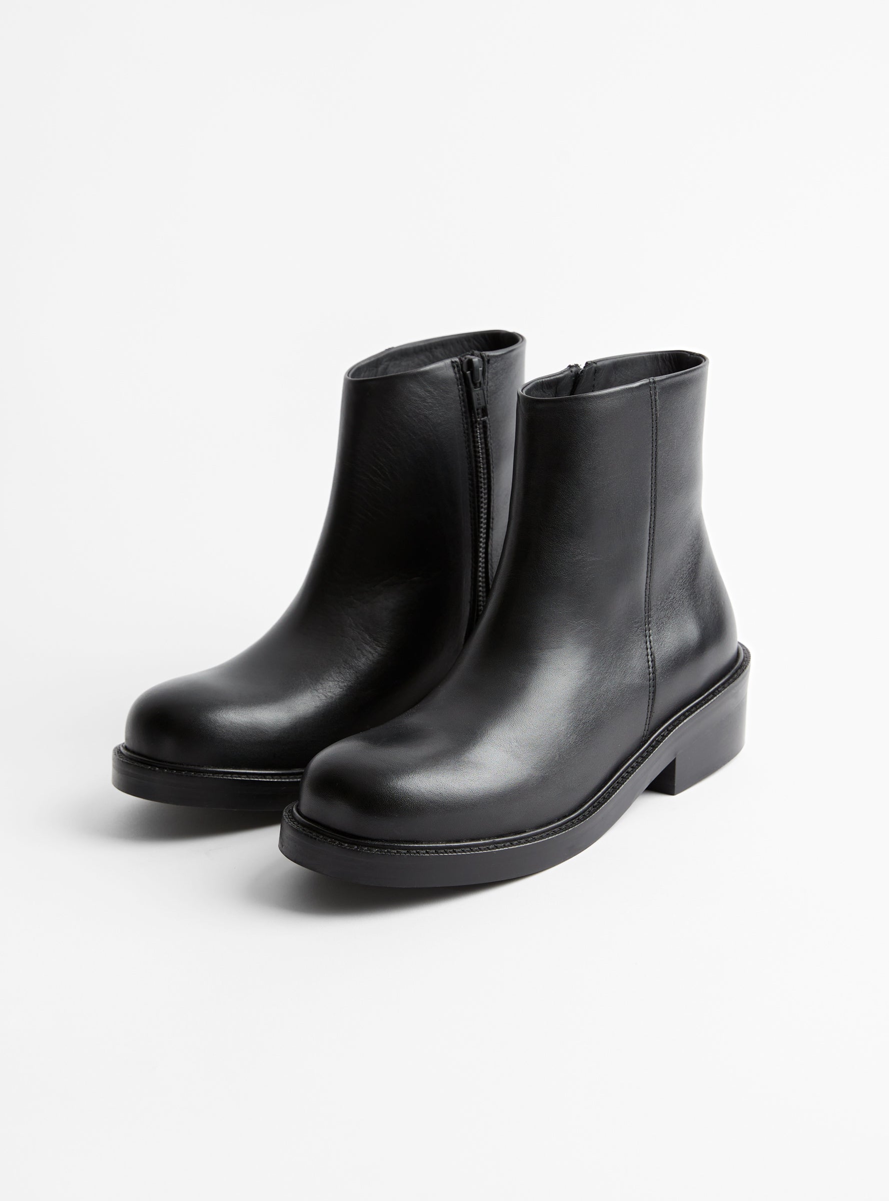 The Lerato Leather Boots from Séfr arrive in Black. These boots are crafted from smooth Italian calf leather and feature a chunky rounded toe, onsteam lining, and a Neolite outer sole. A side YKK zip allows easy entry and adds a clean finish.