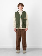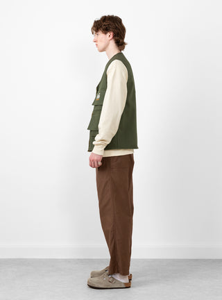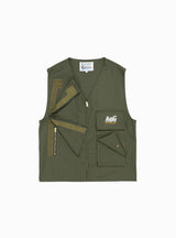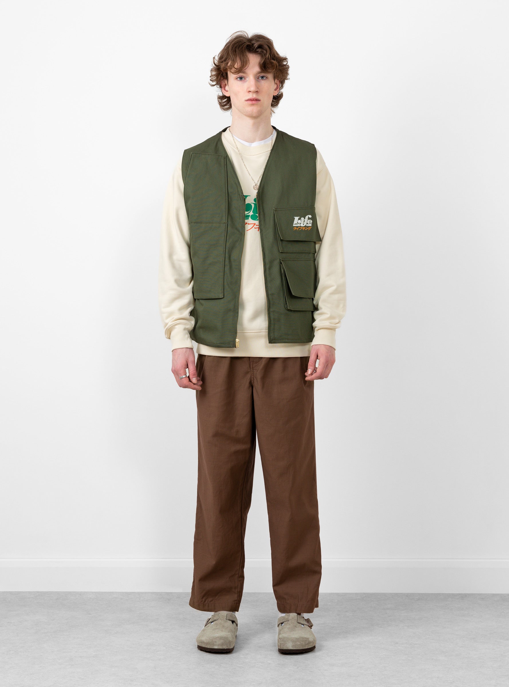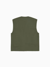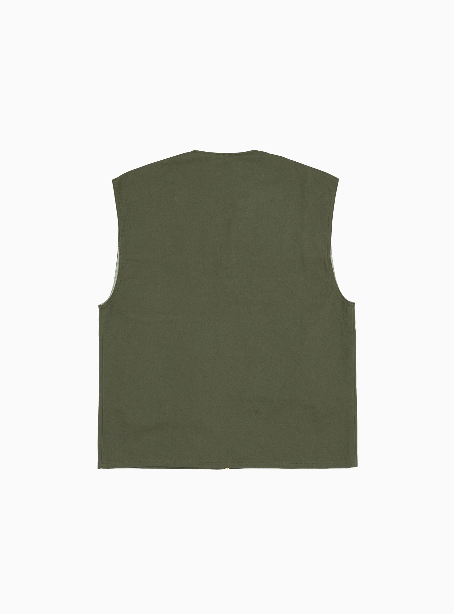 This olive Life vest from Garbstore's SS24 collection is made from sturdy cotton canvas sourced from Osaka, Japan. Cut to a relaxed, boxy silhouette, it features an assortment of zip and press-stud pockets, some of which are concealed behind Velcro panels. The season's motif is embroidered at the chest.
