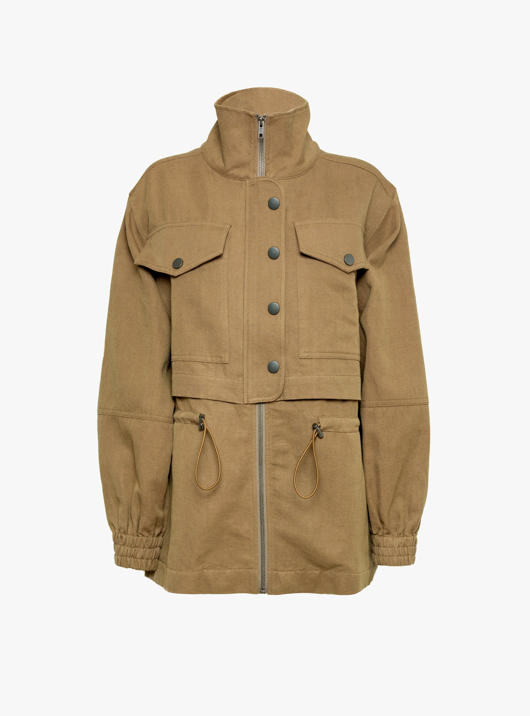 - Adjustable waist and hem drawstrings