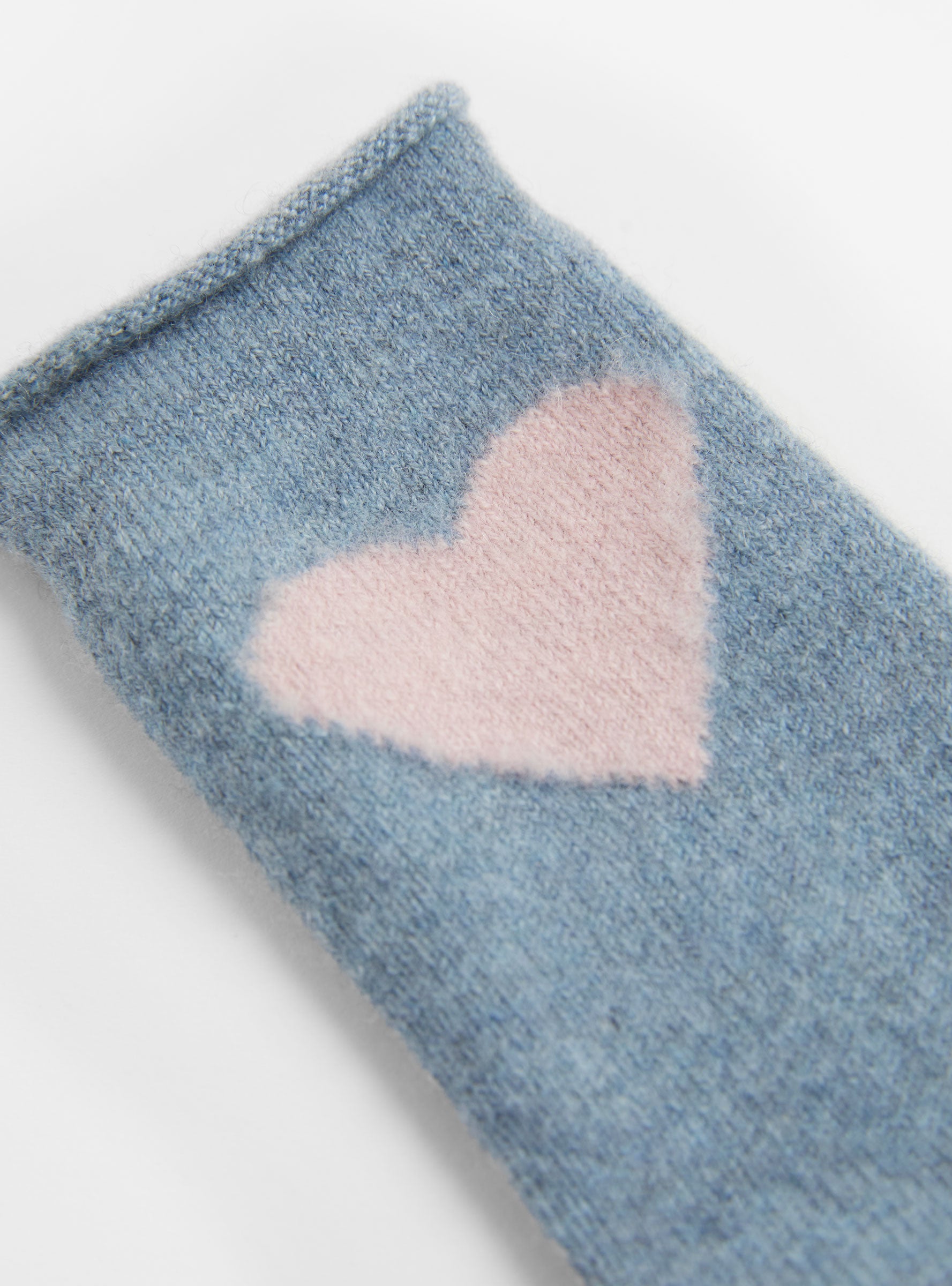 Featuring rolled edges and a charming love heart motif, the Love Cashmere Crew Socks in Denim by Hansel From Basel are made from recycled cashmere-blend yarn at the label's family-run factory, which operates entirely on renewable energy.
