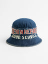 The 11.05oz Denim Laundry Hat from Kapital is made from cotton denim and features an embroidered brim, as well as prints all around.
