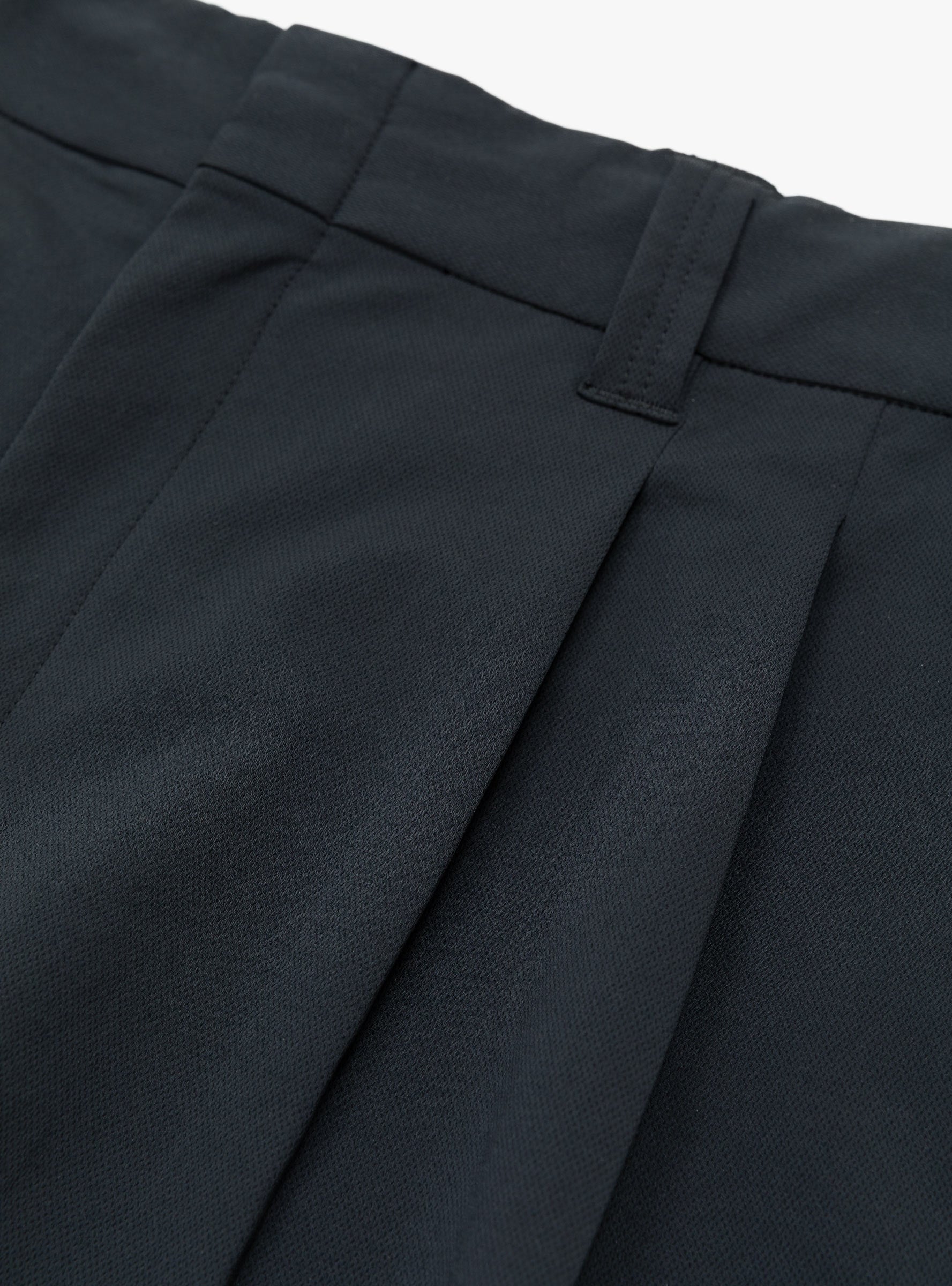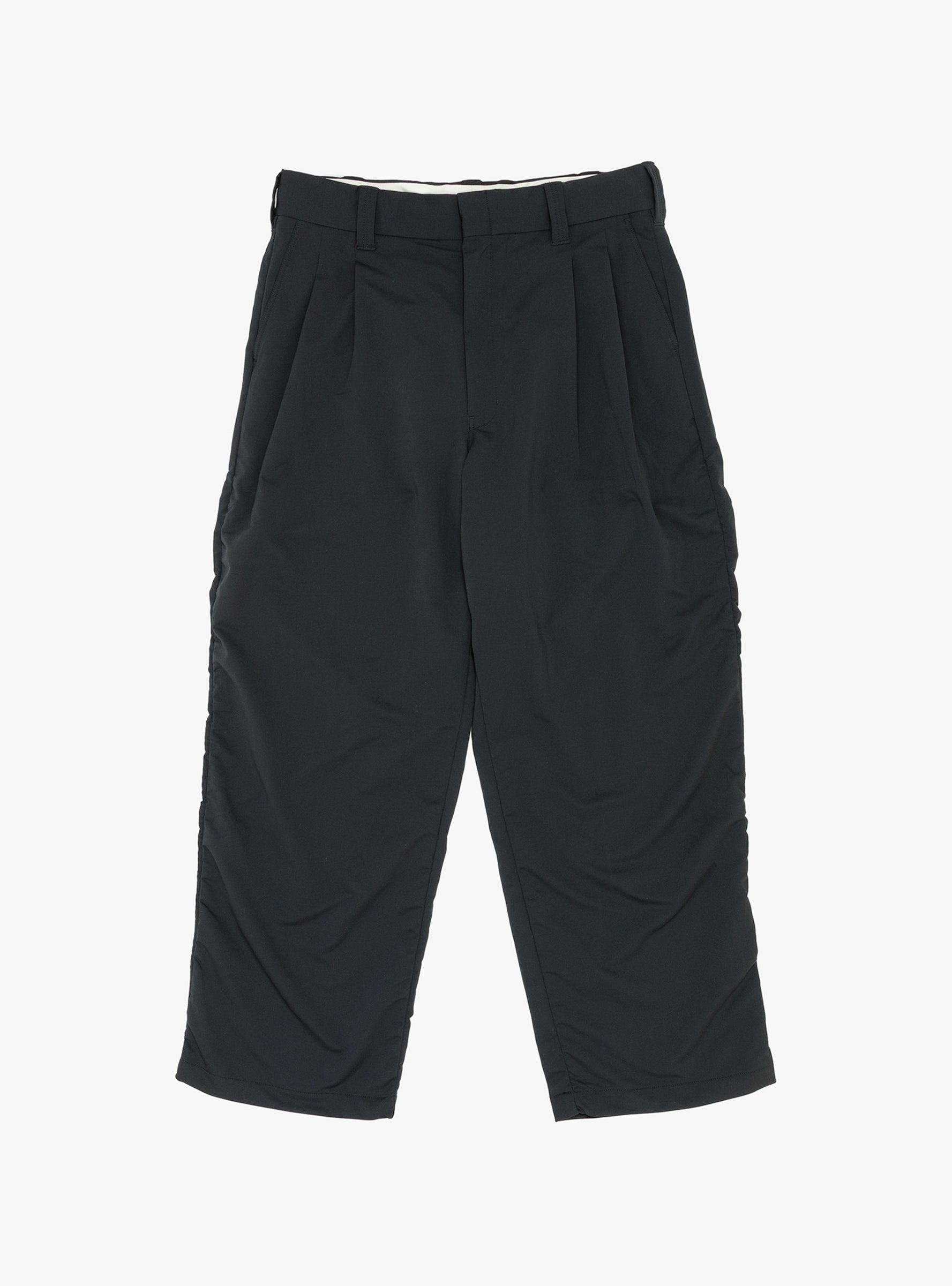 The ALPHADRY Club Pants from nanamica are wide straight-cut two-tuck trousers crafted from ALPHADRY® stretch cloth, offering moisture-wicking, quick-drying, and flexible performance. Designed for comfort and versatility, they feature an internal drawcord waistband, a front zip fly, and a gusseted inseam for enhanced mobility.