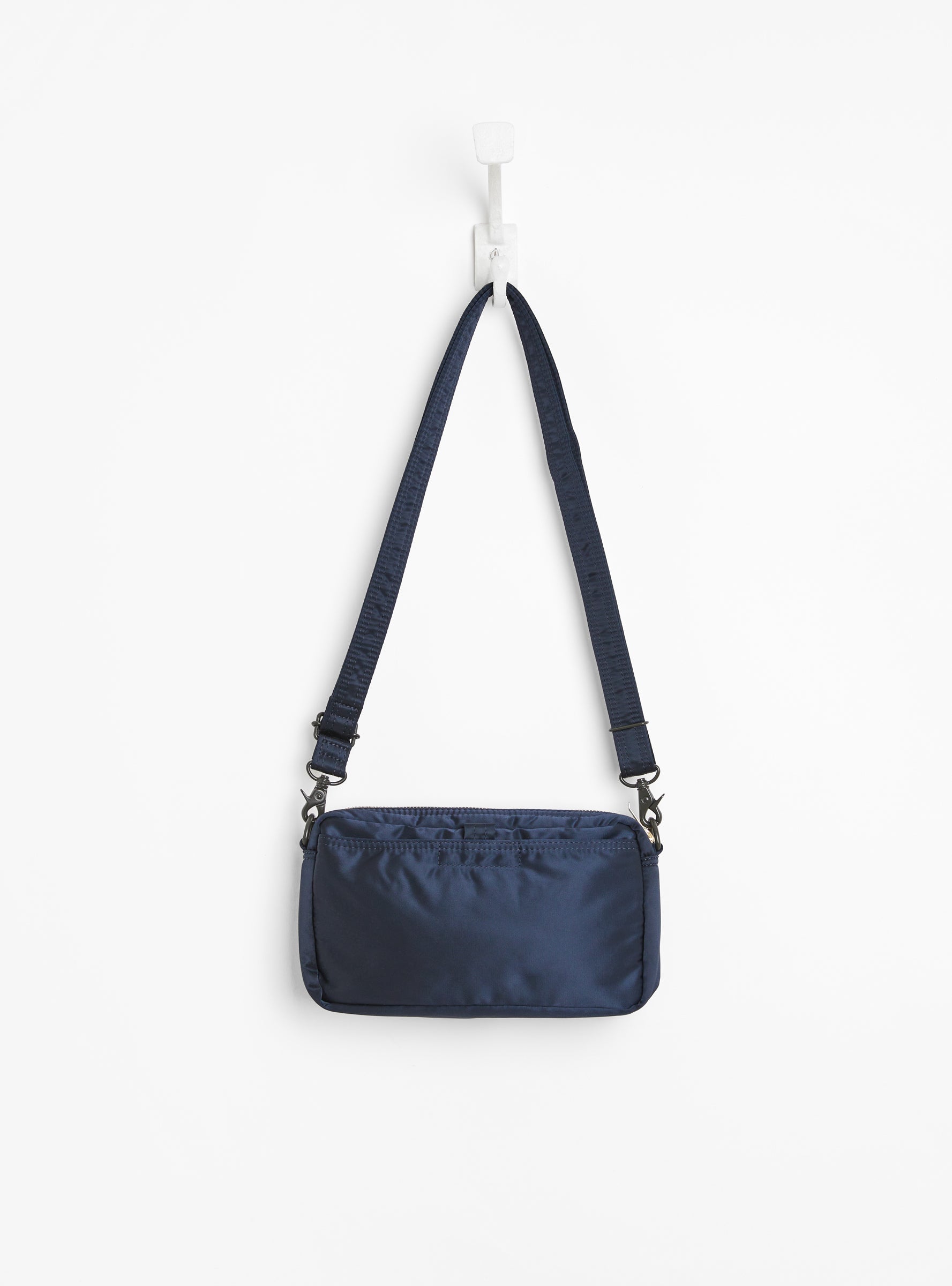The Bio-Nylon TANKER Sling Bag from Porter Yoshida & Co. arrives in Navy. The bag is made in Japan from a revolutionary plant-based nylon that is derived from corn and castor oil. Inspired by MA-1 flight jackets, the sling bag features a main zip compratment, which feature a vibrant orange lining as well as internal pockets for organisation. Two press stud front pockets as well as a rear velcro pocket offer further storage solutions and an adjustable strap finishes the piece.