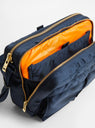 The TANKER Sling Bag from Porter Yoshida & Co. arrives in a Navy. The bag is made in Japan from a revolutionary plant-based nylon that is derived from corn and castor oil. Inspired by MA-1 flight jackets, the sling bag features two zip pockets, which feature a vibrant orange lining as well as internal pockets for organisation. Two press stud front pockets as well as a rear velcro pocket offer further storage solutions and an adjustable strap finishes the piece.