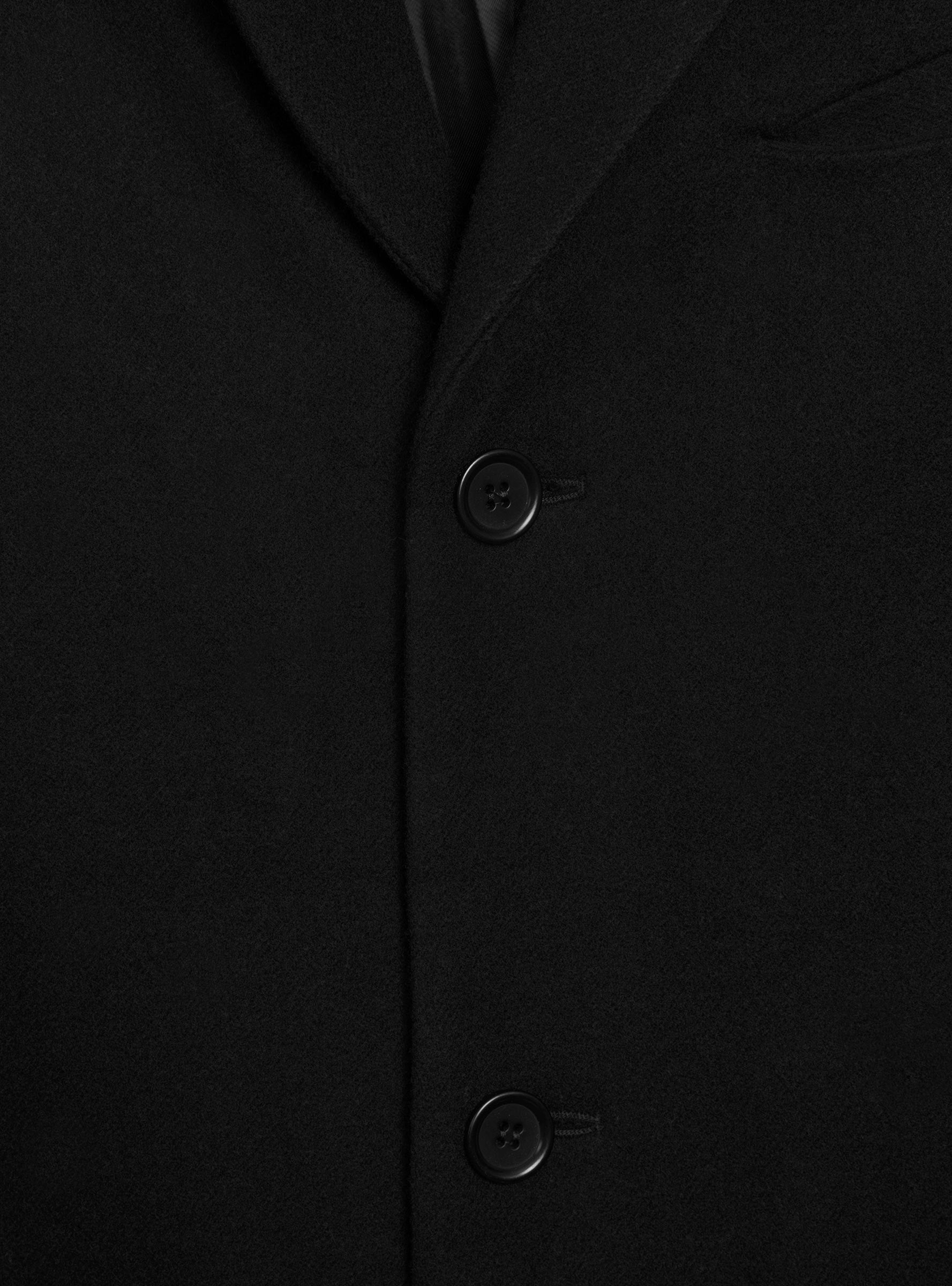 The Estate Coat from YMC arrives in Dark Charcoal. Made in Portugal from flanella wool, this single-breasted overcoat has a relaxed oversized fit with dropped shoulders. The coat features a lapel collar, cateye-shaped chest pocket, front pockets with hidden flaps, and horn button fastening.