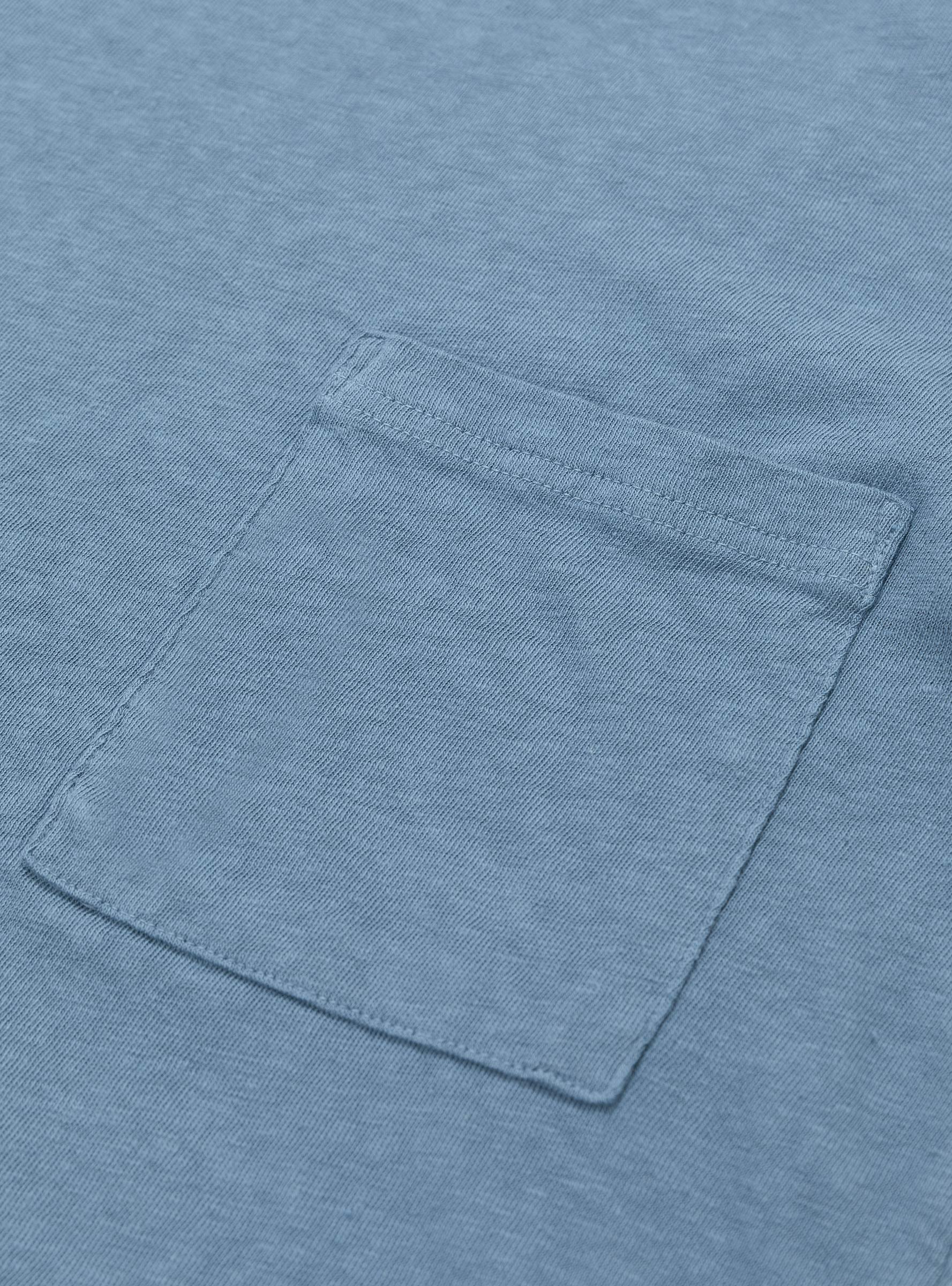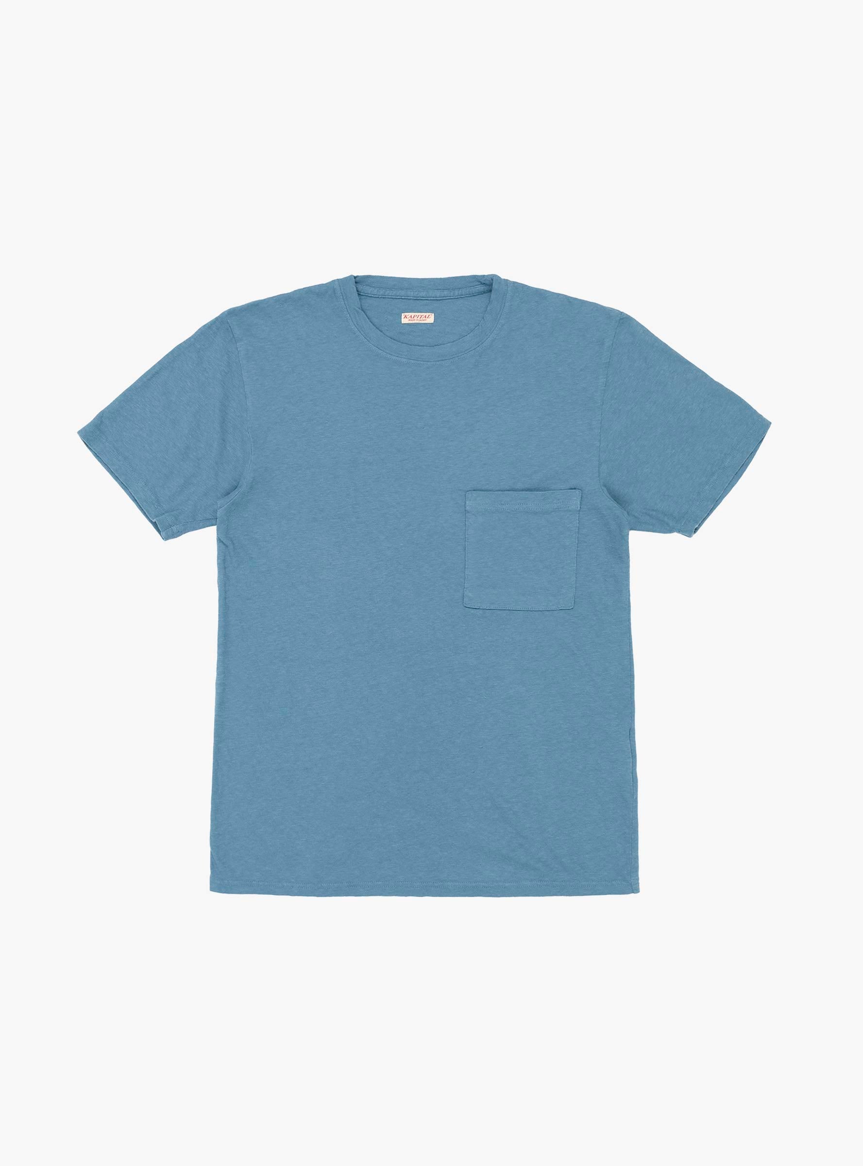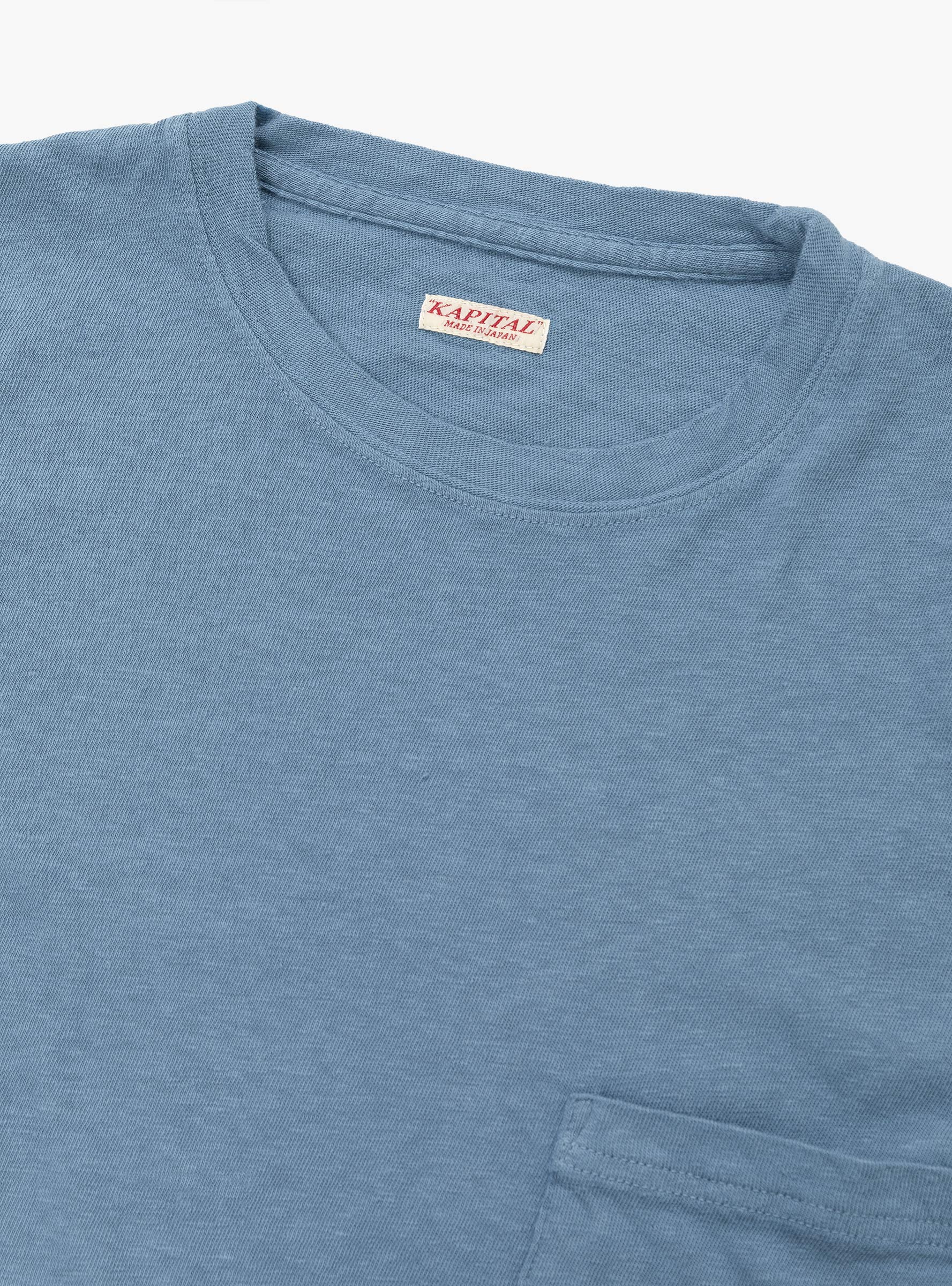 The Gauze Jersey Pocket Tee from Kapital arrives in Light Blue. Featuring a crew neck, short sleeves, and a chest pocket, it's made in Japan from soft cotton gauze jersey.