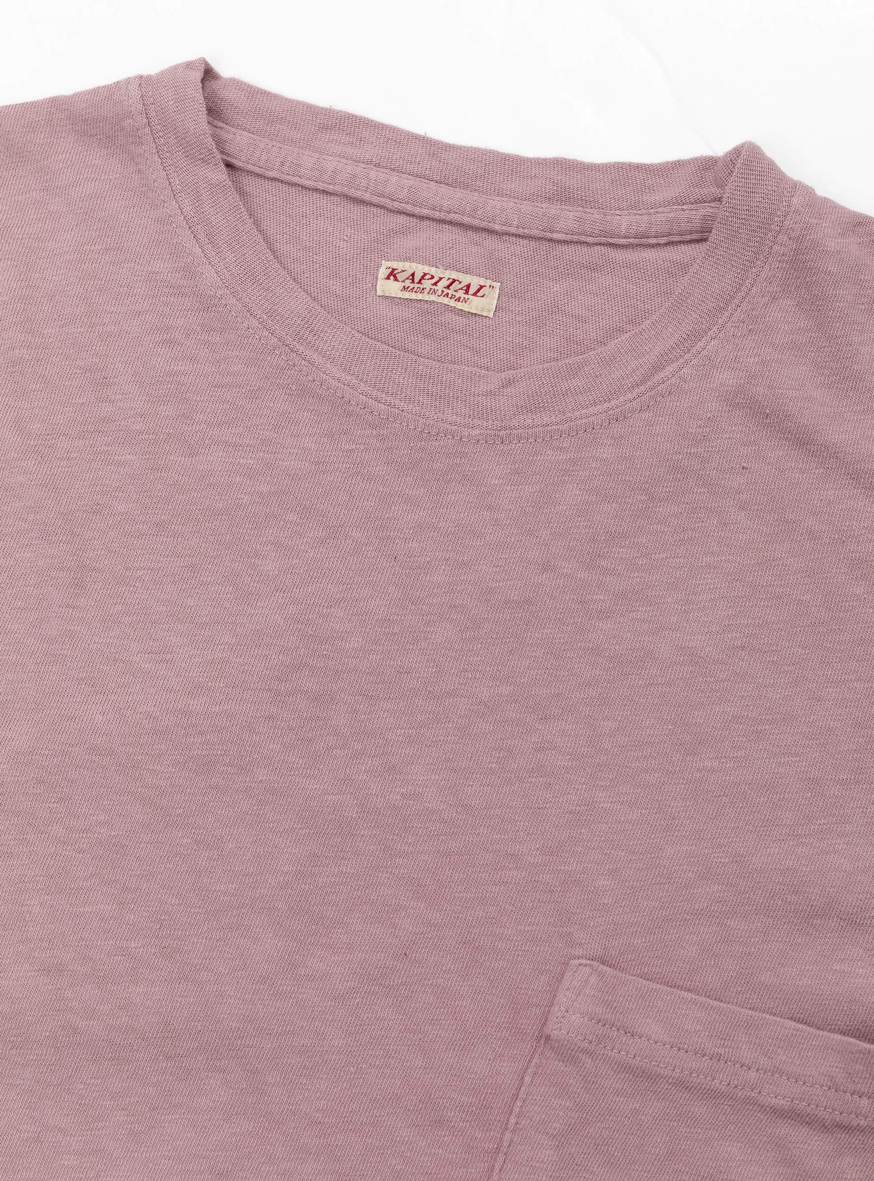 The Gauze Jersey Pocket Tee from Kapital arrives in Pink. Featuring a crew neck, short sleeves, and a chest pocket, it's made in Japan from soft cotton gauze jersey.