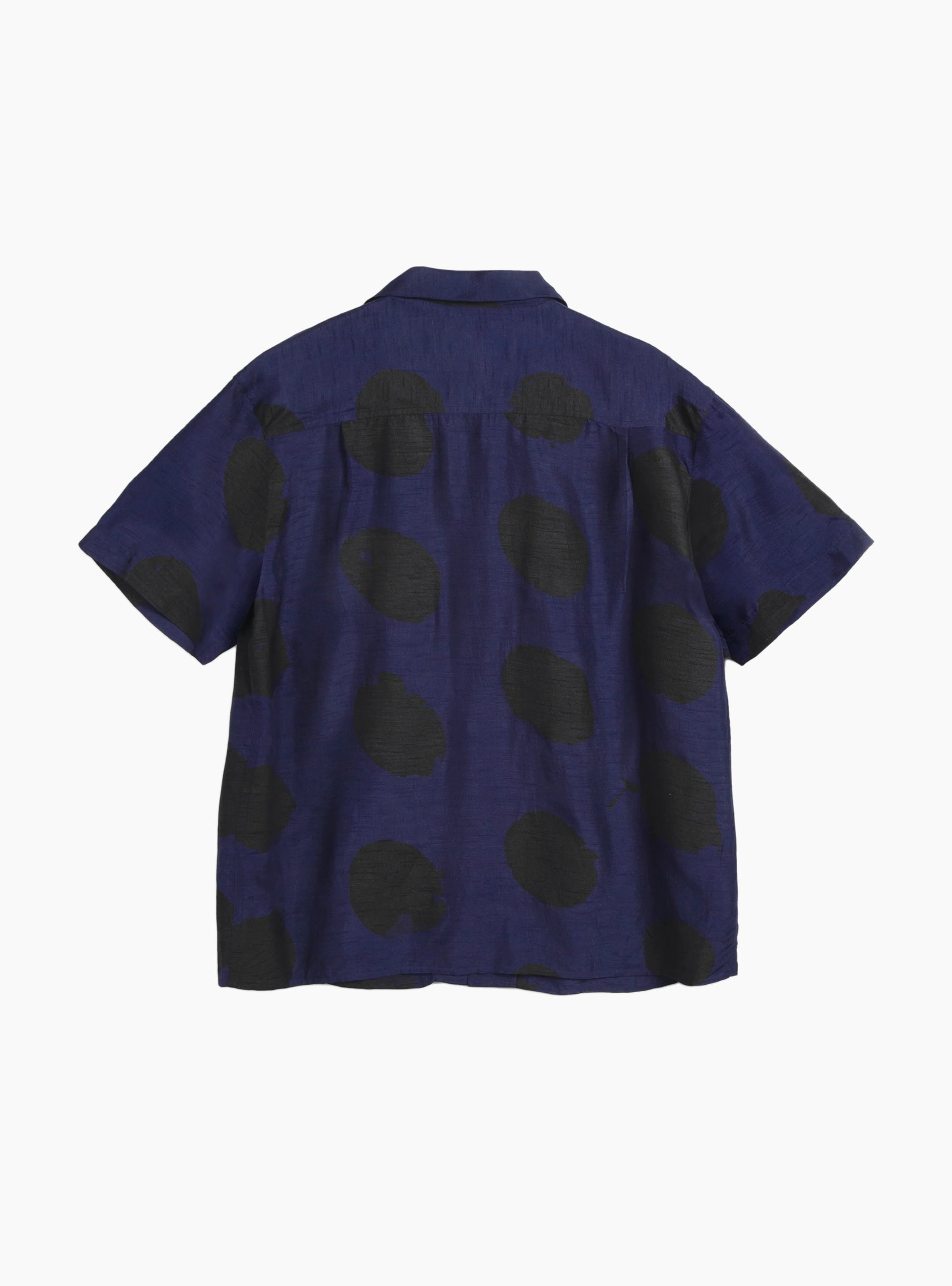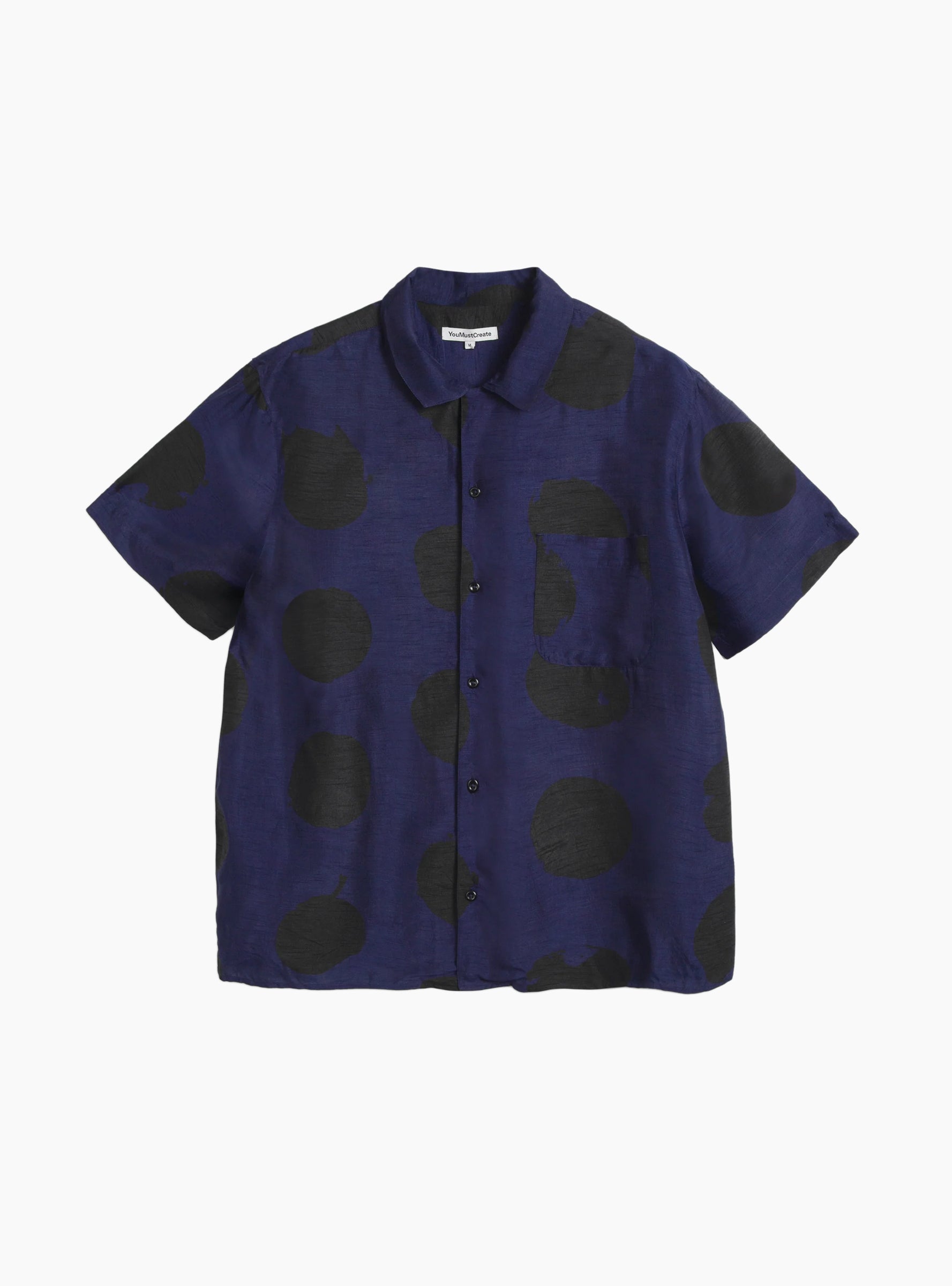 The Malick Shirt Polkadot from YMC comes in Blue and Black. Cut to a relaxed fit, this short-sleeve shirt features a Cuban-style collar, a chest patch pocket, and a corozo button front fastening. The hand-painted polka dot print adds a playful element to the lightweight fabric.