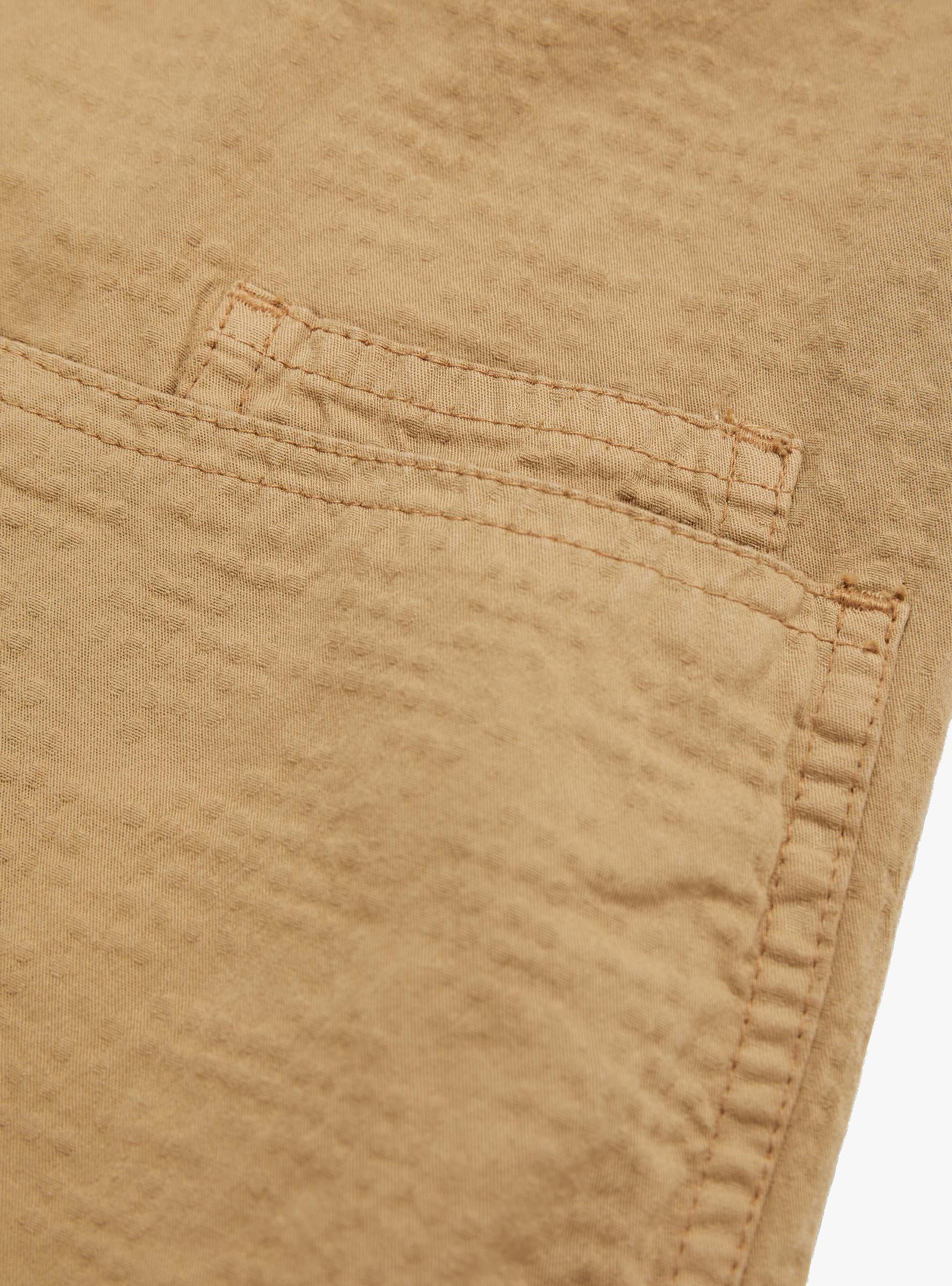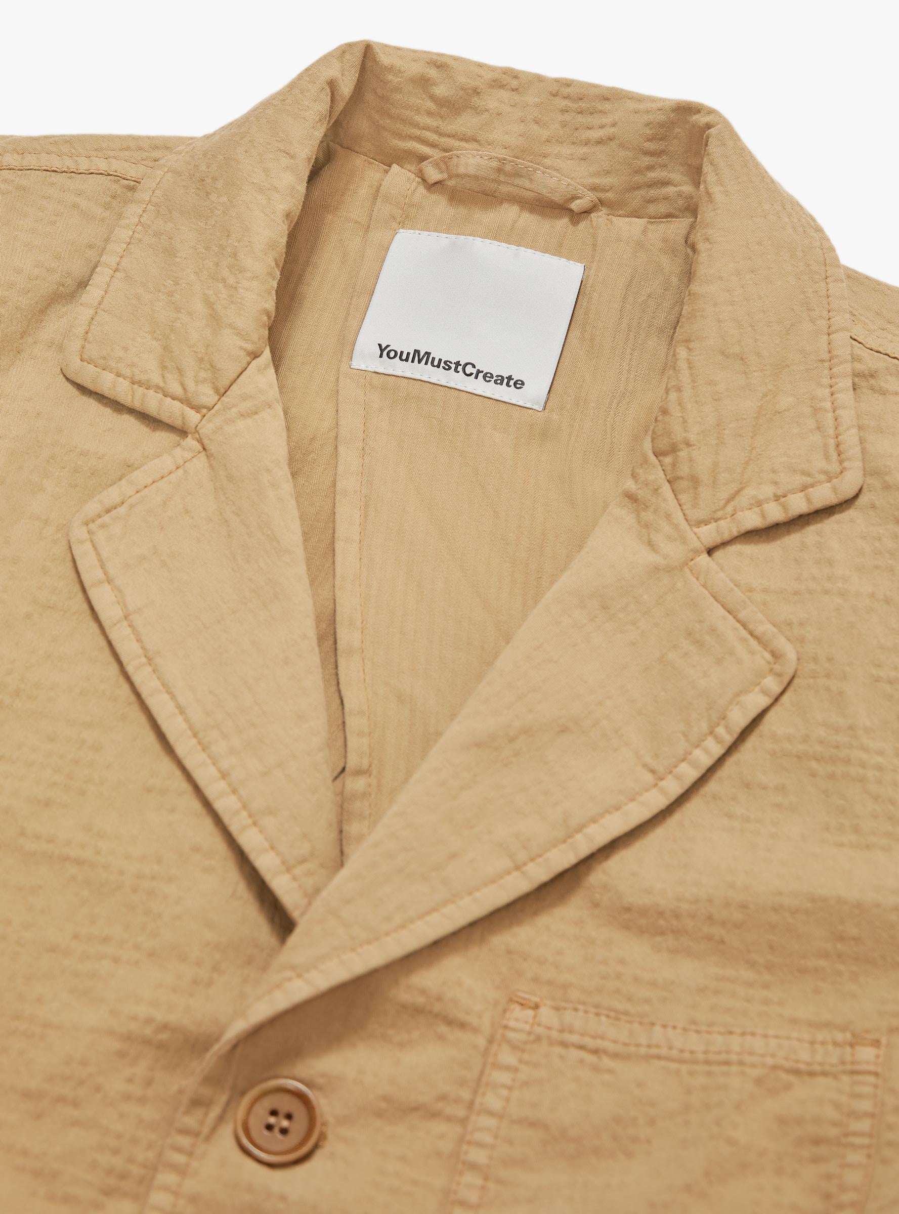 The Scuttlers Jacket by YMC is a relaxed-fit design made from Italian jacquard weave cotton. It features a notch lapel, single-breasted button placket, and chest and lower front patch pockets. The jacket is half-lined and garment dyed.
