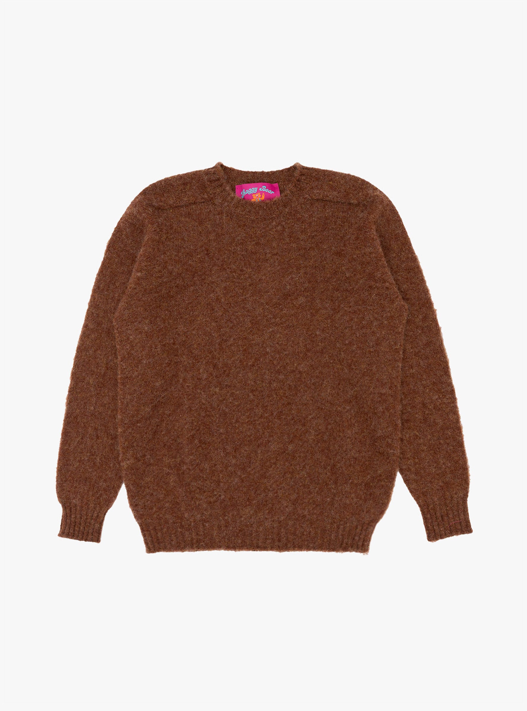 The Shaggy Bear Jumper from Howlin' arrives in a Hazelwood colourway. Knitted in Scotland from double brushed wool, which gives the shirt a soft and raised texture, the crewneck falls to a classic fit and is finished with a vibrant 'Shaggy Bear' neck label.
