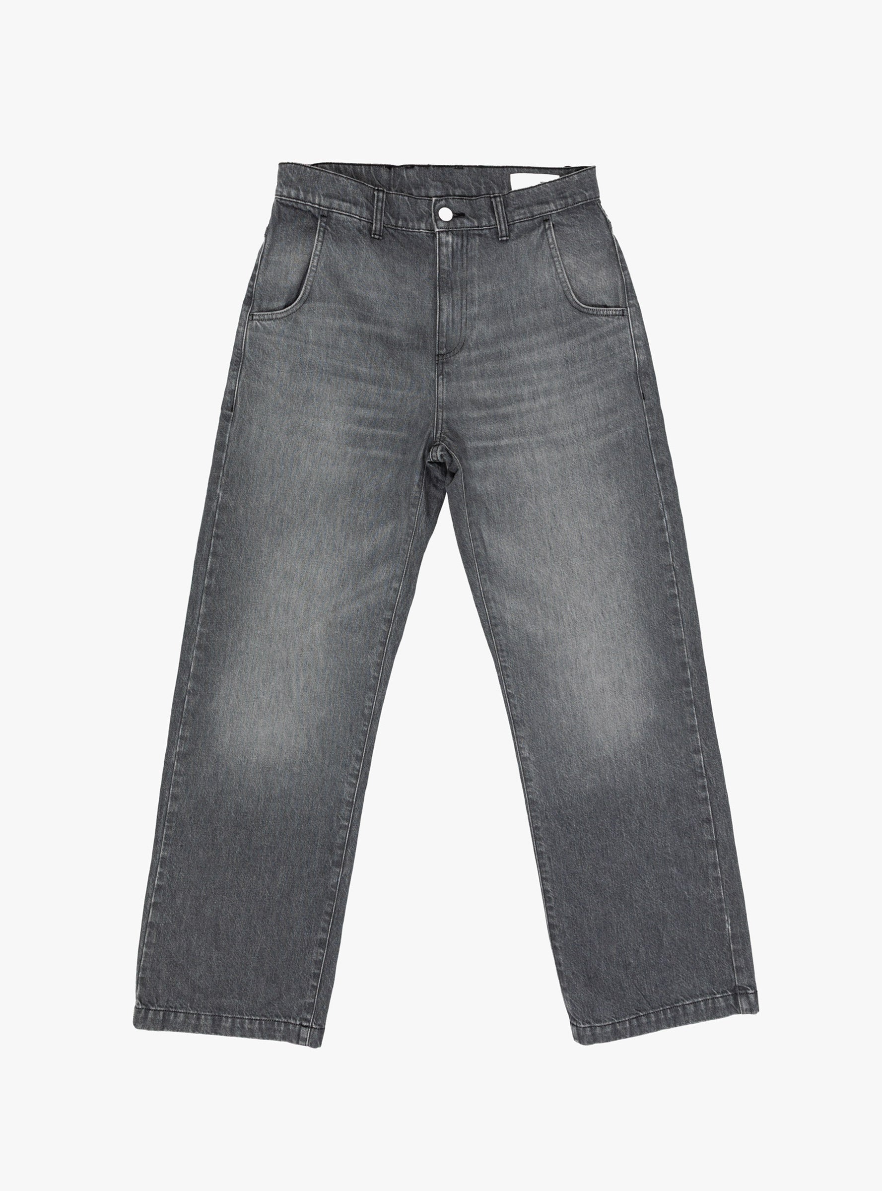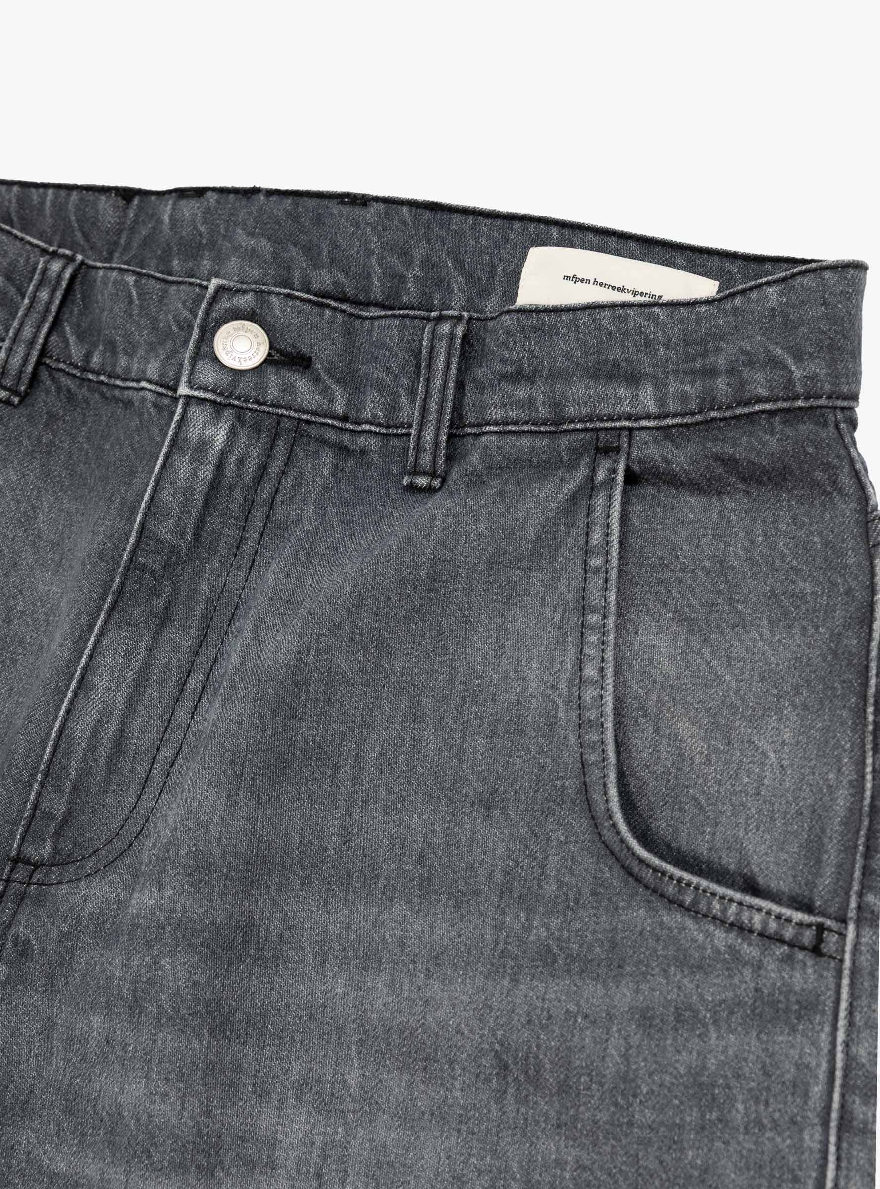 The Straight Cut Jeans in Washed Slate from mfpen have a relaxed straight fit with a mid-rise. They feature side pockets, rear patch pockets, a metal button closure, and a YKK zip fly. Cut from washed organic cotton denim twill with colour developed through a cold dye process, the jeans are garment-washed and preshrunk for comfort and durability.