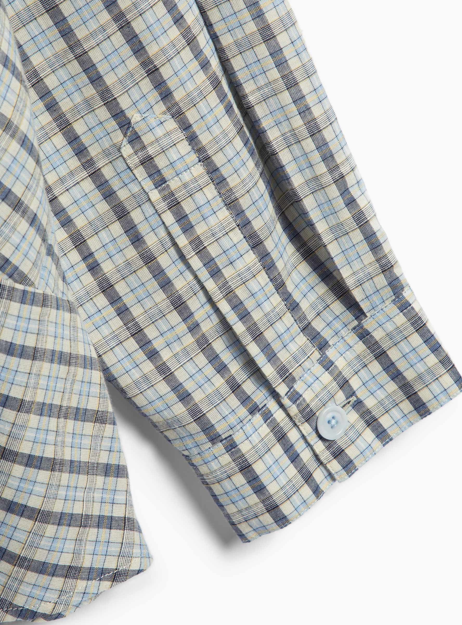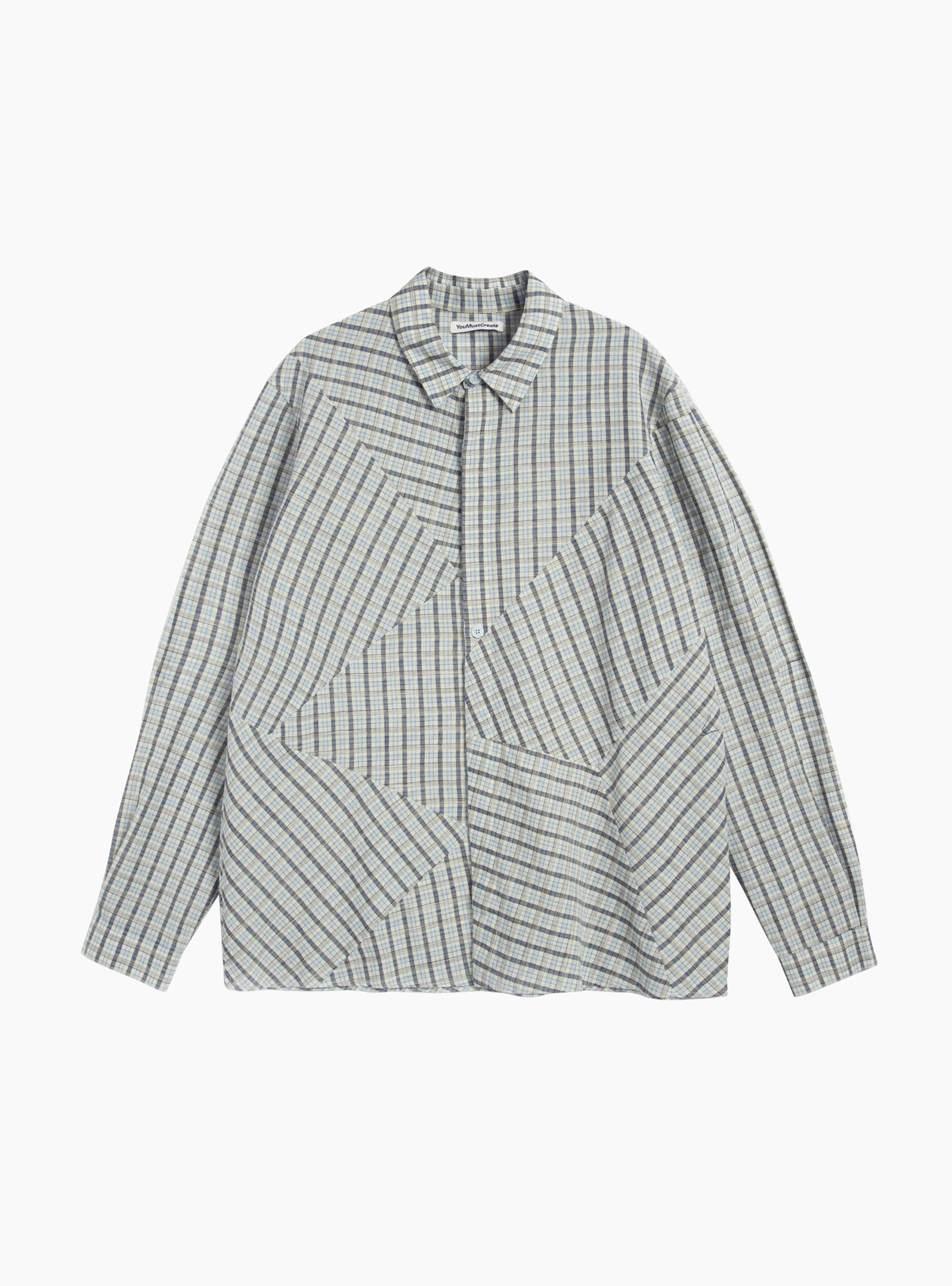 The Substance Shirt Cutting Table Check from YMC is made in Portugal from crisp cotton. Cut to a relaxed fit, this long-sleeve shirt features asymmetric body panels, a fly front placket, and a corozo button front fastening. The multi-tone check design adds subtle visual texture to the lightweight fabric.