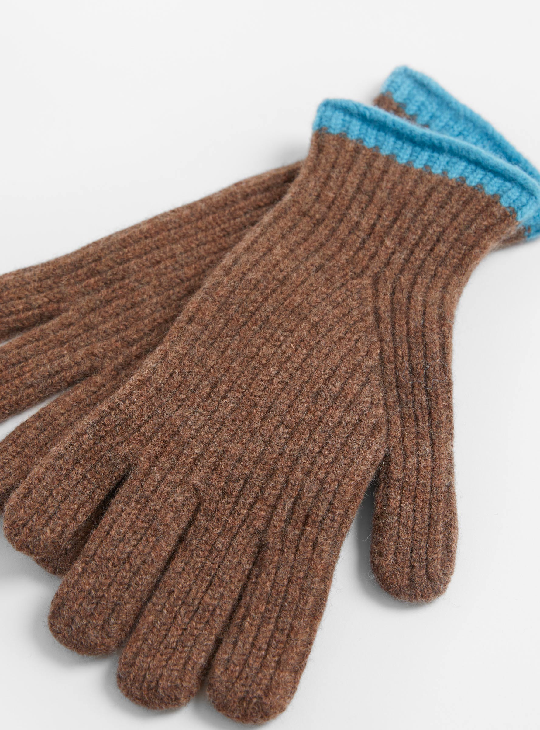The Wind It Up Ribbed Gloves in Brown from Howlin’ are knitted in Scotland from pure wool. Designed with ribbed cuffs in a contrasting blue trim, they are finished in brown for a simple cold-weather essential.